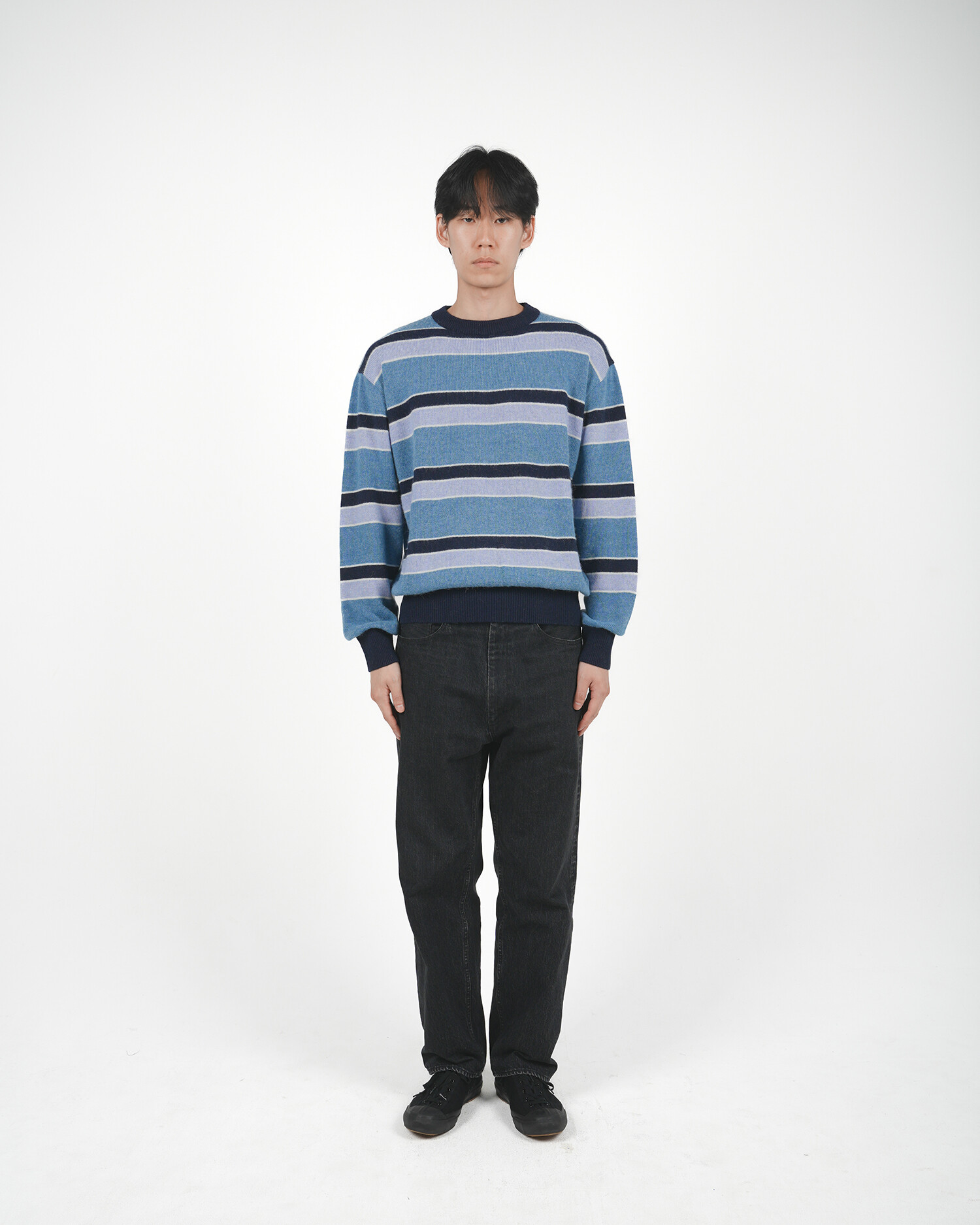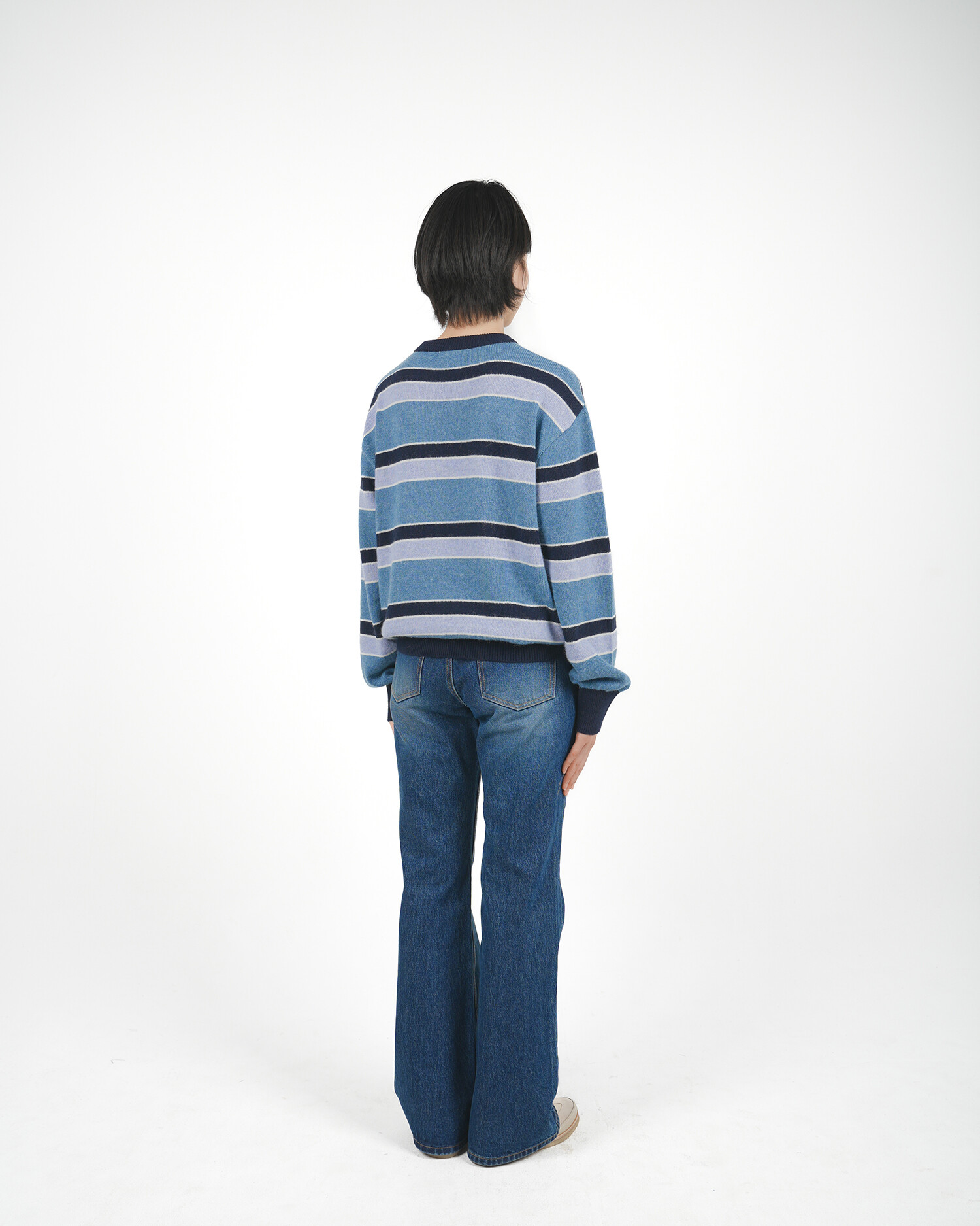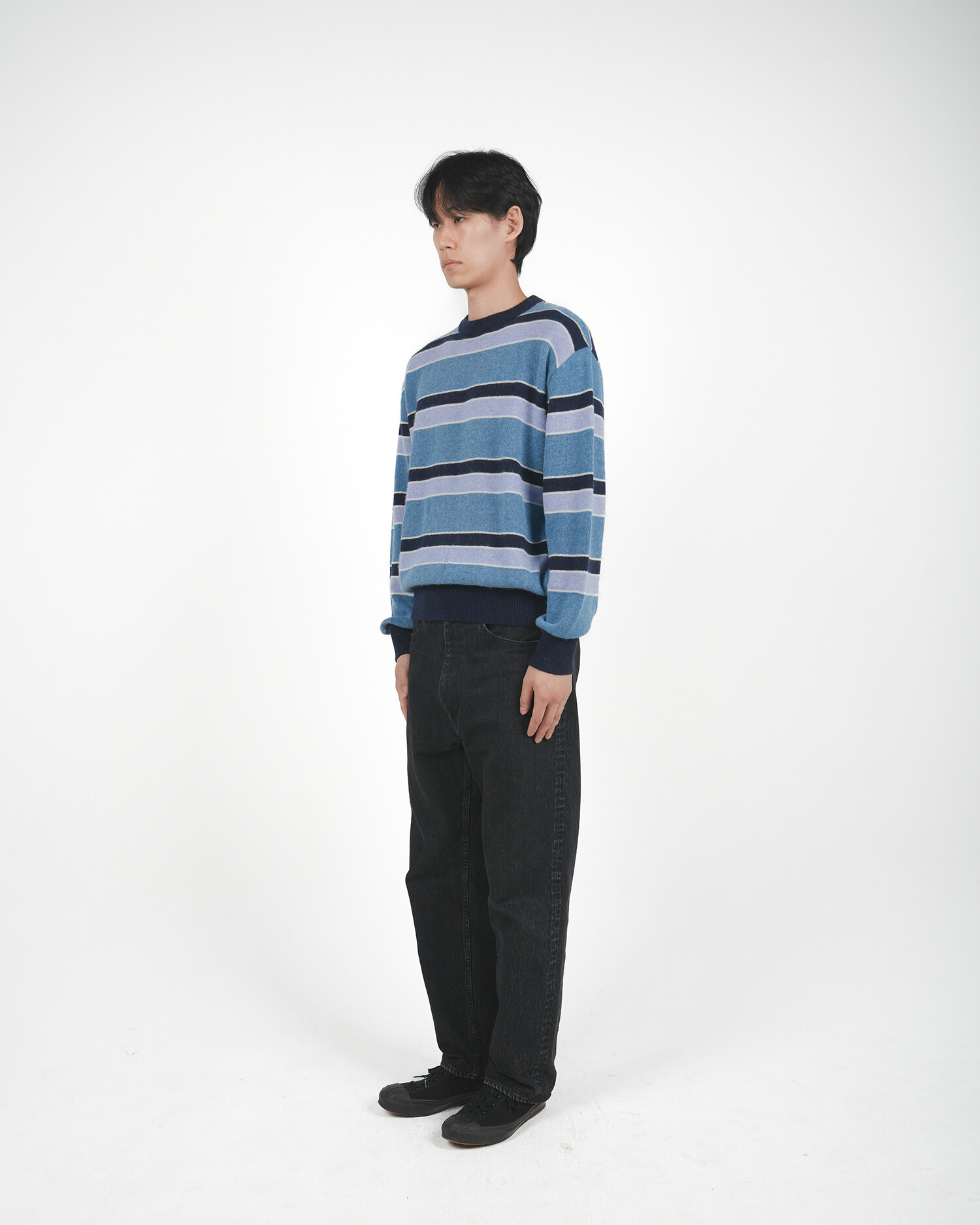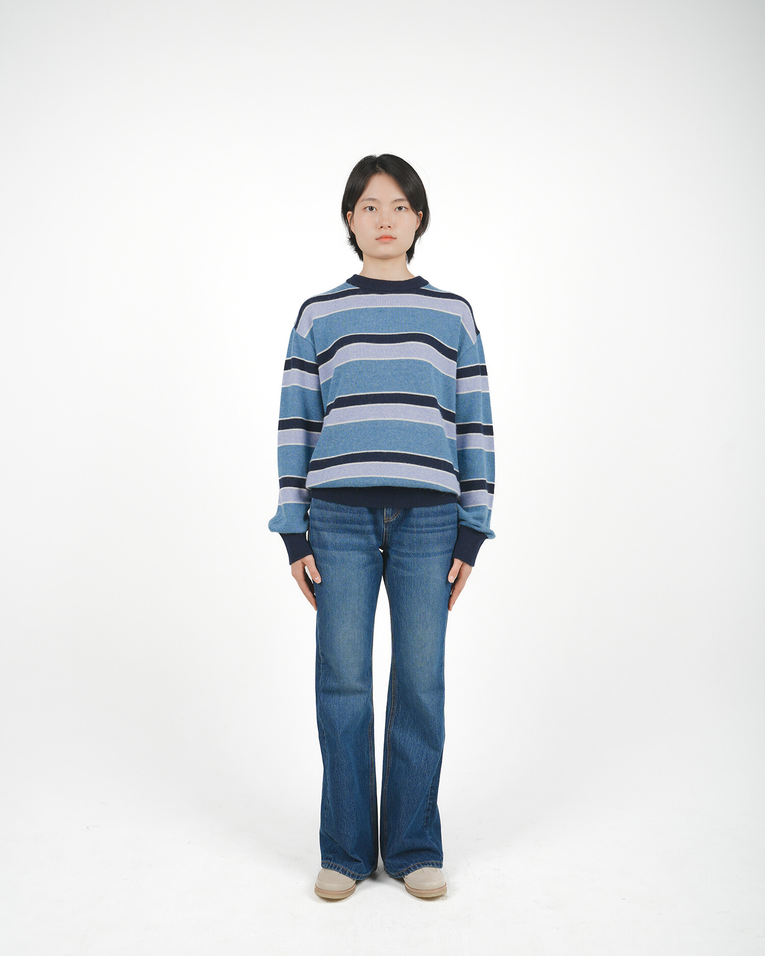 ALPACA MULTI STRIPE SWEATER (Ocean melange combie)