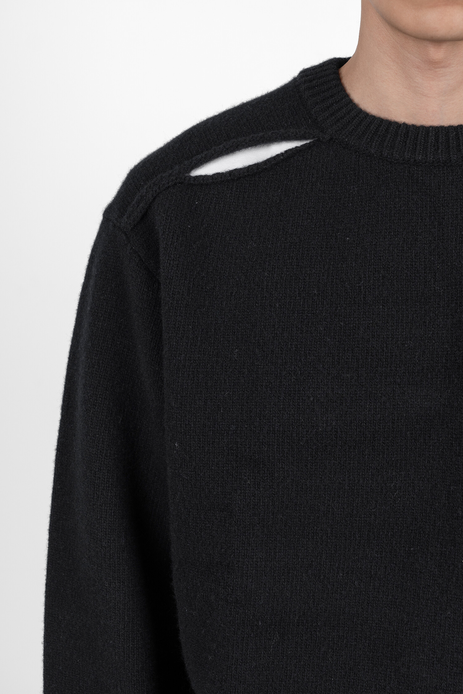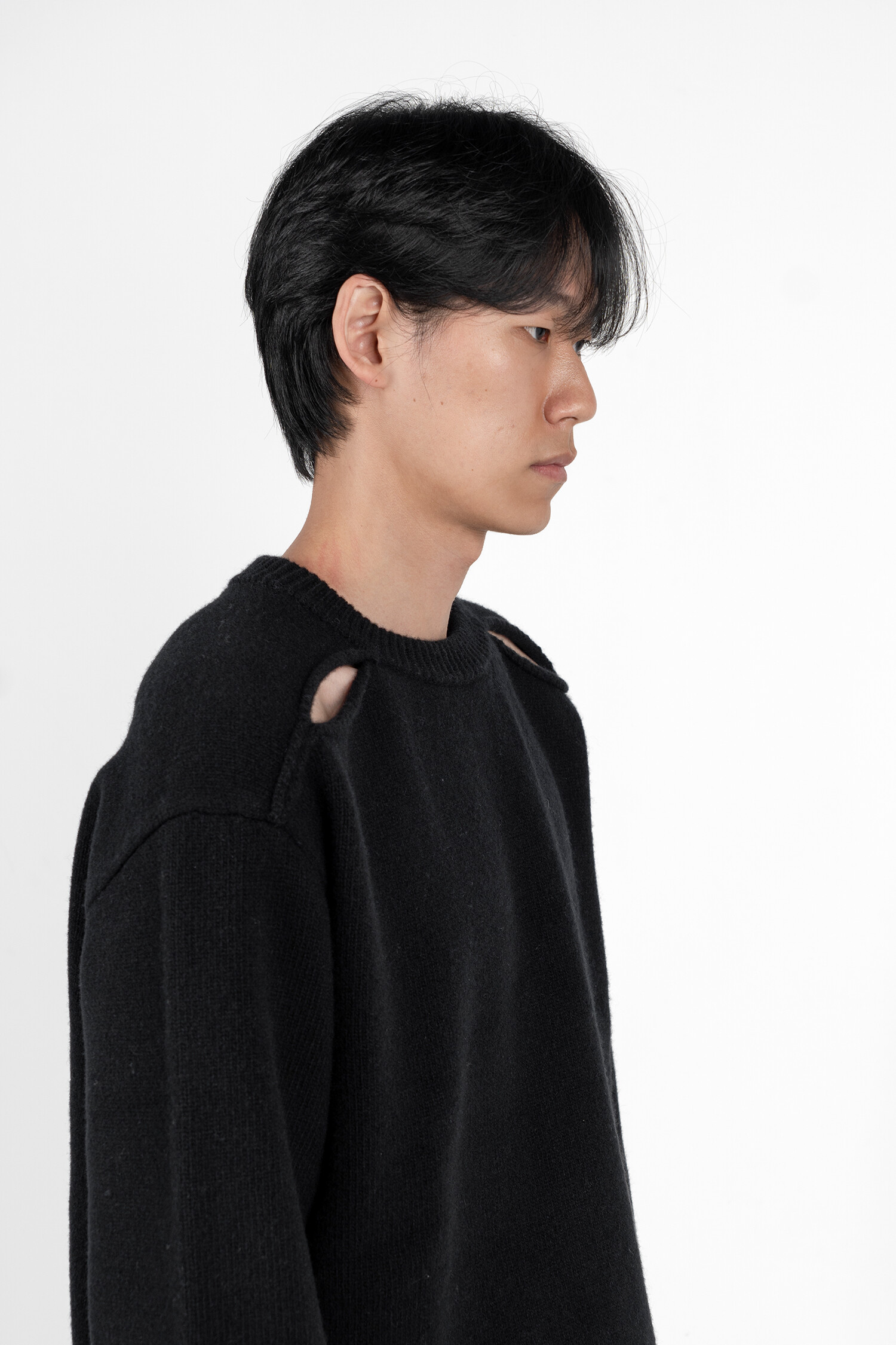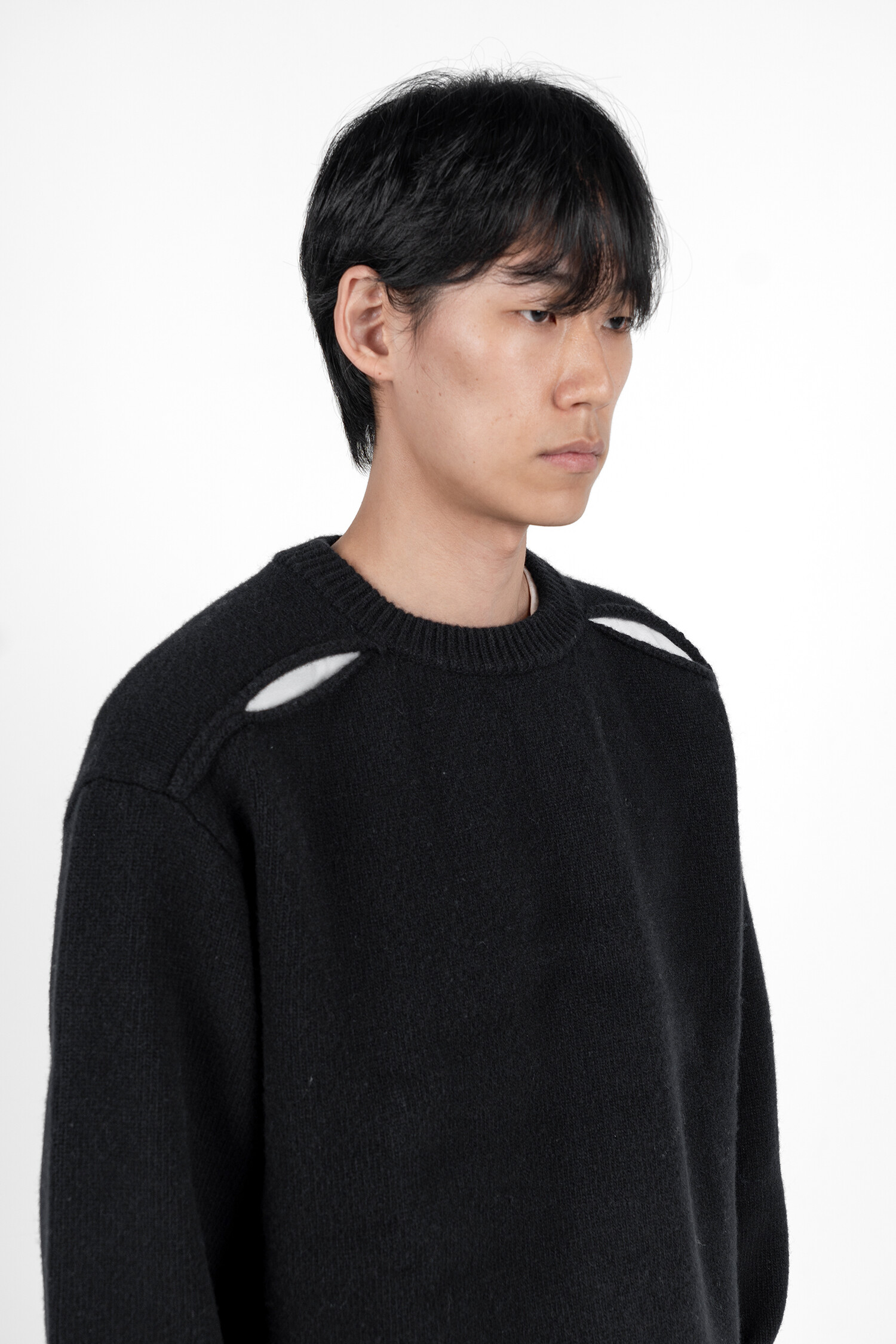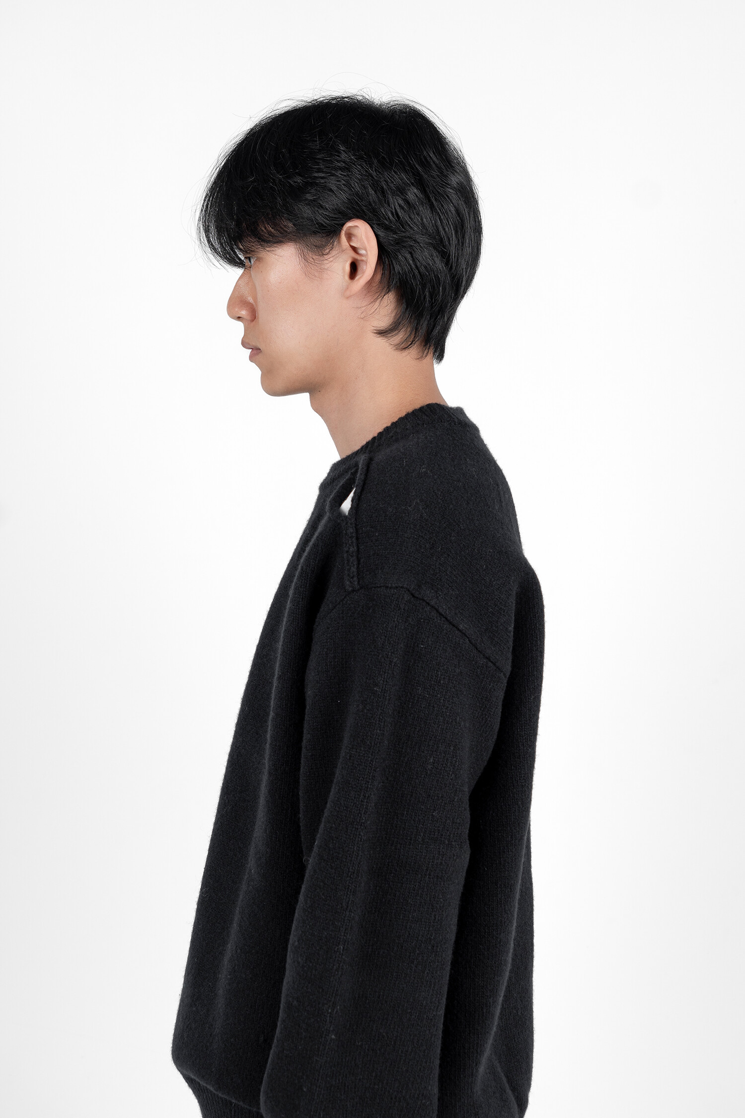 SHOULDER SLIT CREWNECK SWEATER (Black)