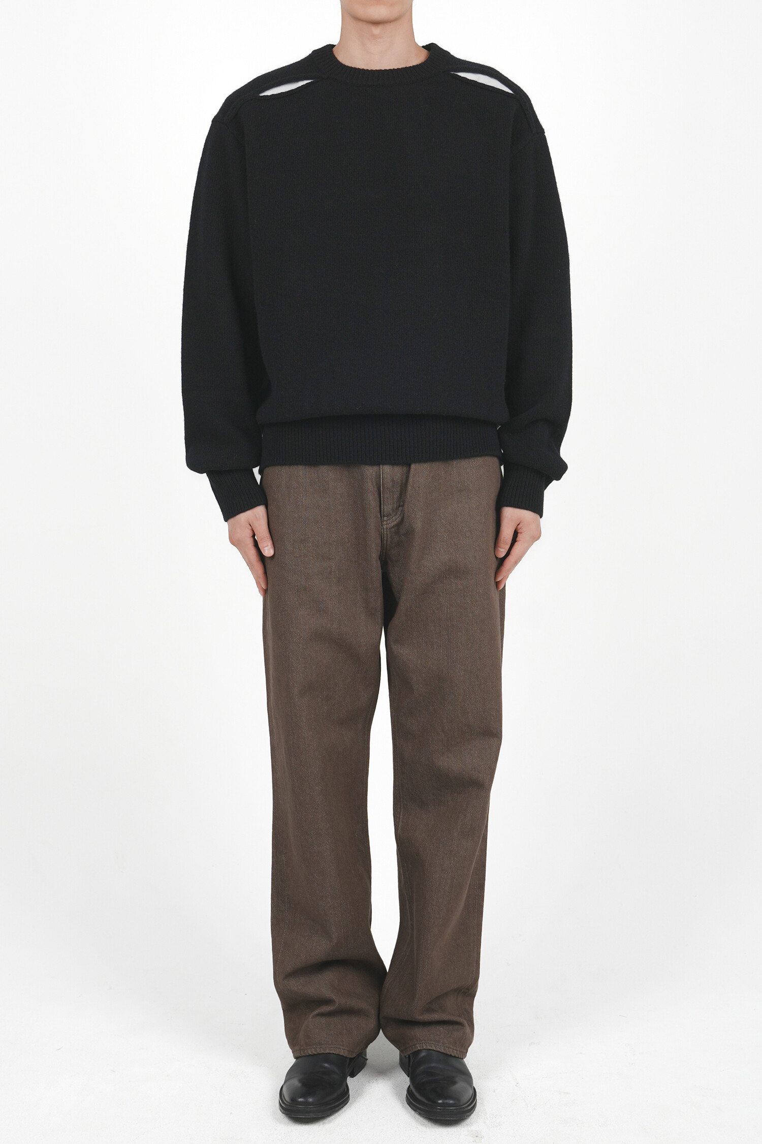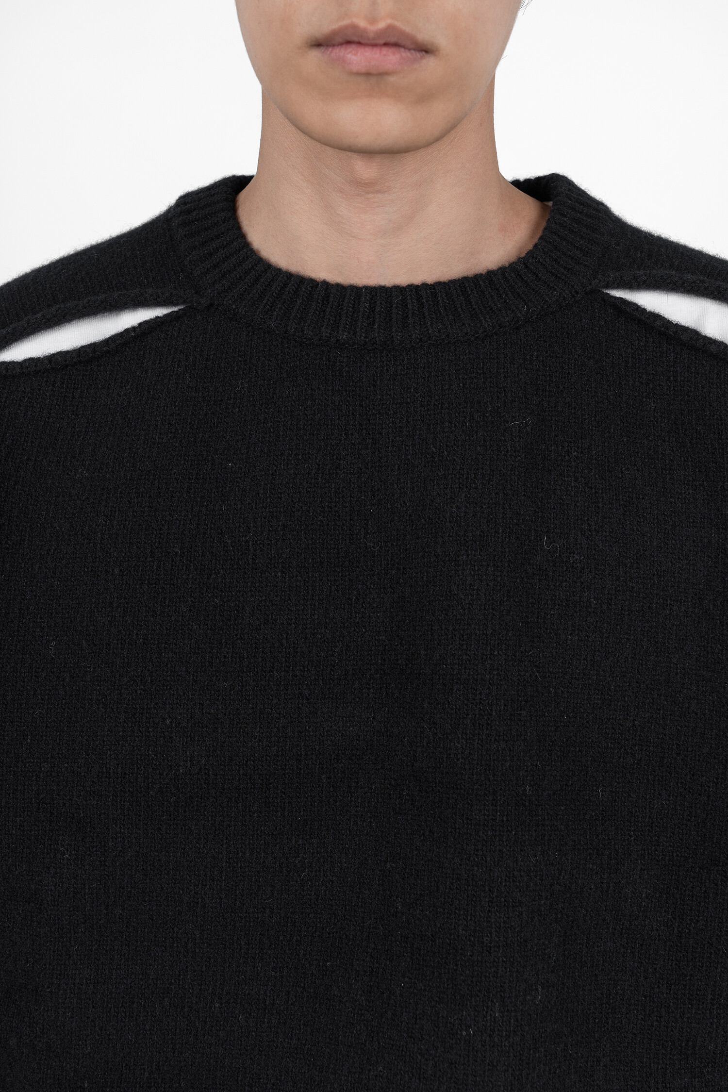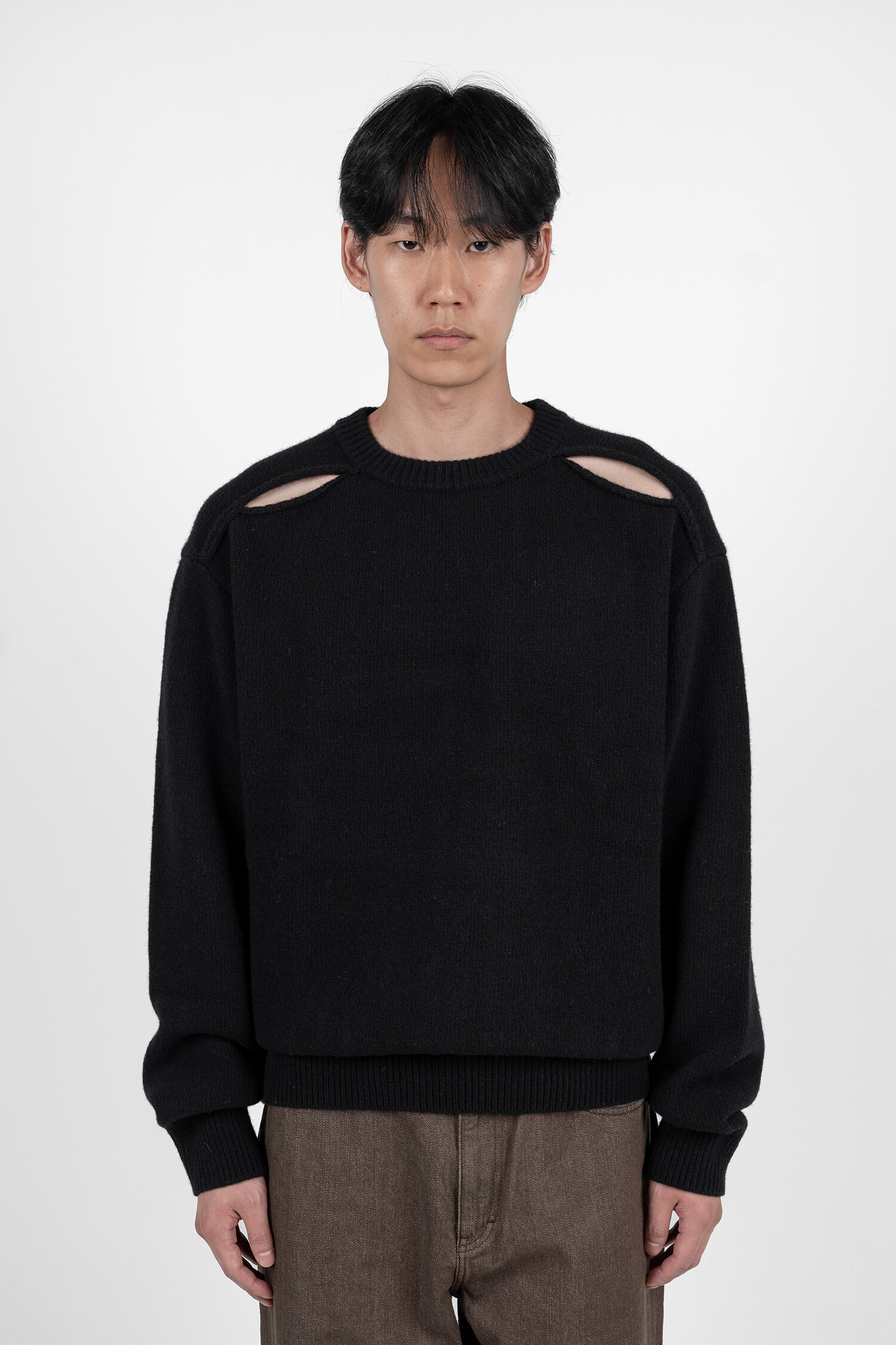 SHOULDER SLIT CREWNECK SWEATER (Black)
