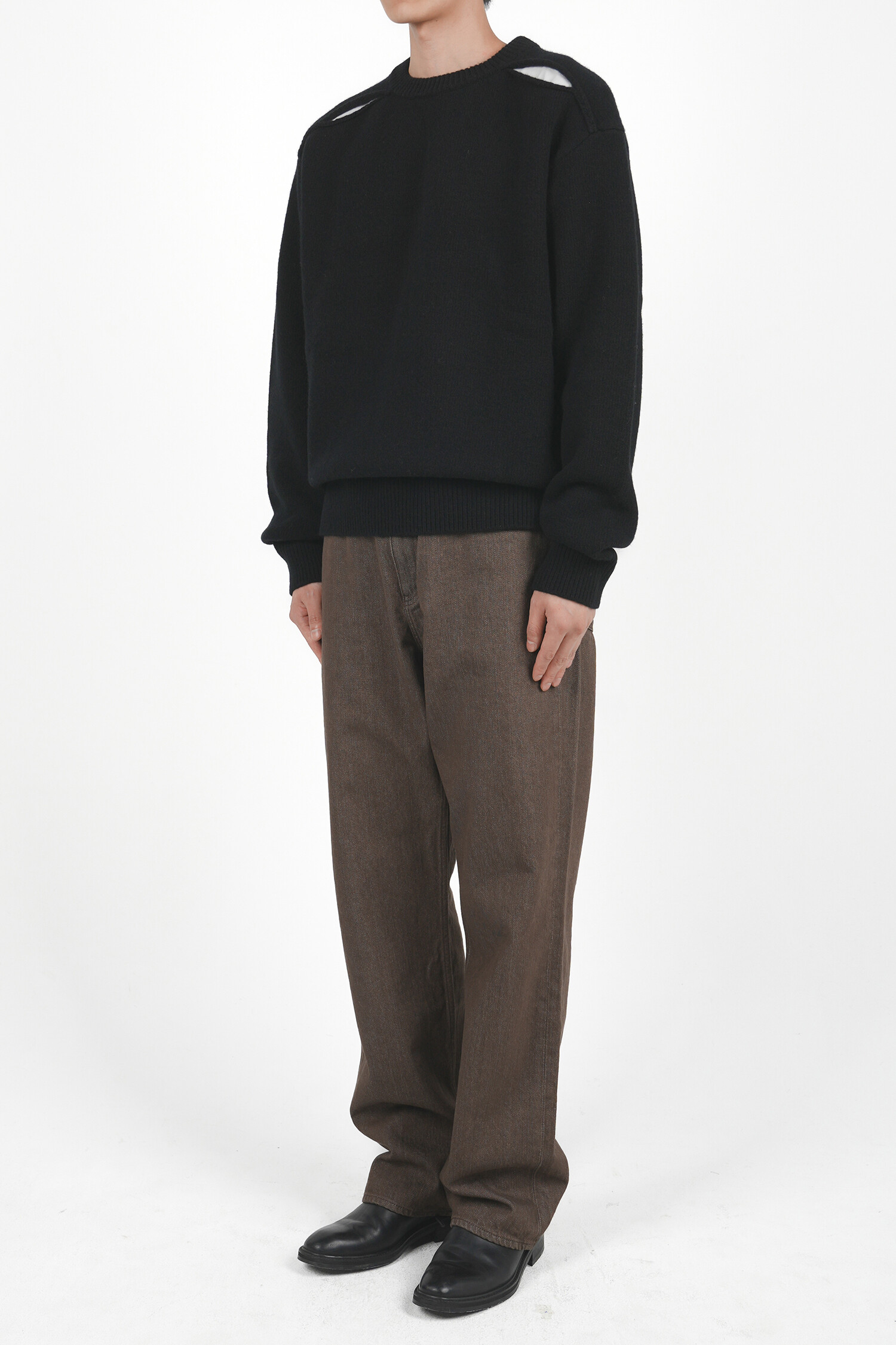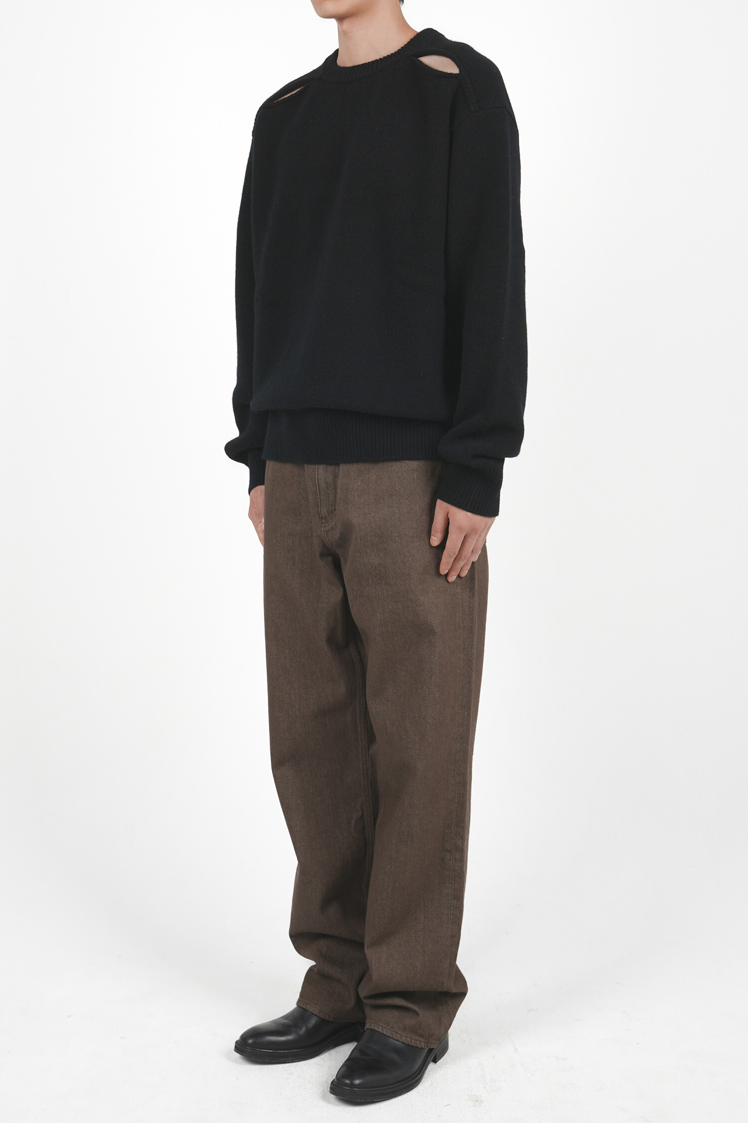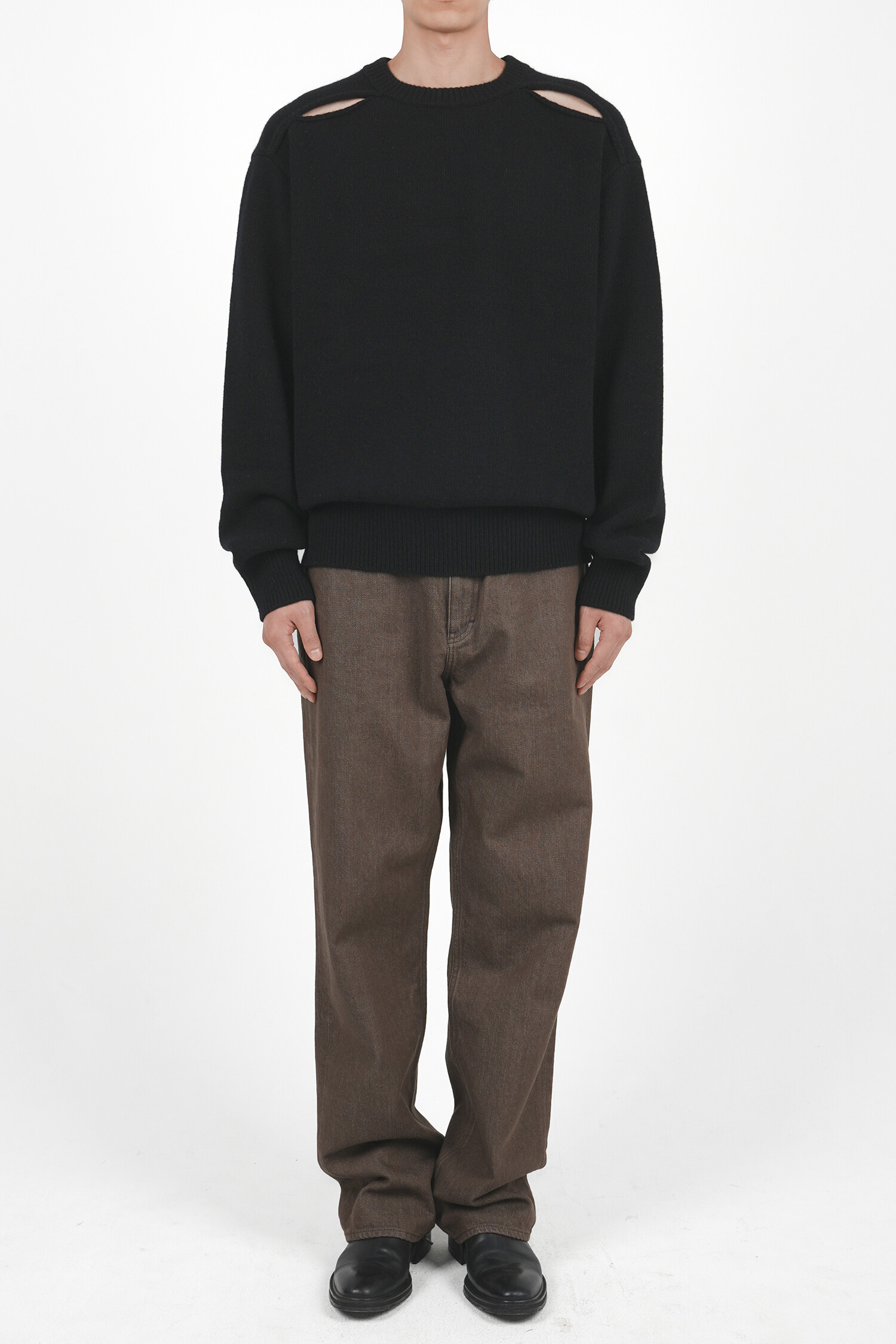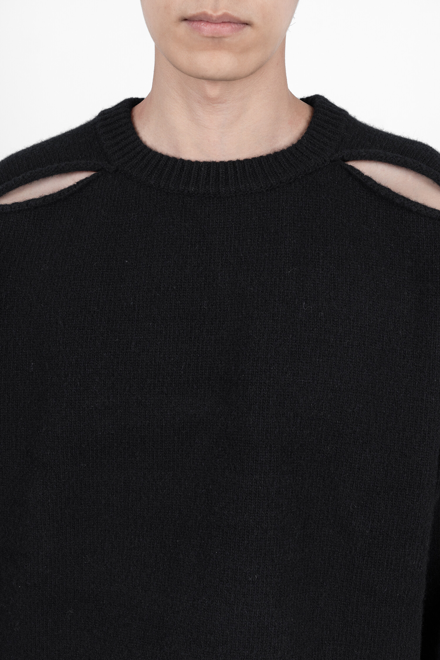 SHOULDER SLIT CREWNECK SWEATER (Black)