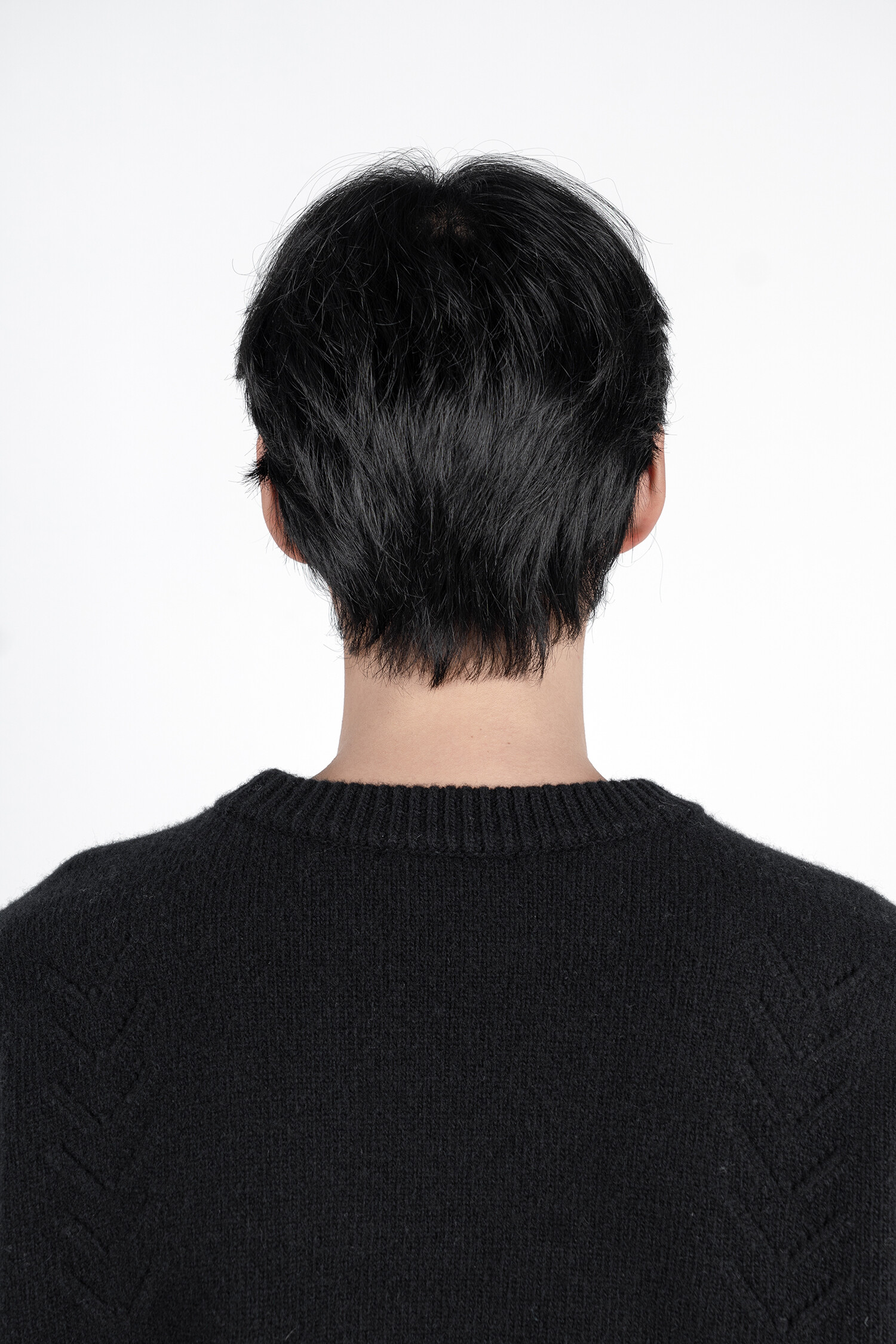 ▶ 전면부 어깨 라인 바로 앞의 절개와 뒷 면의 스카시 편직이 특징인 제품입니다. 원사는 고품질의 호주산 슈퍼 파인 메리노 울 100%를 사용하여 시각적인 부분이나 터치가 모두 고급스럽습니다. 5게이지 4합 싱글 조직의 제품으로 굉장히 탄탄하고 두께감이 느껴지는 제품입니다. 전,후면의 디자인적 포인트가 있지만 차분하고 어두운 컬러와 어울어져 부담스럽지 않고 전체적인 분위기의 밸런스를 잡아줍니다. 특히 해당 제품은 이너 없이 단품으로 입거나 이너를 레이어드하여 착용했을 때의 느낌이 달라서 여러 방법으로 연출하기 좋은 제품입니다. 최상질 퀄리티의 원사와 절제된 위트가 있는 스웨터입니다.