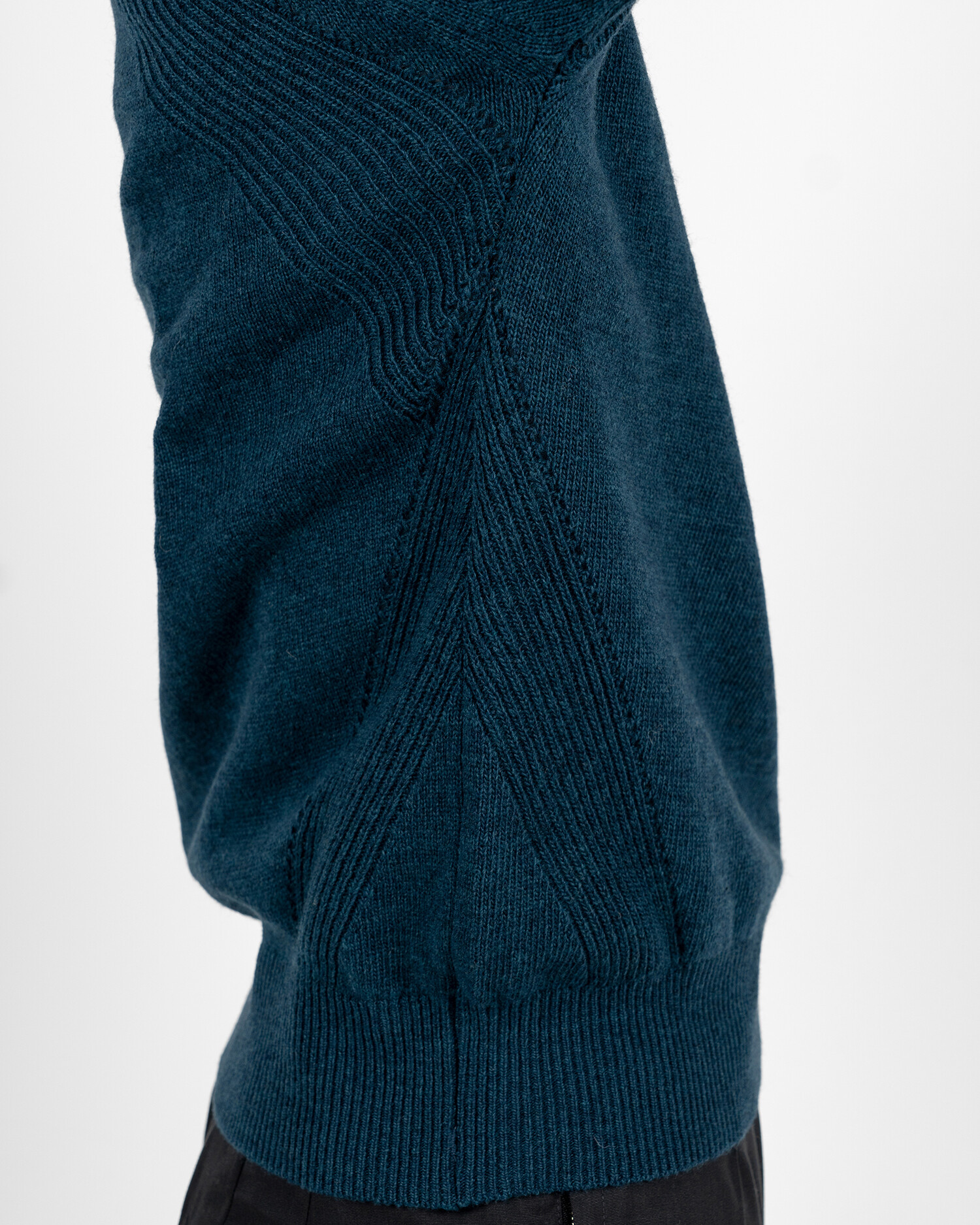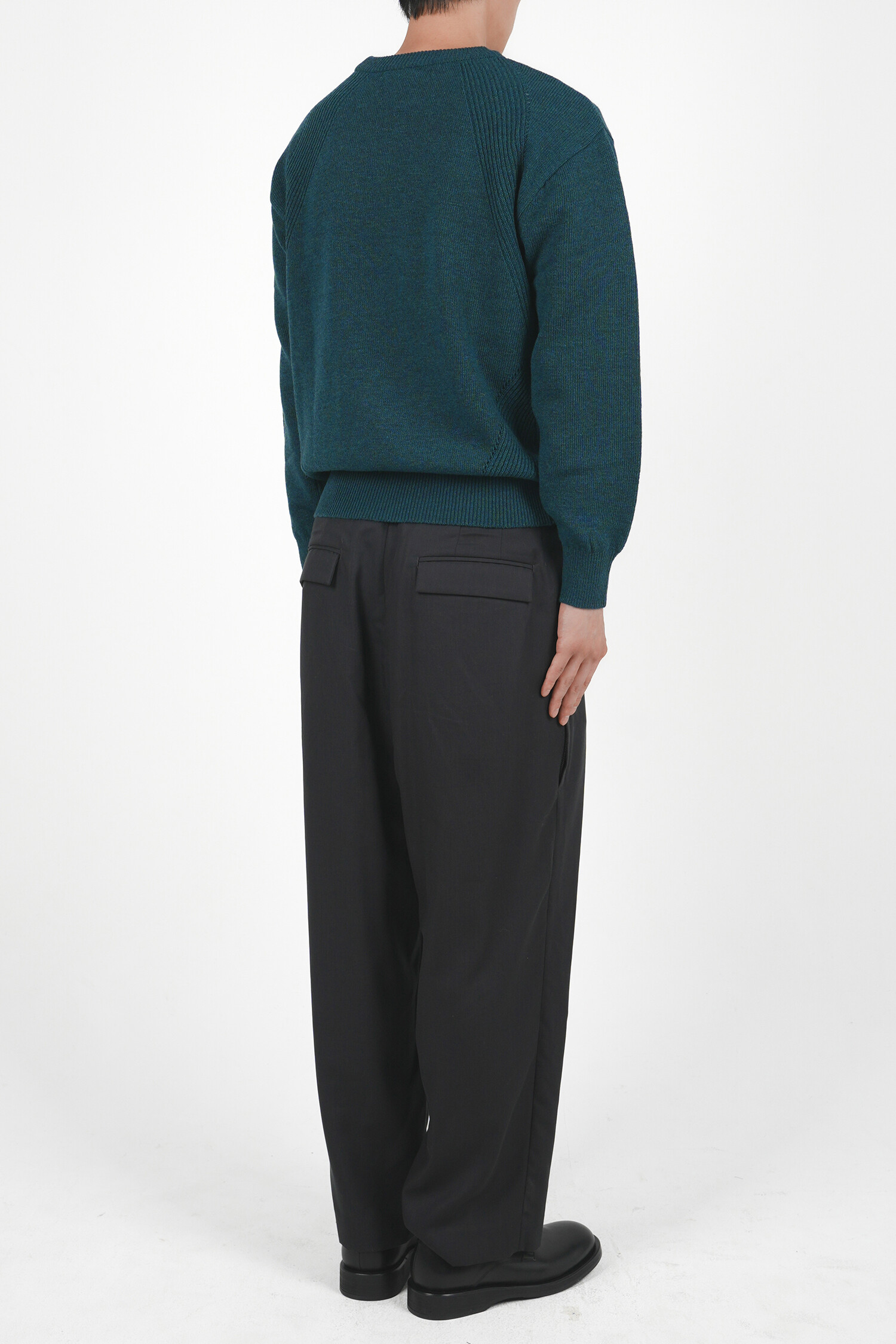RIBBED LINE CREWNECK SWEATER (Teal)