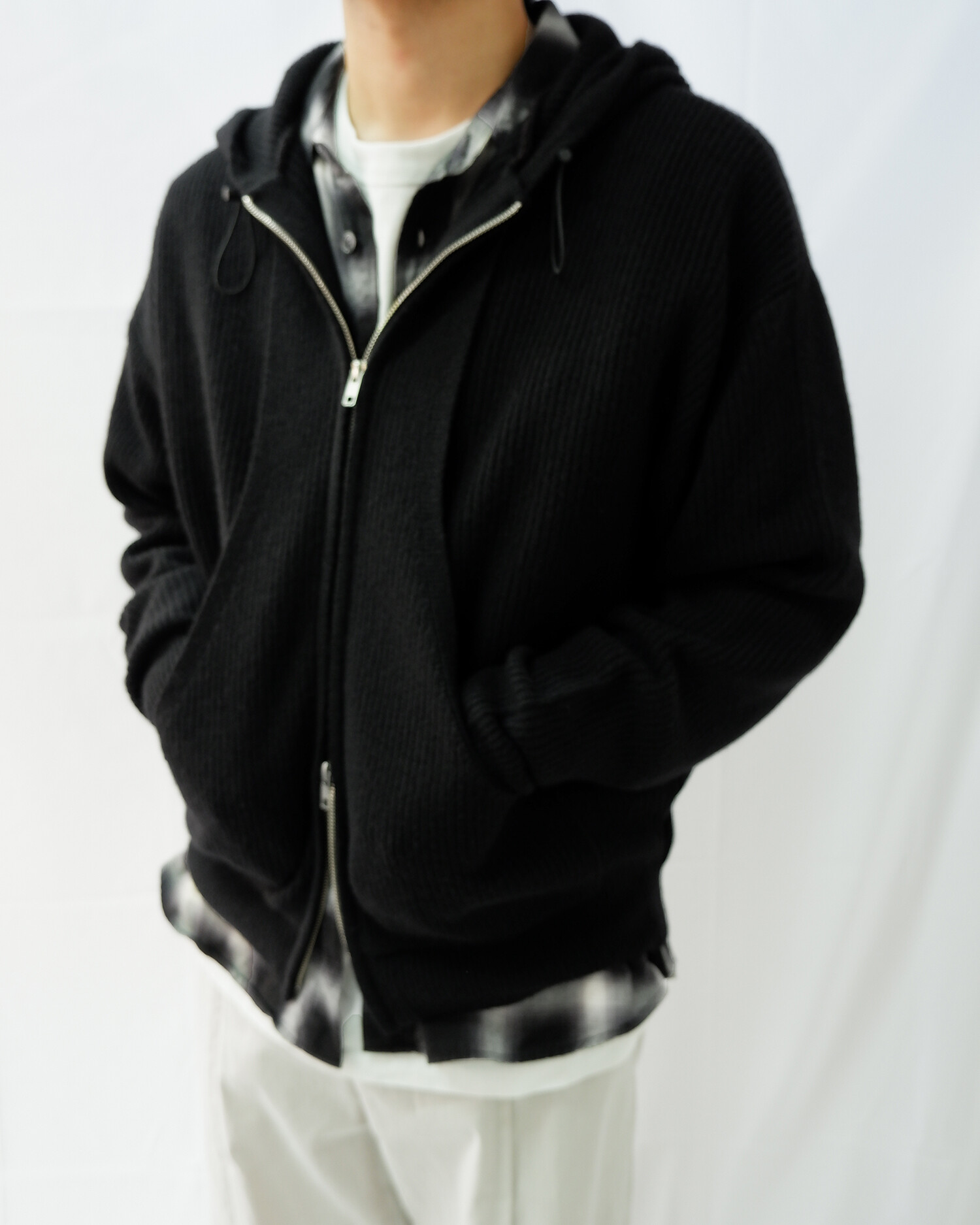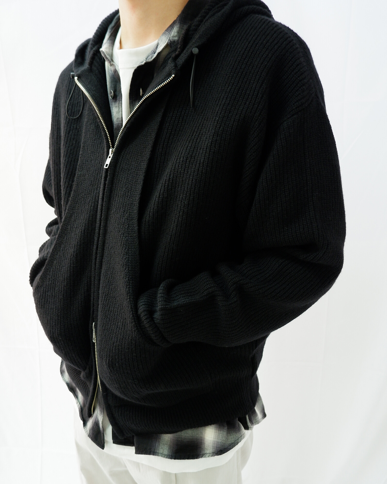 [22FW] FLEECY KNIT ZIP HOODIE (Black)