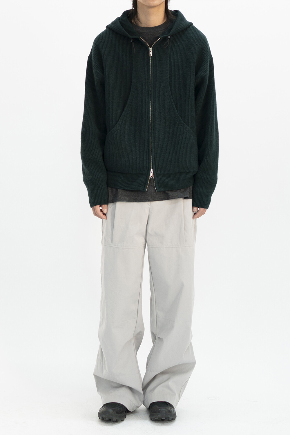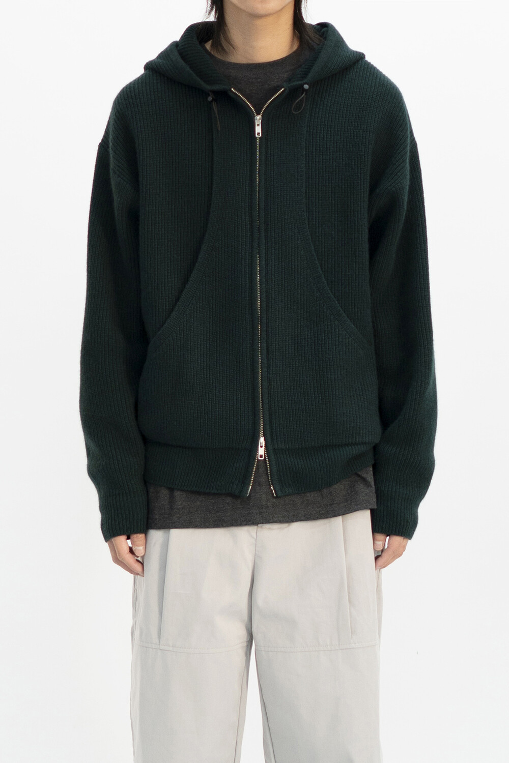 [22 FW] FLEECY KNIT ZIP HOODIE (Dark green)