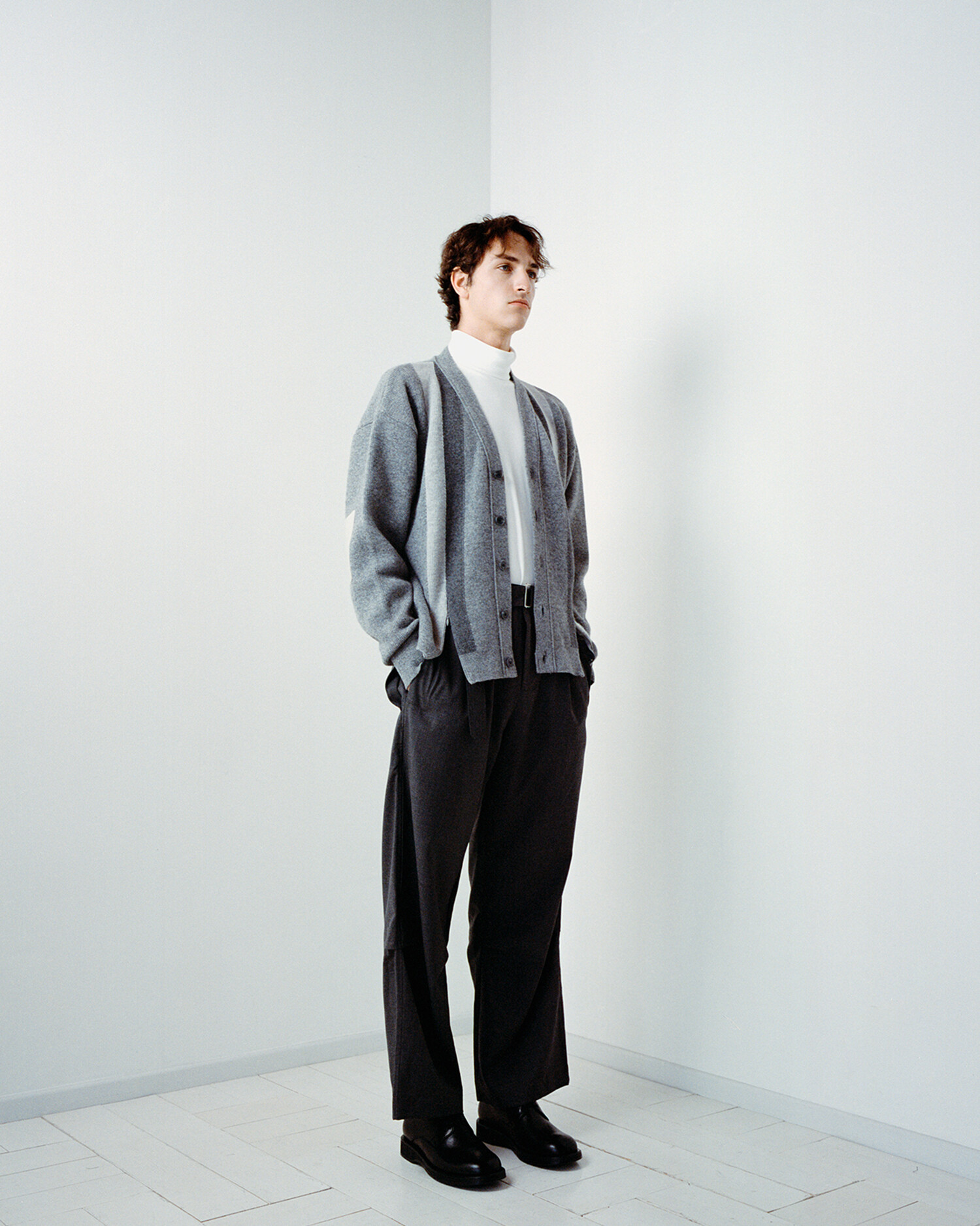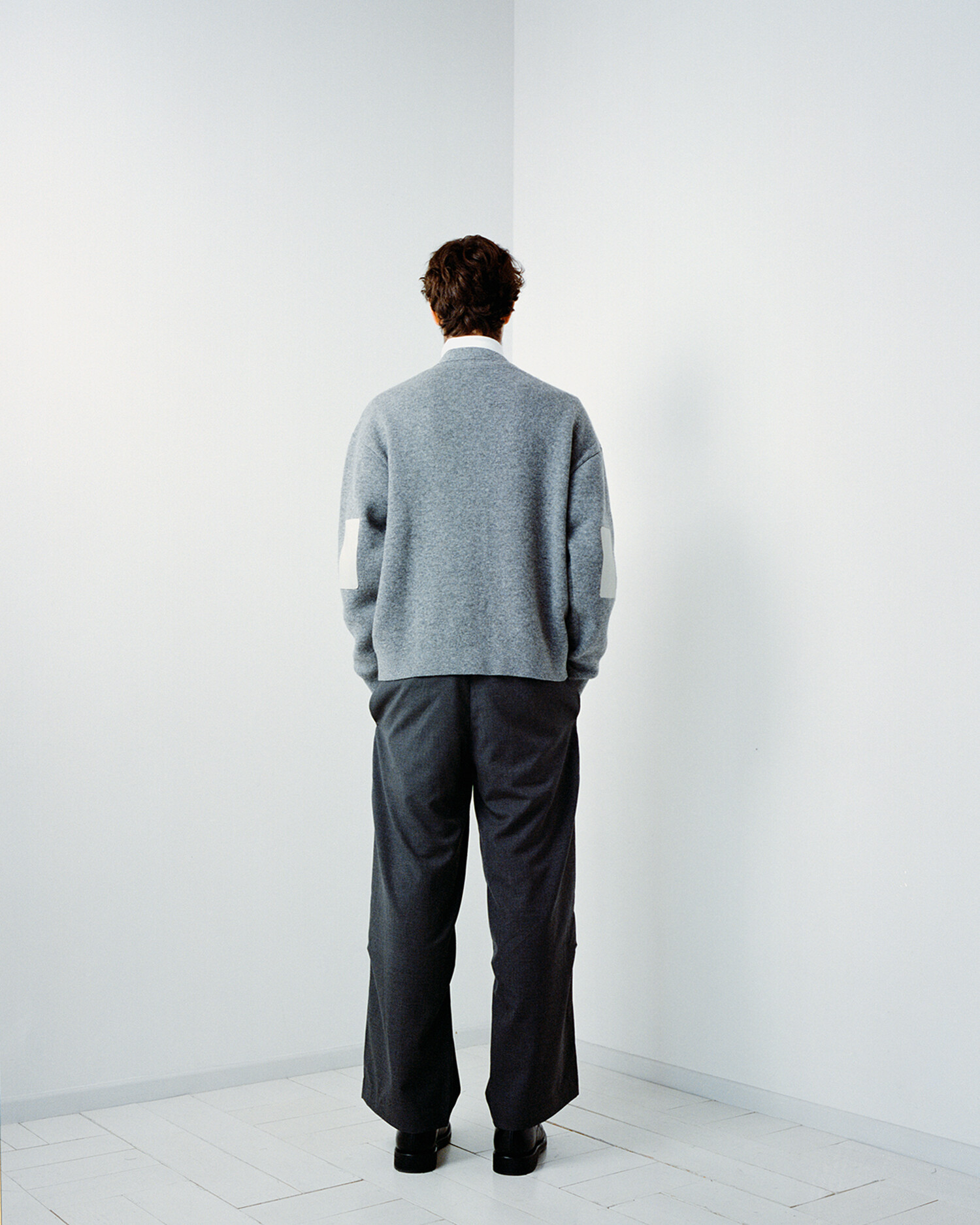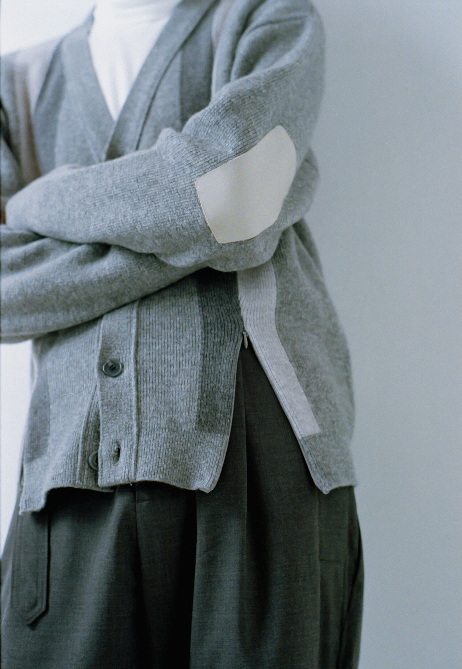 INTARSIA MILANO SLIT CARDIGAN (Grey)