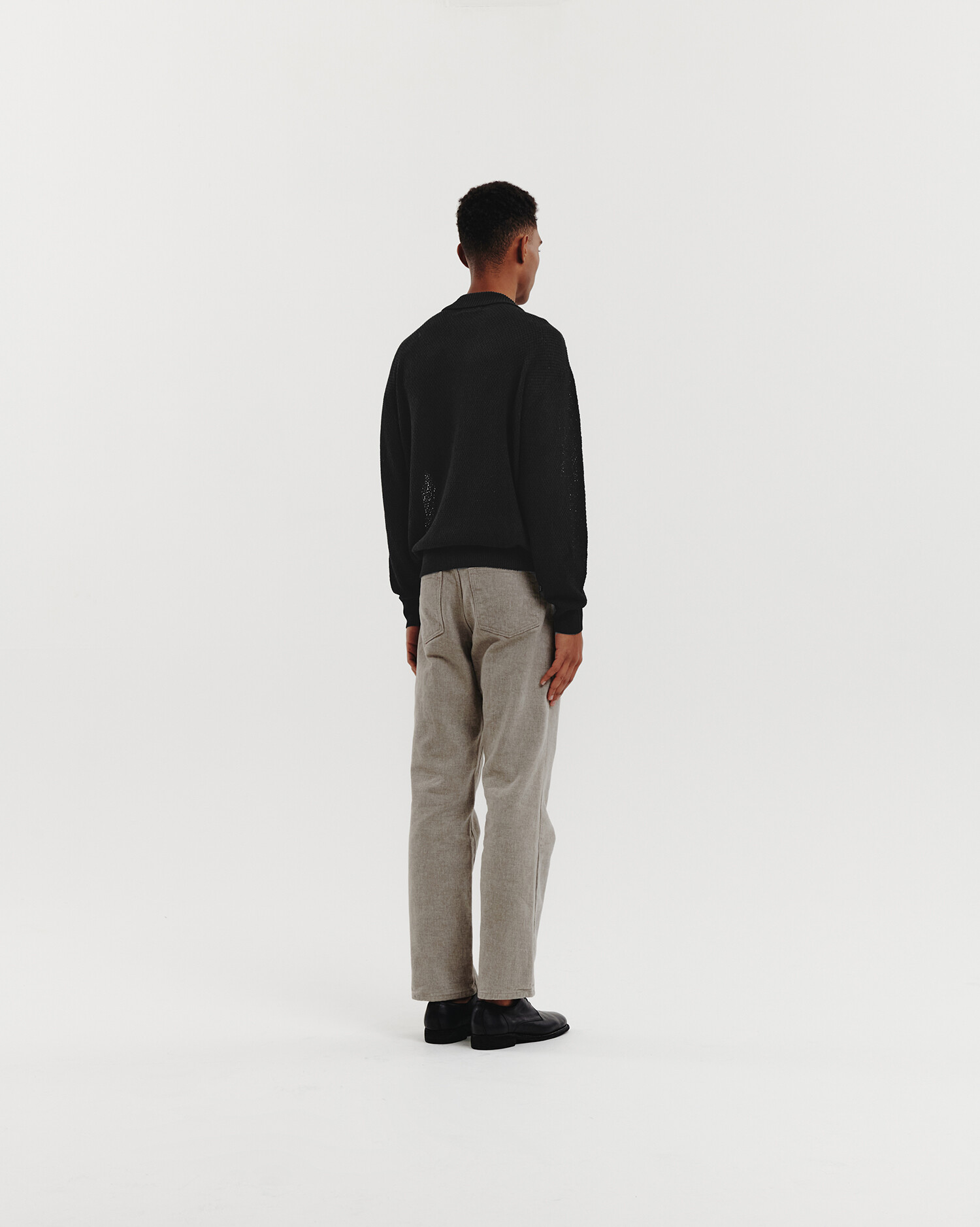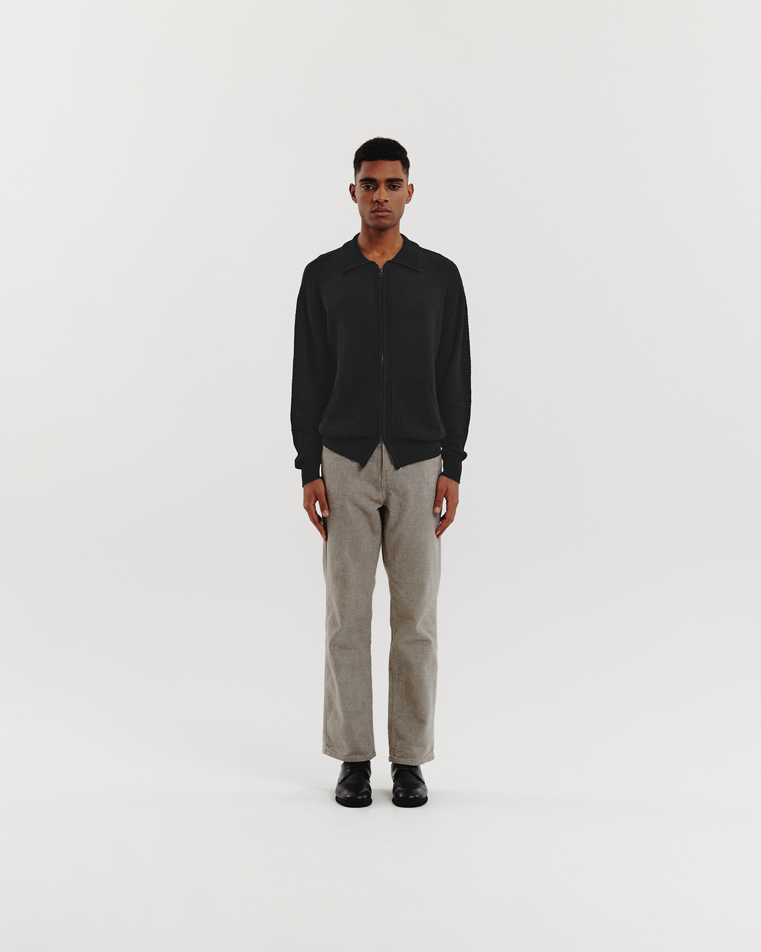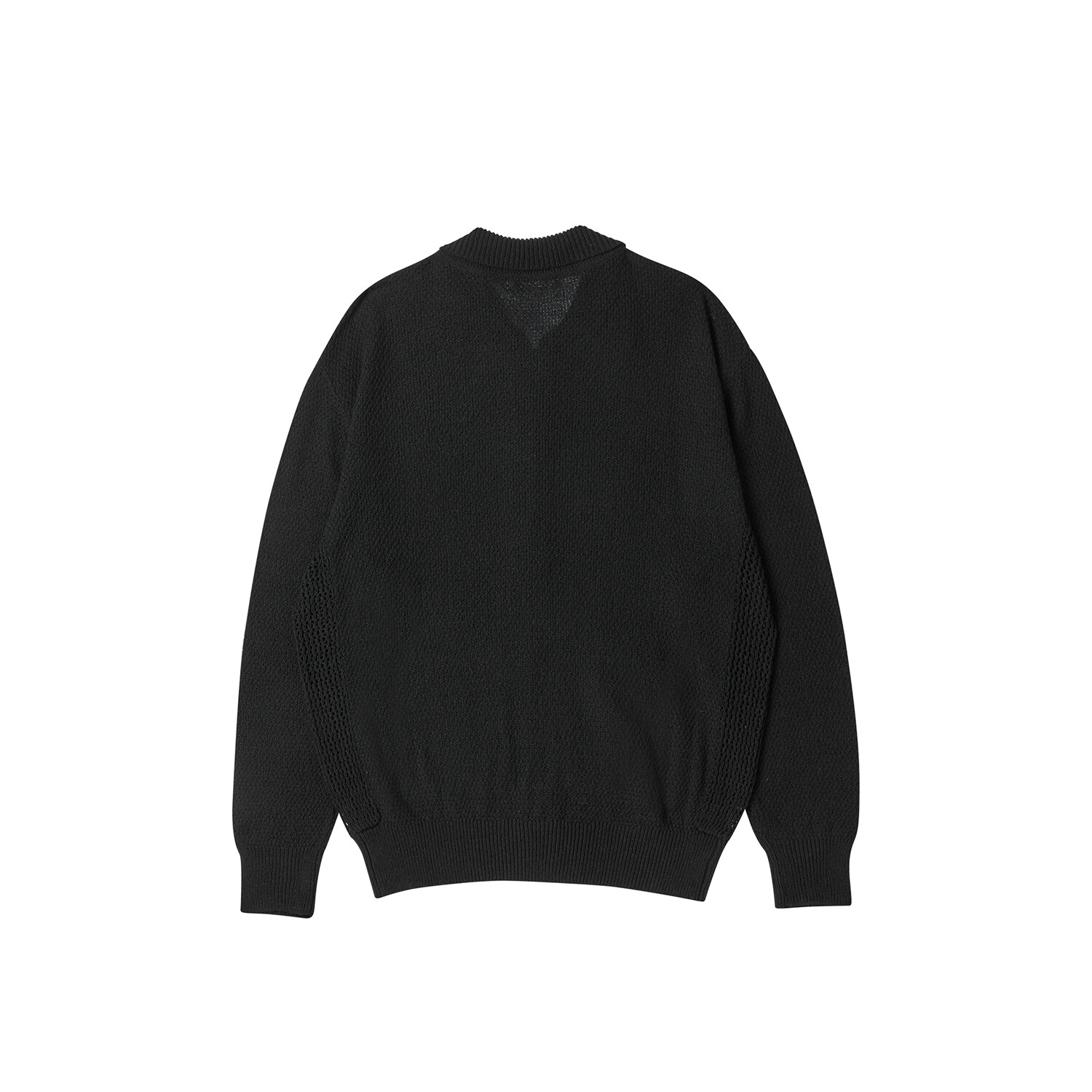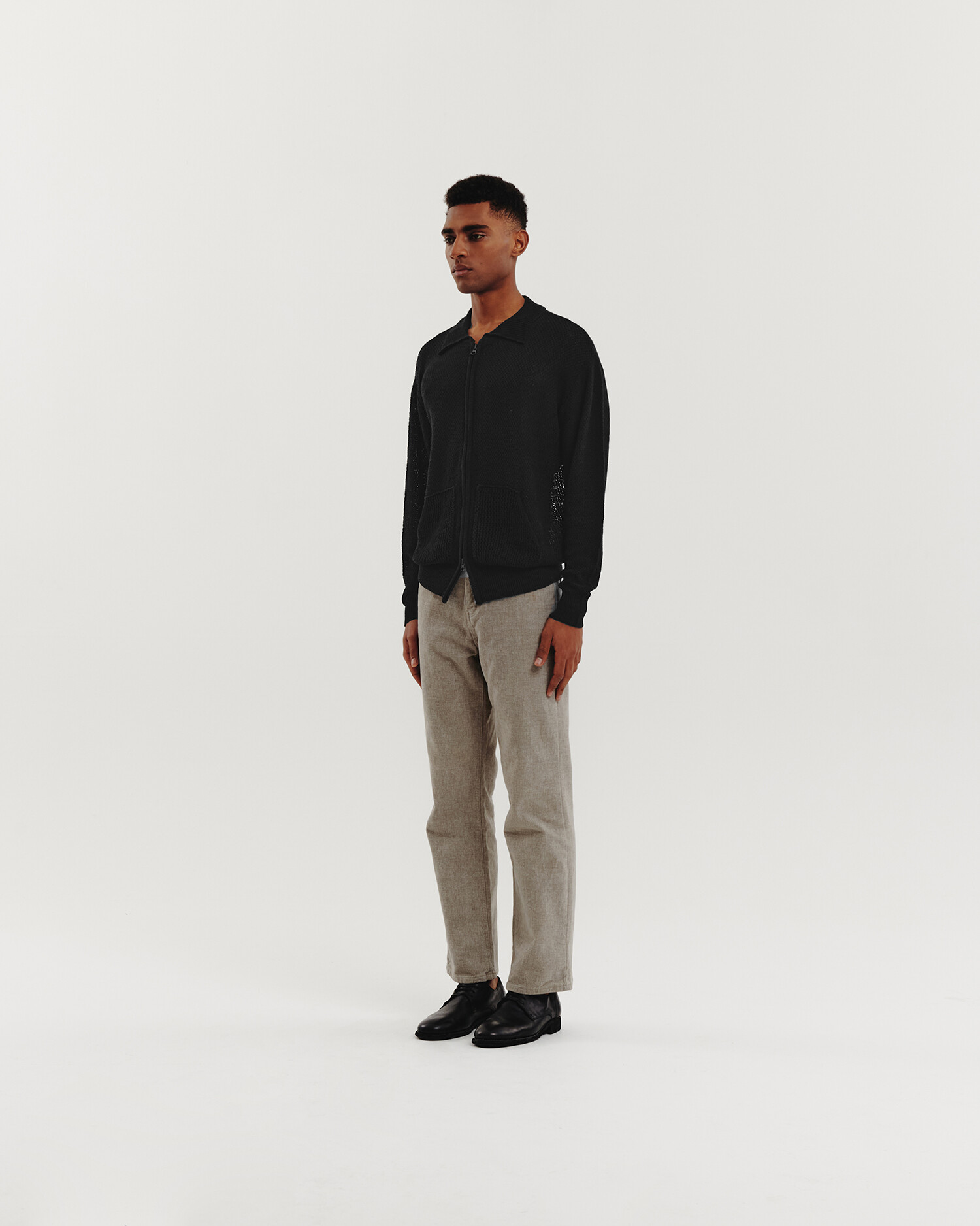 ▶ 포켓과 사이드 패턴에 시스루 형태의 네트 조직이 적용된 니트 칼라 집업입니다. YKK 비슬론 투웨이 지퍼를 사용했으며, 통기성이 좋고 시원한 소재와 조직으로 제작하여 한여름 전까지 착용하실 수 있습니다. 깔끔한 화이트 티셔츠 뿐 아니라 그래픽이 있는 이너와 함께 입어도 좋습니다.