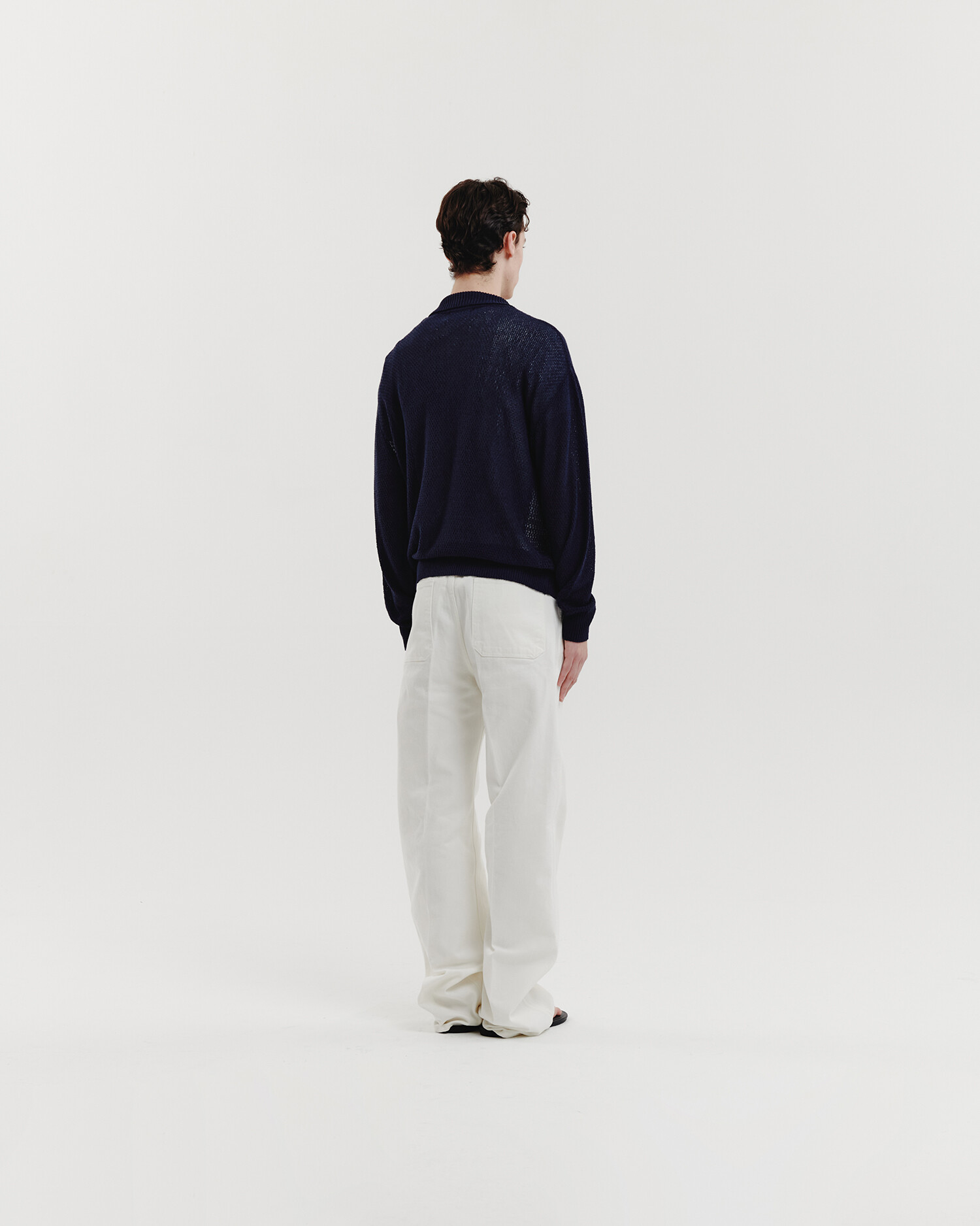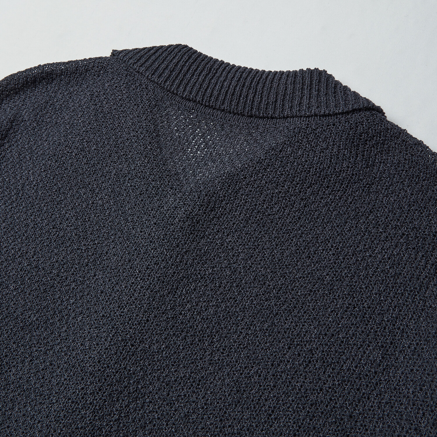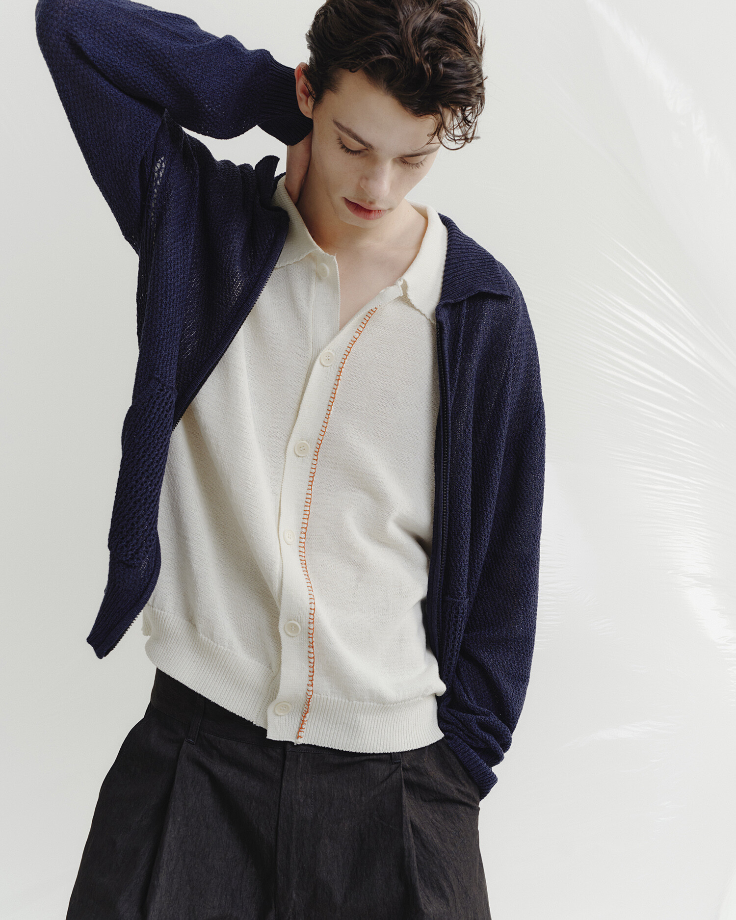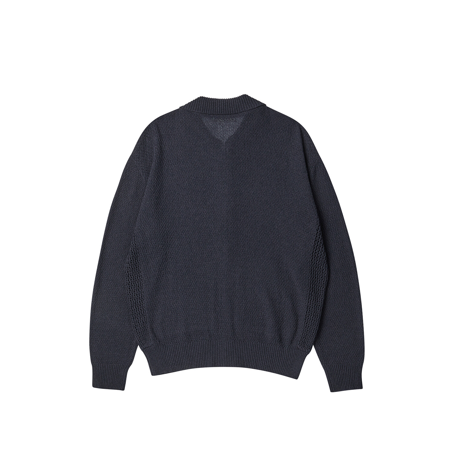 ▶ 포켓과 사이드 패턴에 시스루 형태의 네트 조직이 적용된 니트 칼라 집업입니다. YKK 비슬론 투웨이 지퍼를 사용했으며, 통기성이 좋고 시원한 소재와 조직으로 제작하여 한여름 전까지 착용하실 수 있습니다. 깔끔한 화이트 티셔츠 뿐 아니라 그래픽이 있는 이너와 함께 입어도 좋습니다.
