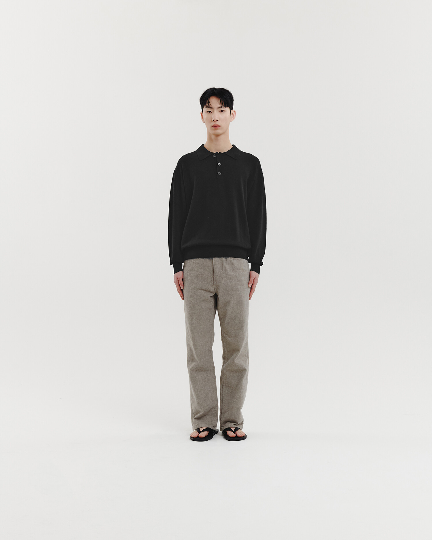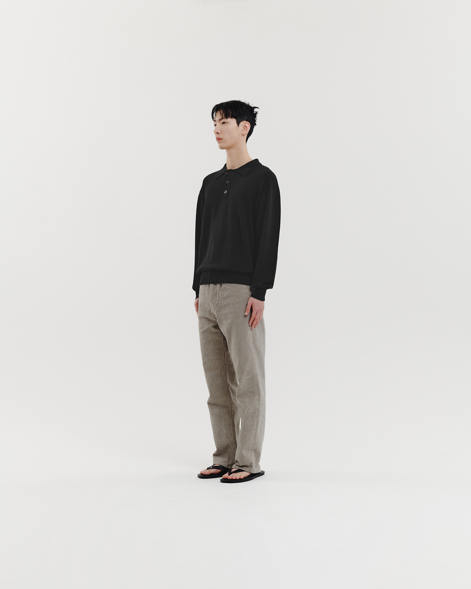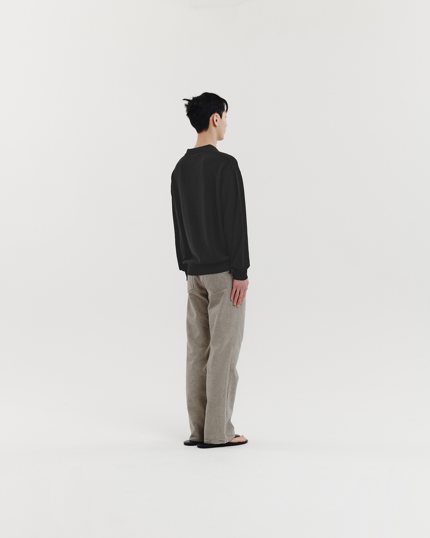 ▶ 앞, 뒤의 조직 모양이 다른 니트 폴로 셔츠. 스탠다드한 칼라 타입과 세미 오버핏의 편안한 실루엣이 구현된 제품입니다. 가장 상단의 버튼은 플라켓 위치를 벗어난 디자인적 변주를 주었고, 싱글 조직의 앞면과 양두 조직의 뒷면을 비교하는 재미가 있습니다. 뒷면의 암홀 부분에는 립 라인이 들어가서 구조적인 디자인 포인트를 더했습니다. 단품으로 활용하거나 셔츠를 이너로 레이어드 해도 좋습니다. 통기성이 좋은 소재로 한여름을 제외한 봄~가을 시즌에 착용해주시기 바랍니다.
