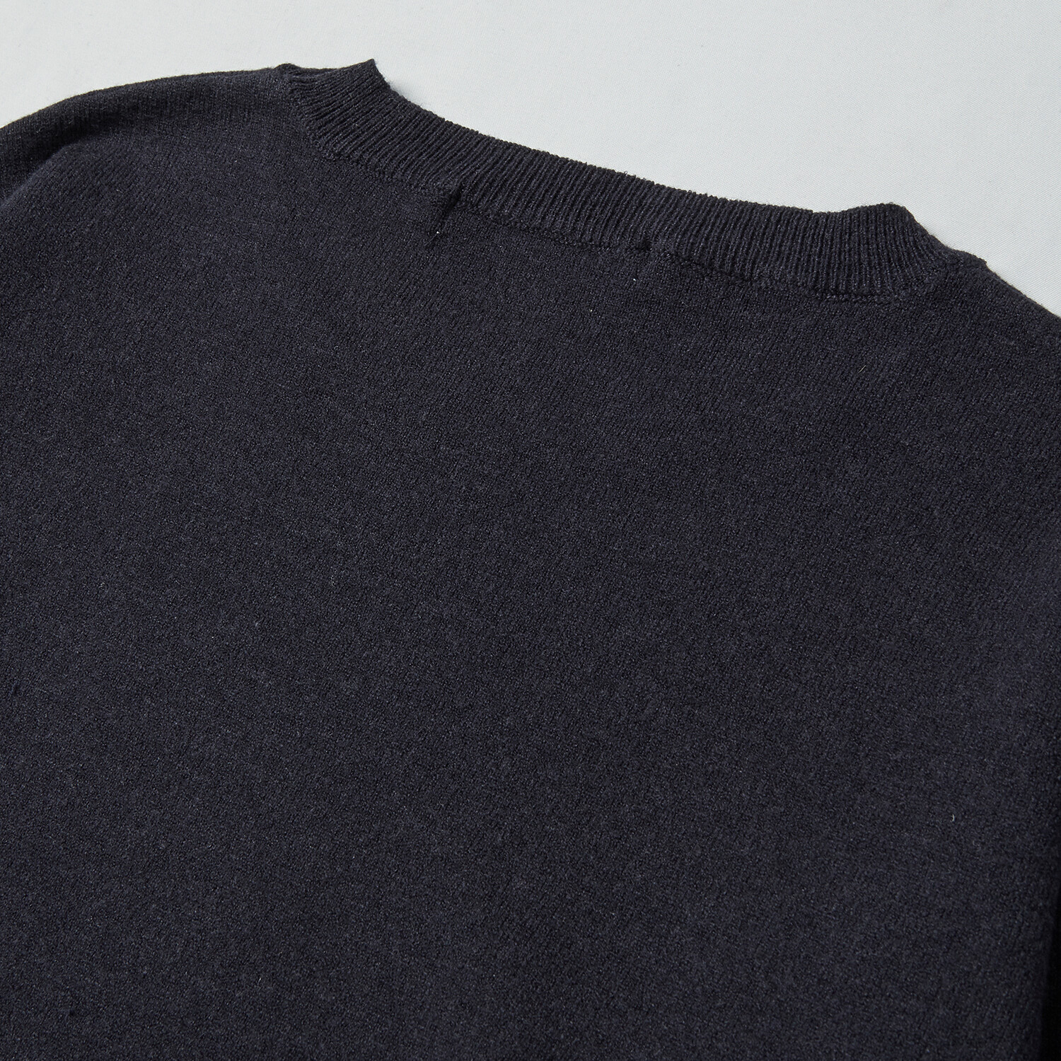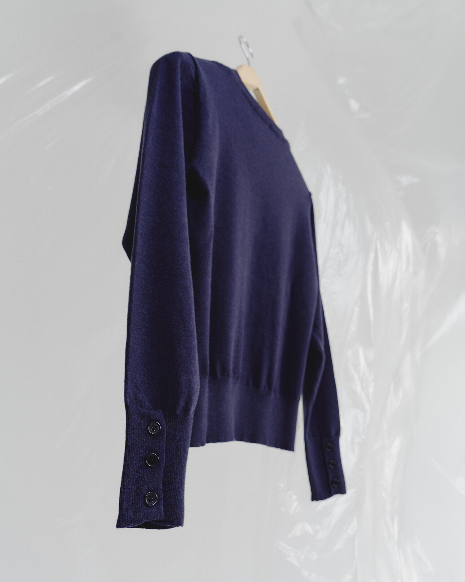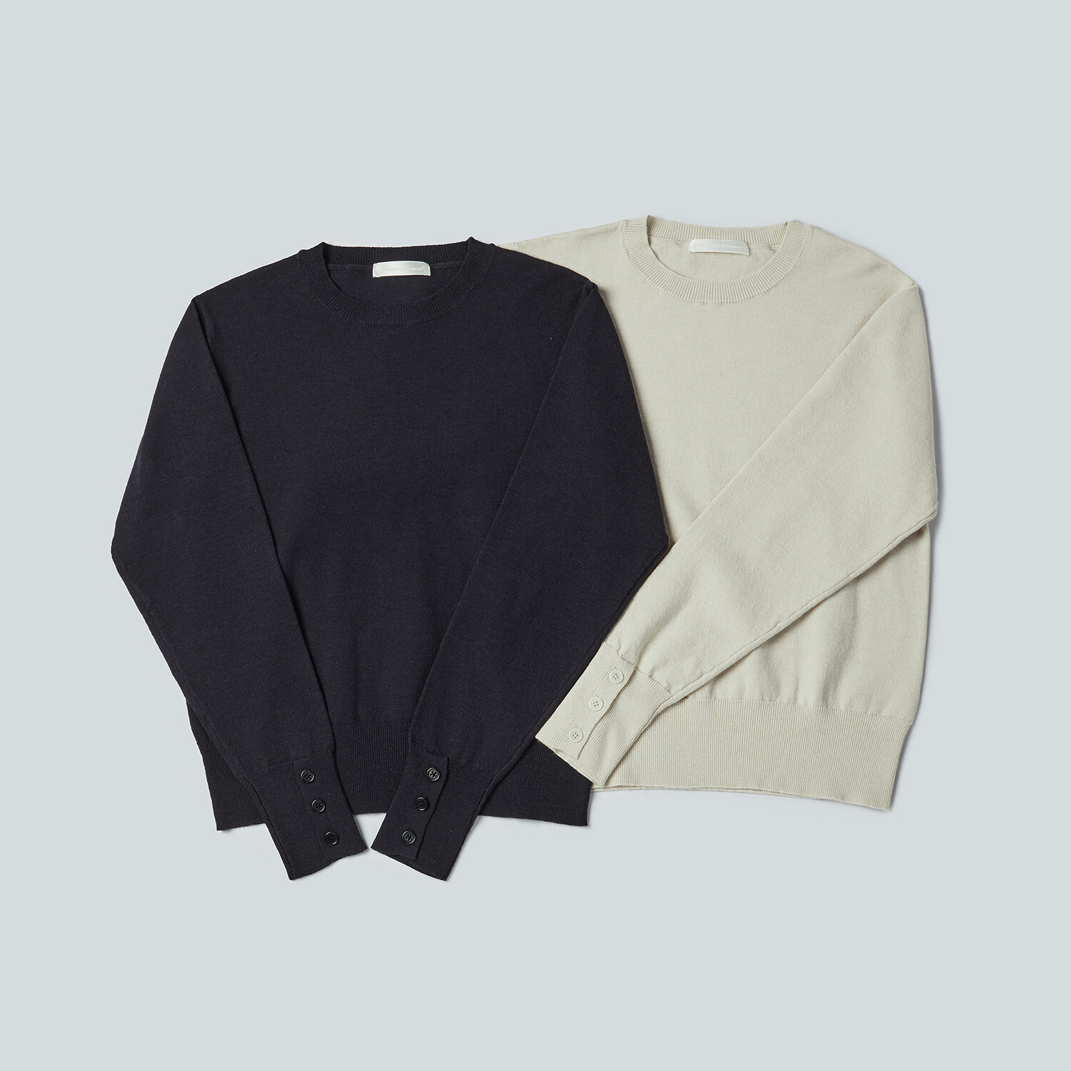 ▶ WOMEN 라인으로 출시한 제품으로 짧은 기장감과 성형 편직을 통해 적당하게 잡혀 있는 허리라인이 실루엣적 특징입니다. 굉장히 부드럽고 섬세한 촉감의 원사를 사용했으며 깔끔한 외관과 터치로 단품으로 활용하기 좋습니다. 소매에는 셔츠와 같은 커프스 및 버튼 디테일을 적용했으며, 12게이지 1합 싱글 조직으로 얇은 두께감의 크루넥입니다. 헤라시 편직 및 고급 사시 봉제를 통해 완성도 있게 마감했습니다.