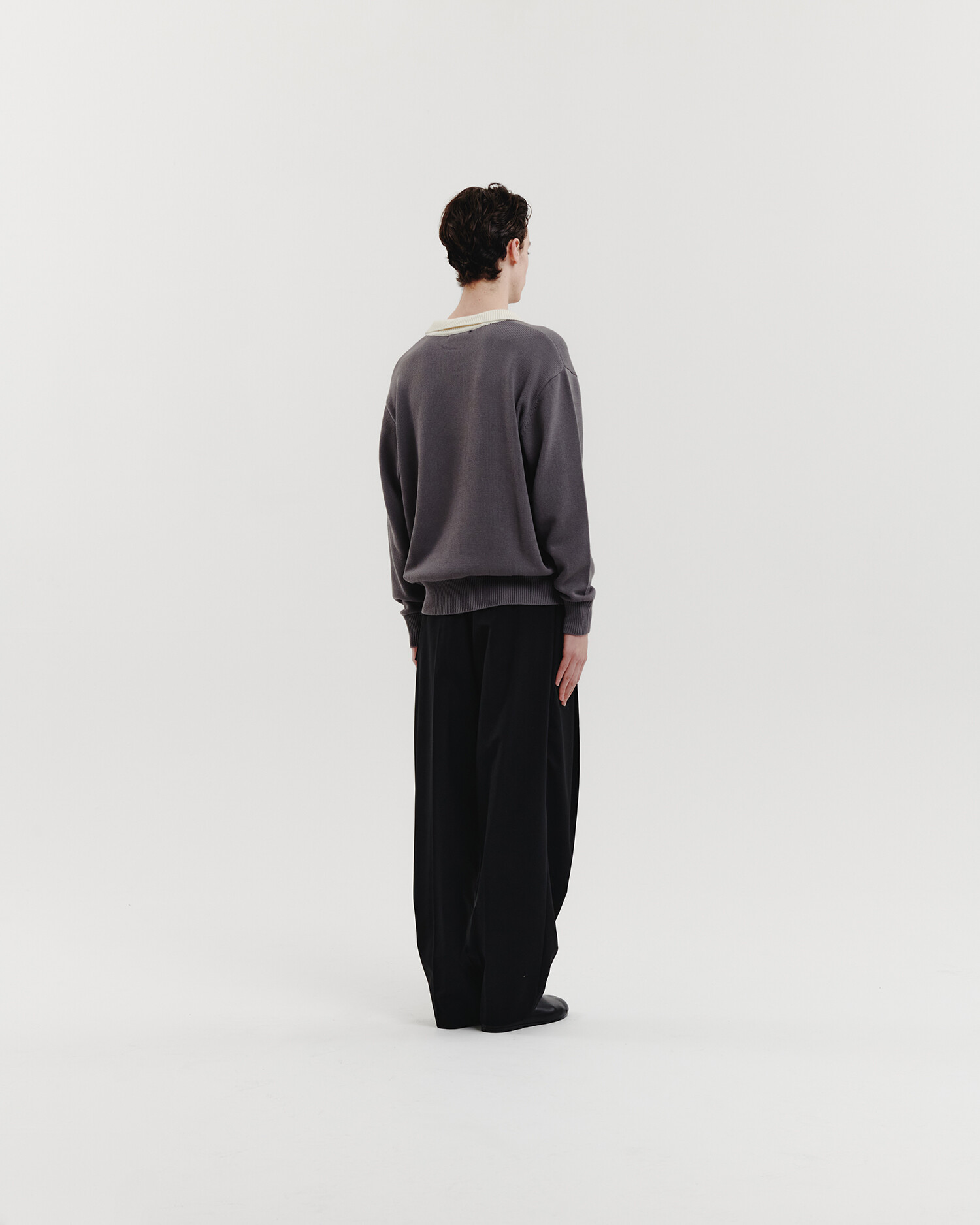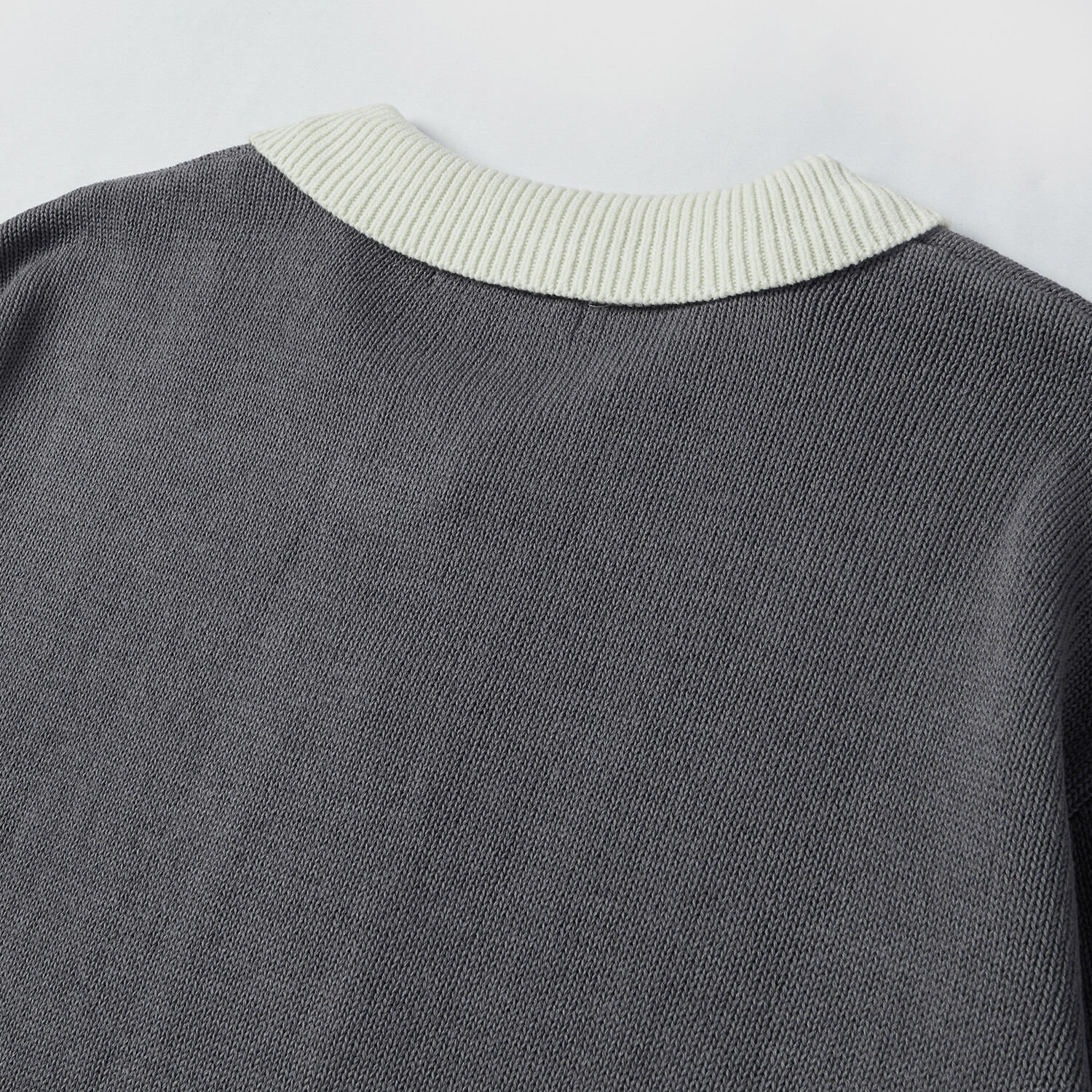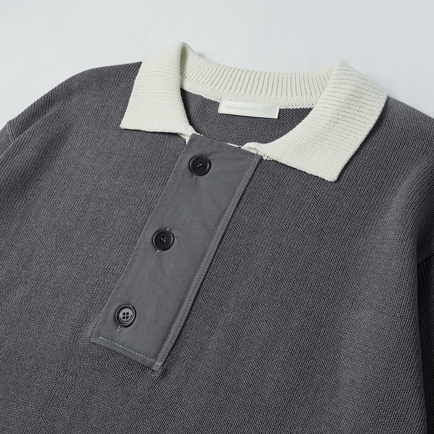▶ 와이드한 칼라가 적용된 니트 폴로 셔츠입니다. 전체적으로 여유있는 실루엣으로 편하게 착용하실 수 있으며 면과 아크릴 혼용사를 사용하여 터치가 부드럽고 관리가 용이합니다. 와이드한 칼라에는 몸판의 컬러보다 밝은 톤의 컬러가 배색으로 들어가 있으며 단추를 잠구는 플라켓은 크기를 키우고 우븐 원단을 덧대어 하이브리드 형태로 제작했습니다. 단추를 열어서 니트와 우븐 원단을 같이 보여주는 디테일이 특징인 제품입니다. 로고가 각인된 천연 너트단추를 사용했으며 헤라시 편직 및 고급 사시봉제를 통해 완성도있게 마감했습니다.