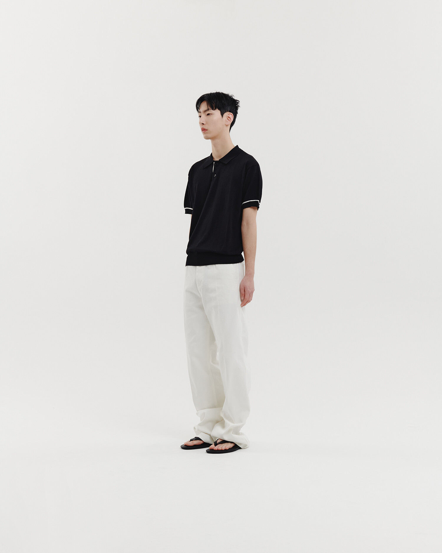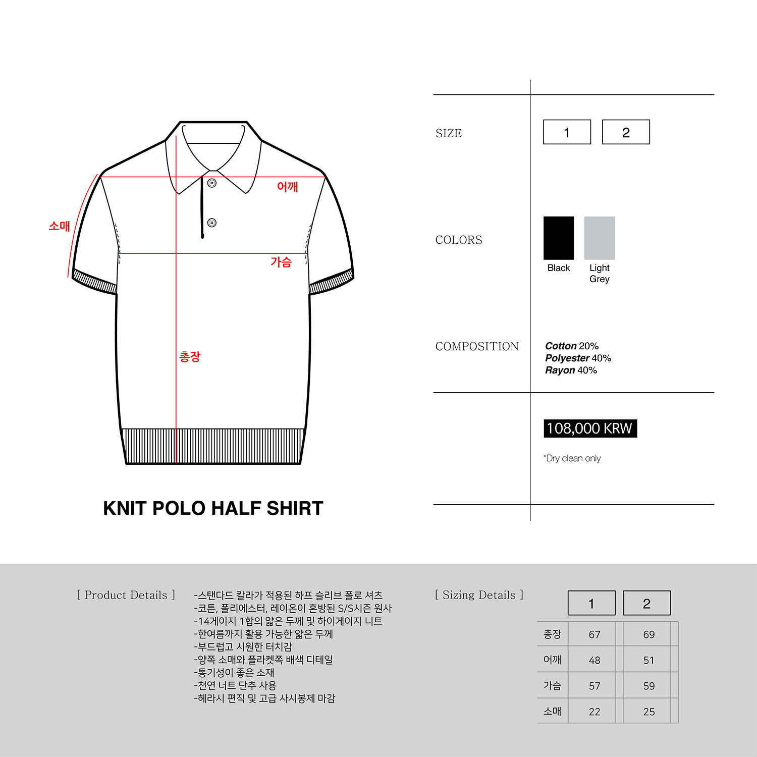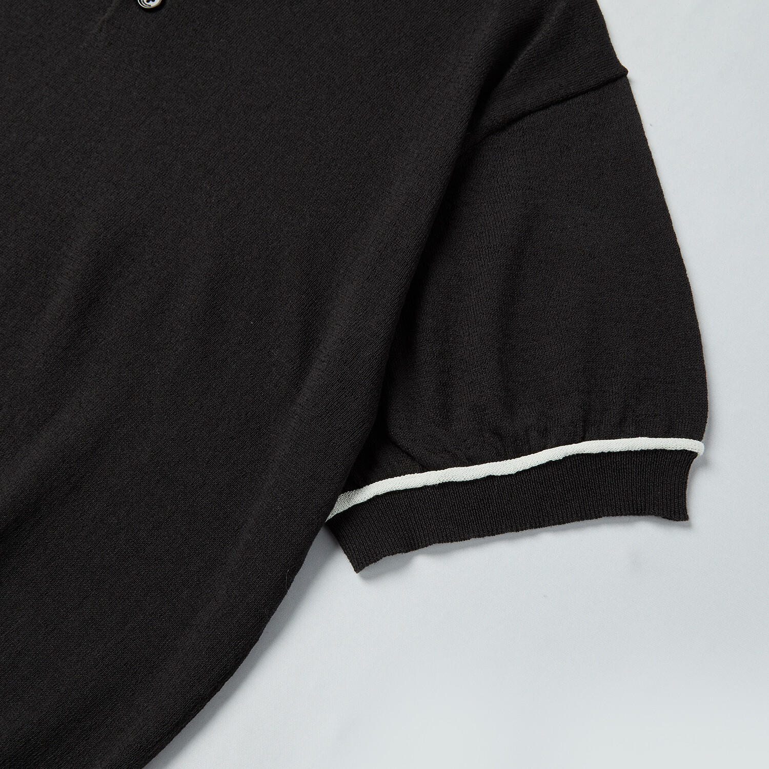 ▶ 스탠다드한 칼라가 적용된 하프 슬리브 니트 폴로 셔츠입니다. 코튼, 폴리에스터 및 레이온 등이 혼용된 여름용 원사를 사용했습니다. 부드럽고 섬세한 촉감이 장점이며 통기성이 좋습니다. 소매와 플라켓쪽 배색 디테일이 돋보이며 단정하고 캐주얼하게 매치할 수 있습니다. 전체적인 실루엣은 여유로운 핏으로 제작하였고 고급 사시 봉제로 마감했습니다. 단추는 로고가 각인된 천연 너트 단추를 사용했습니다.