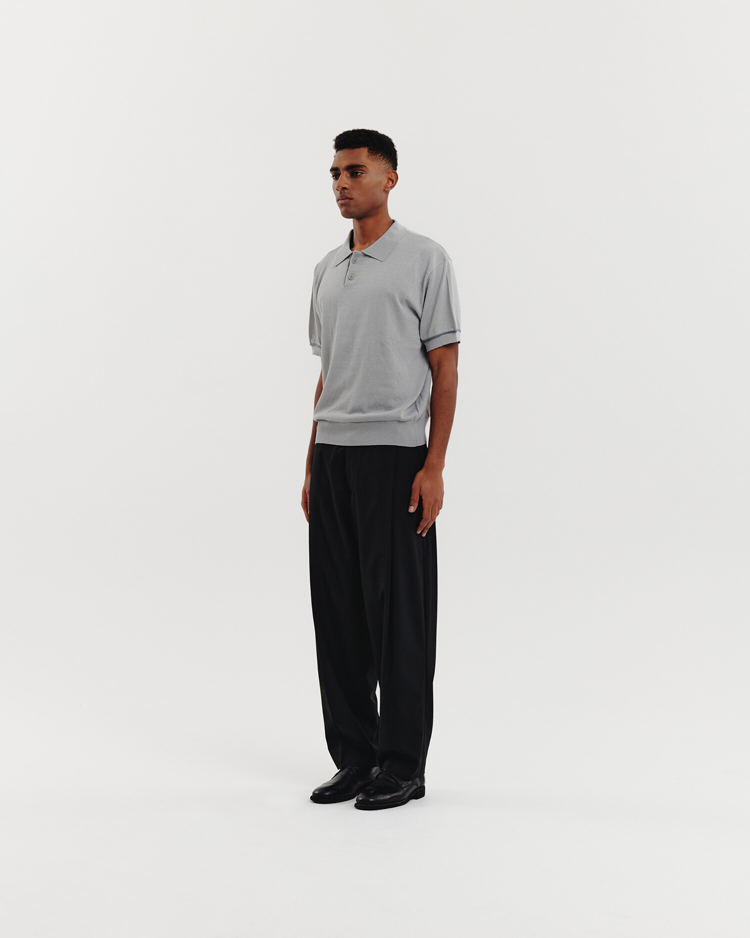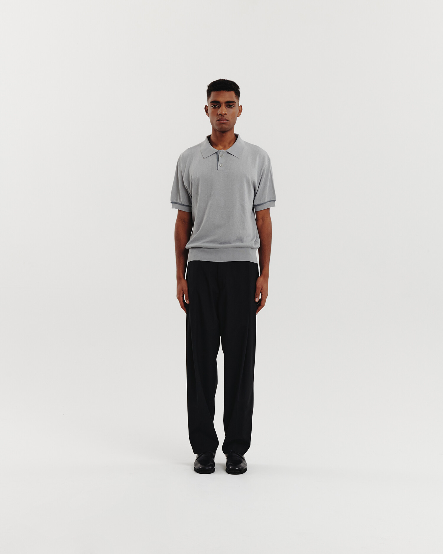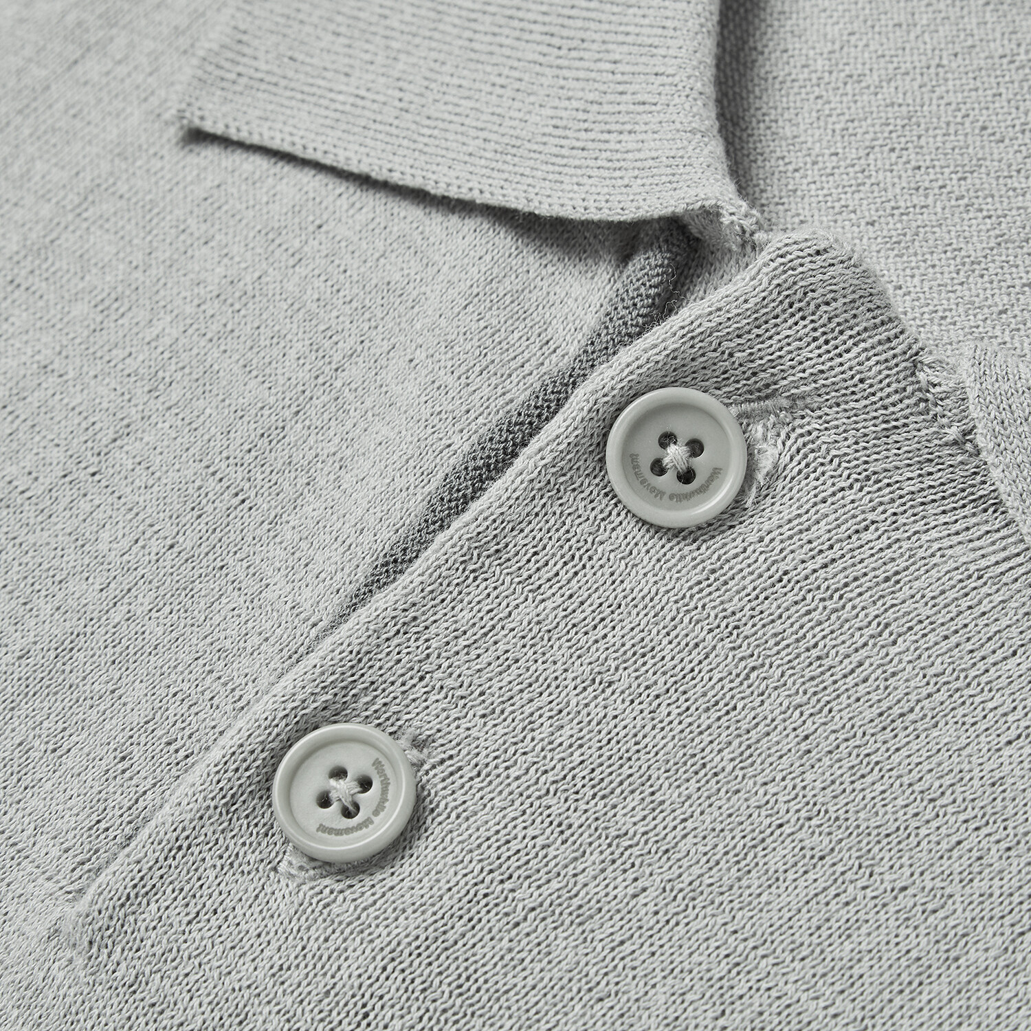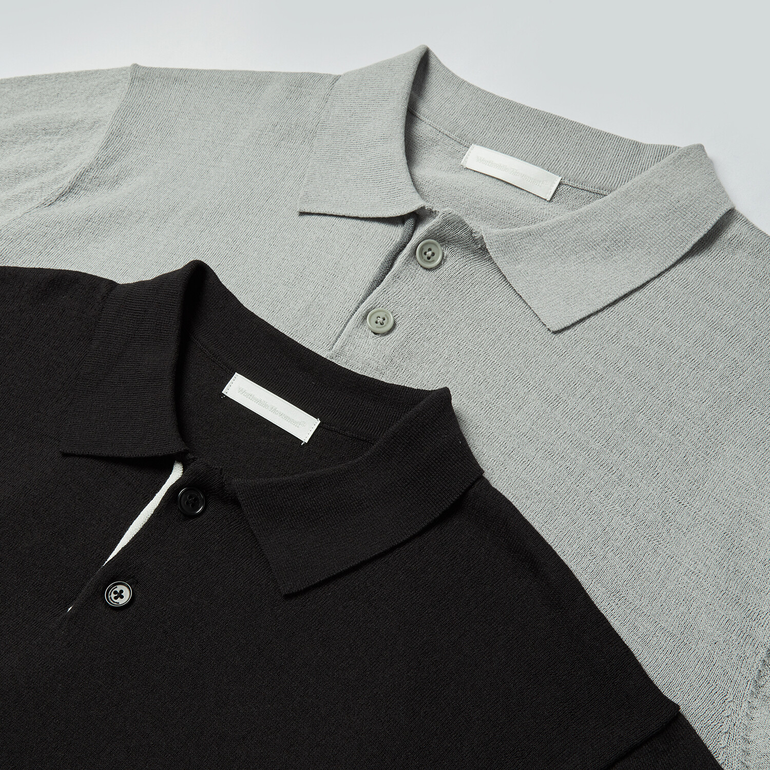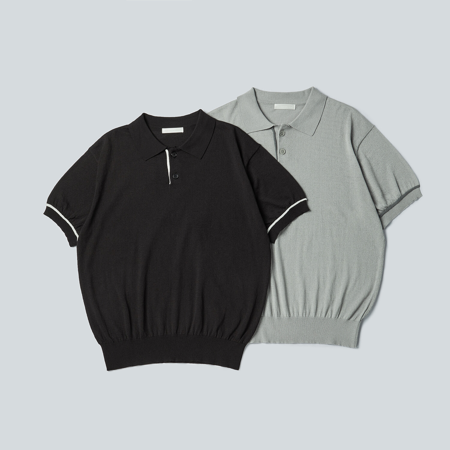 ▶ 스탠다드한 칼라가 적용된 하프 슬리브 니트 폴로 셔츠입니다. 코튼, 폴리에스터 및 레이온 등이 혼용된 여름용 원사를 사용했습니다. 부드럽고 섬세한 촉감이 장점이며 통기성이 좋습니다. 소매와 플라켓쪽 배색 디테일이 돋보이며 단정하고 캐주얼하게 매치할 수 있습니다. 전체적인 실루엣은 여유로운 핏으로 제작하였고 고급 사시 봉제로 마감했습니다. 단추는 로고가 각인된 천연 너트 단추를 사용했습니다.