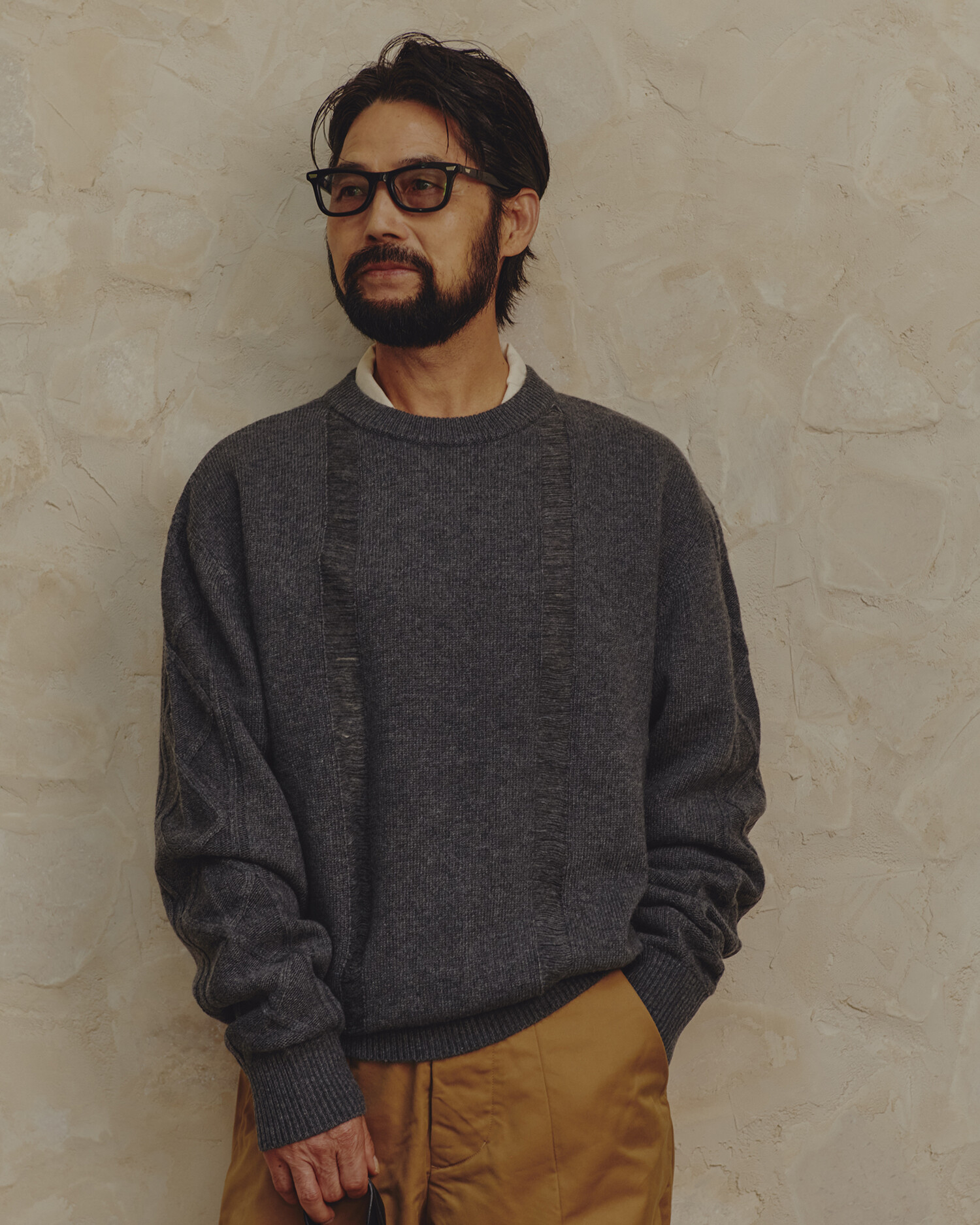 -소매에 적용된 클래식한 피셔맨 케이블 조직