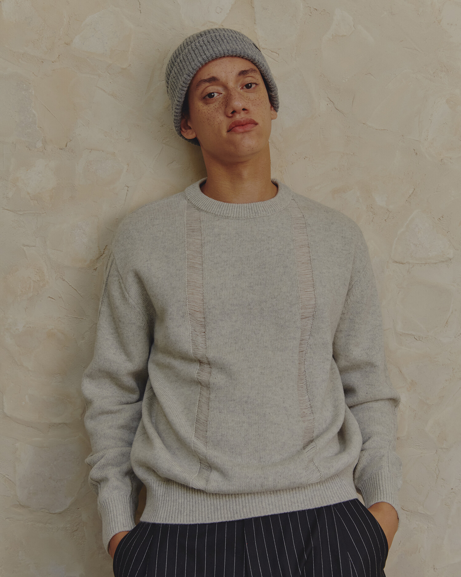 DAMAGED FISHERMAN KNIT (Cloud grey)
