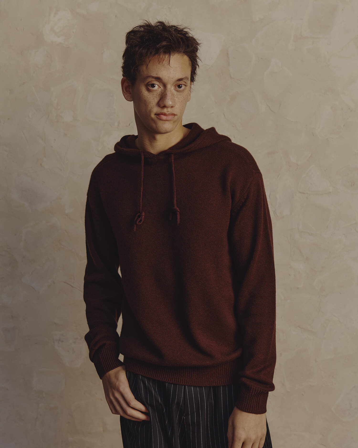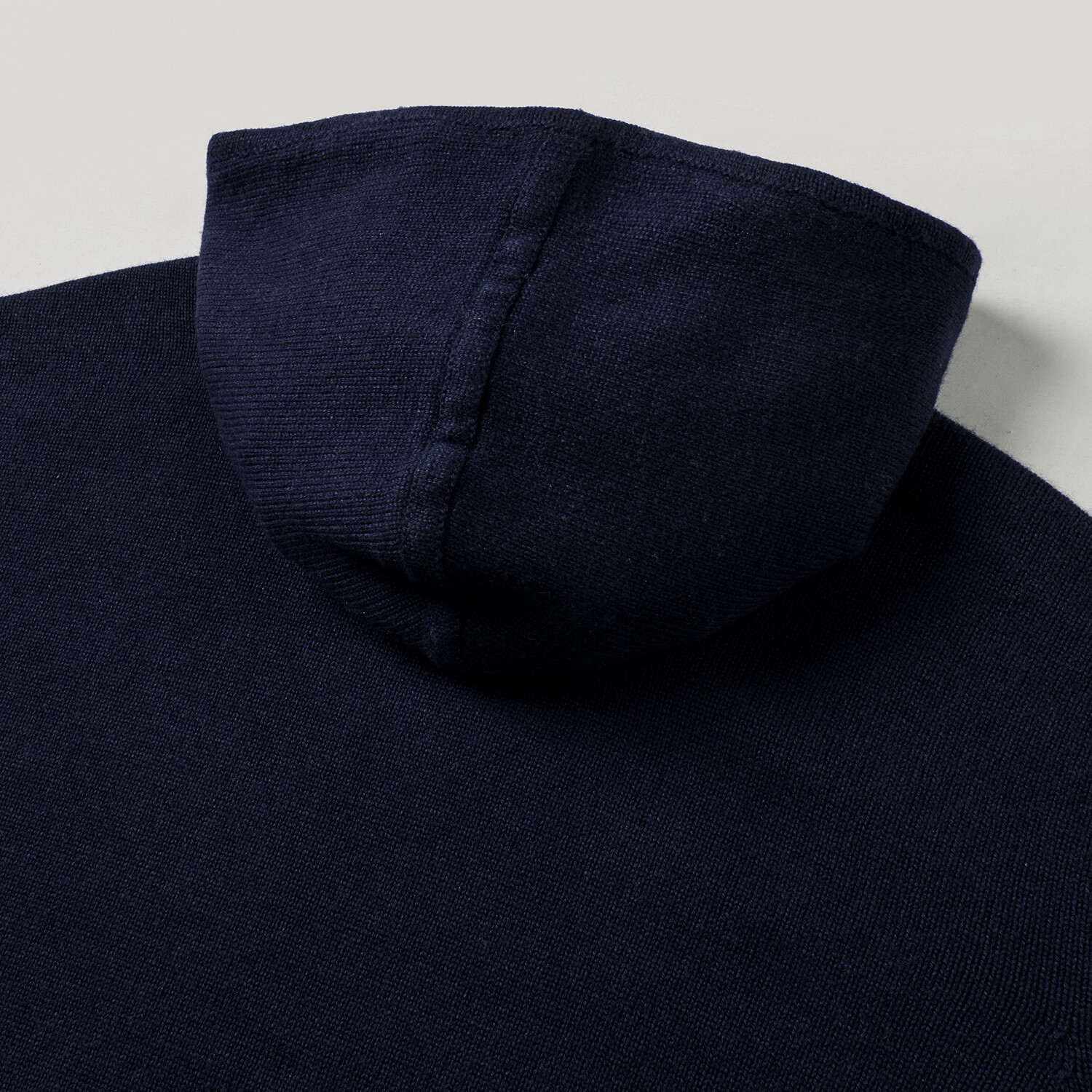 -후드 절개 및 후드 시접을 니트 조직으로 감싸는 고급 마감