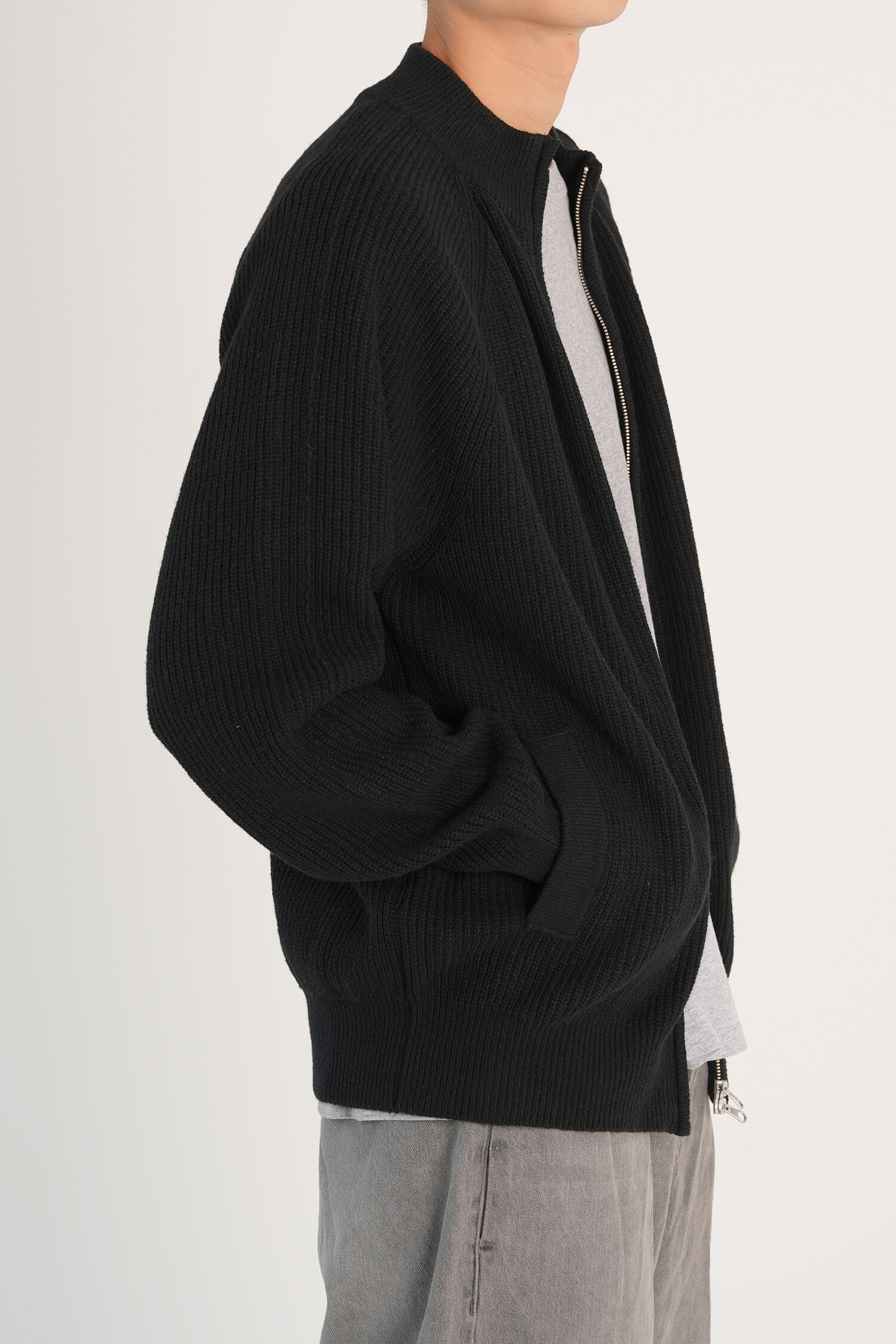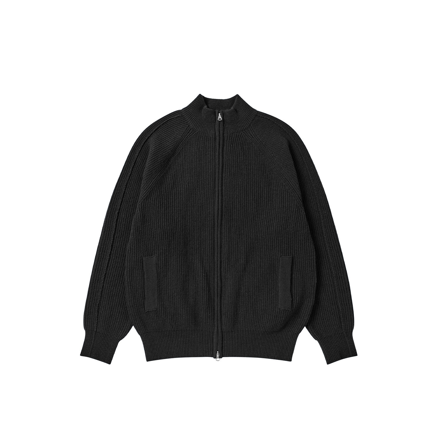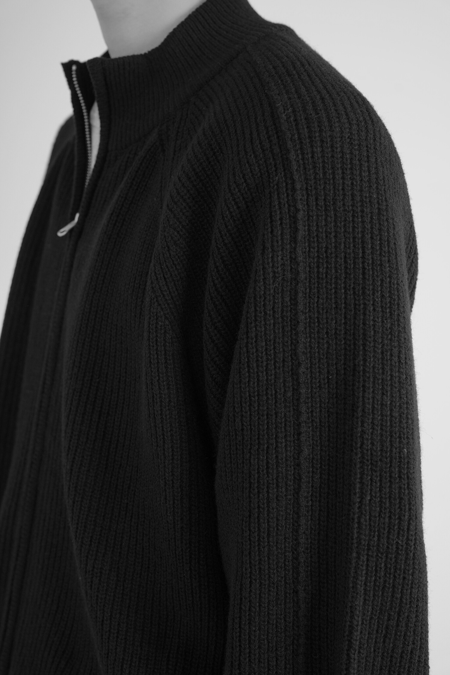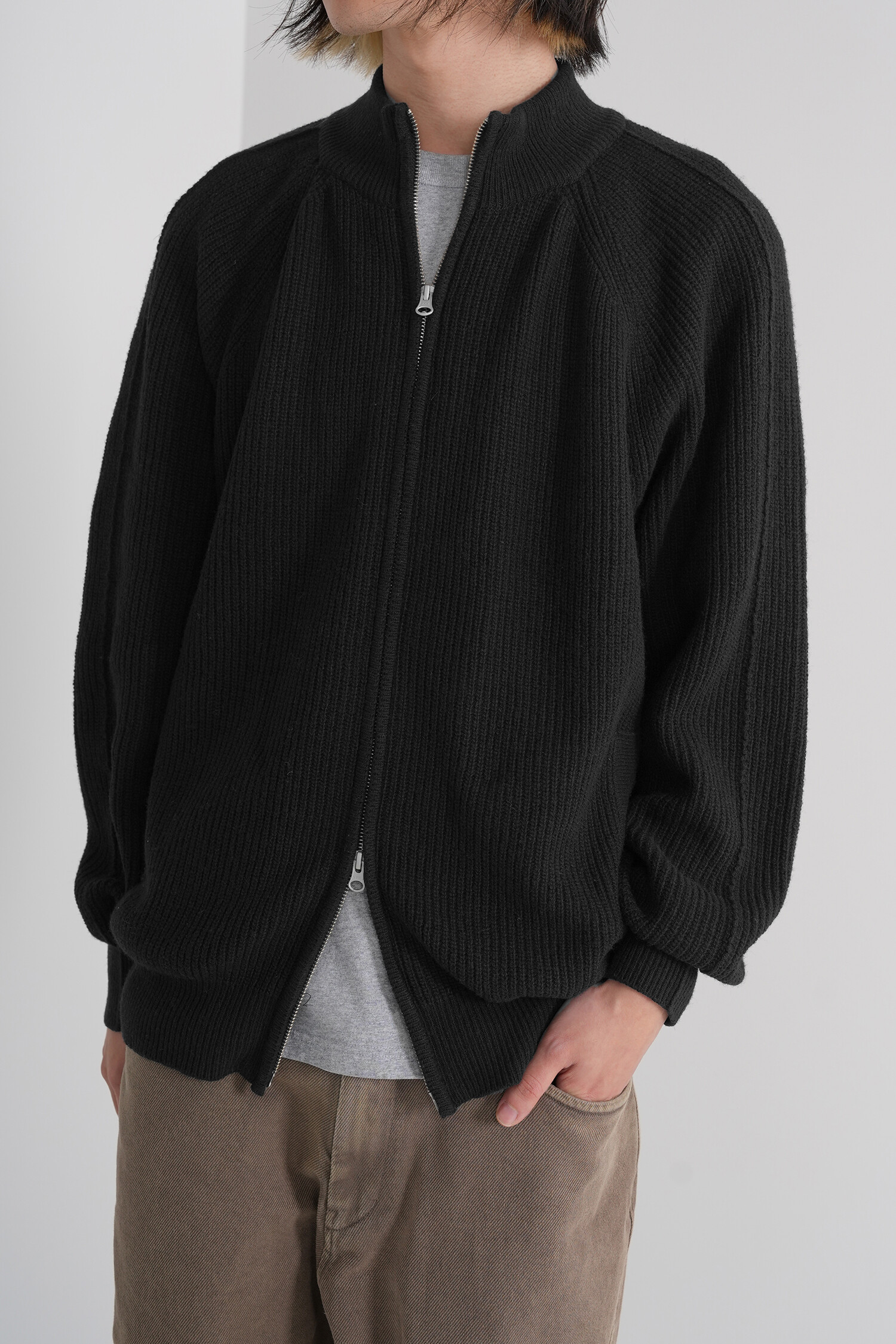 LINE MOCK NECK 2WAY KNIT ZIP-UP (Black)