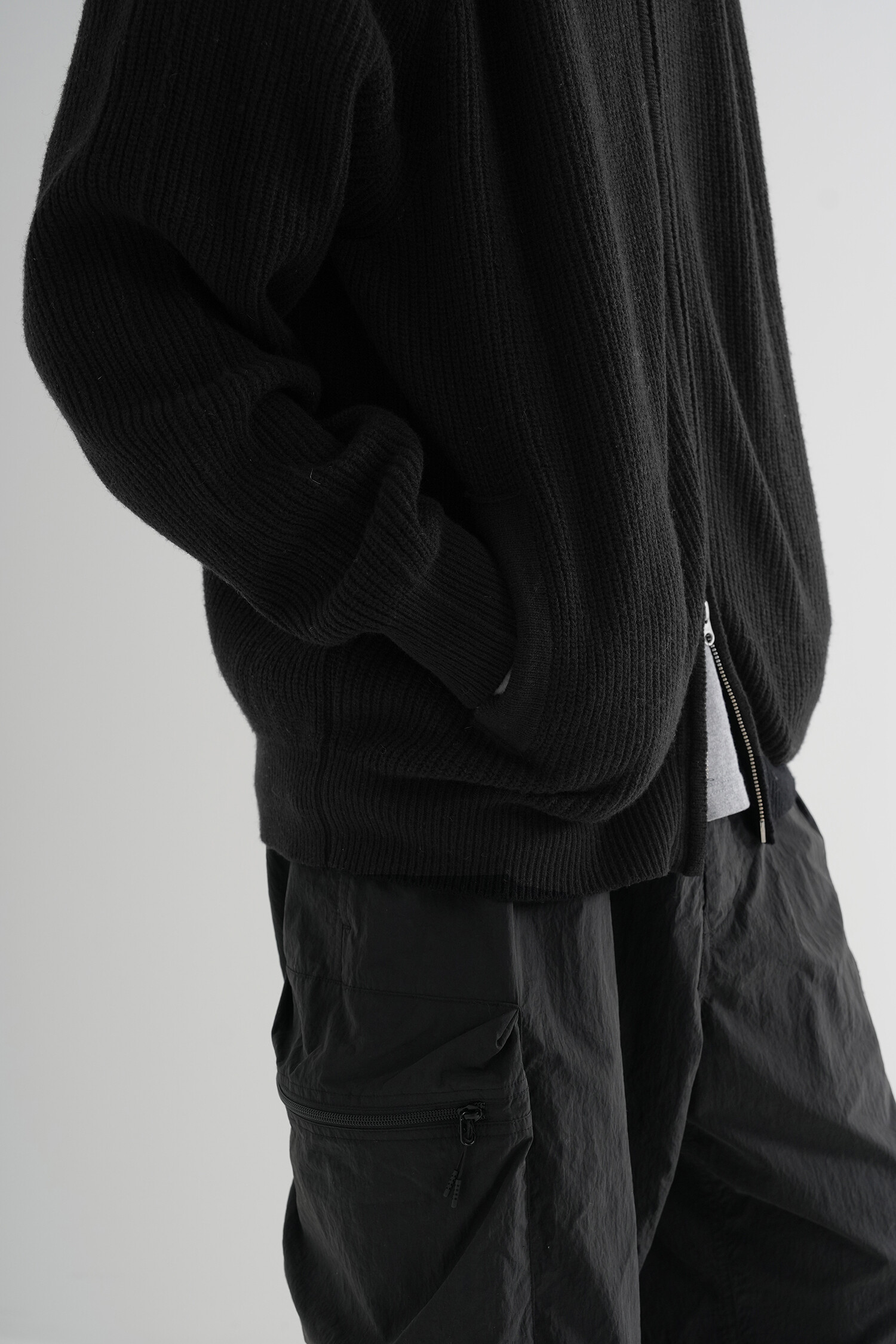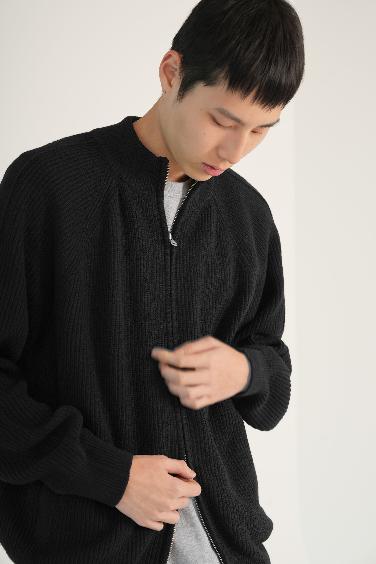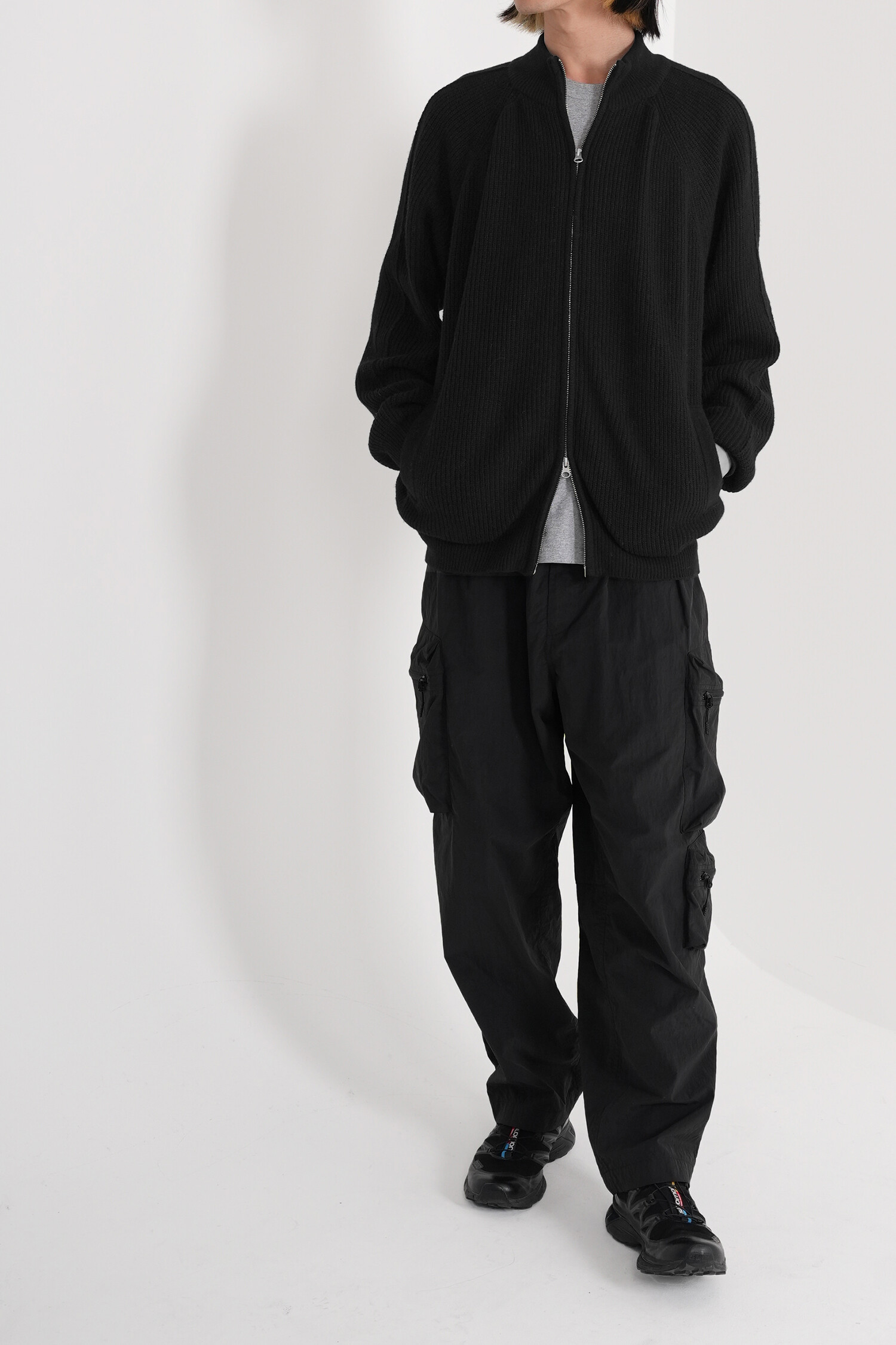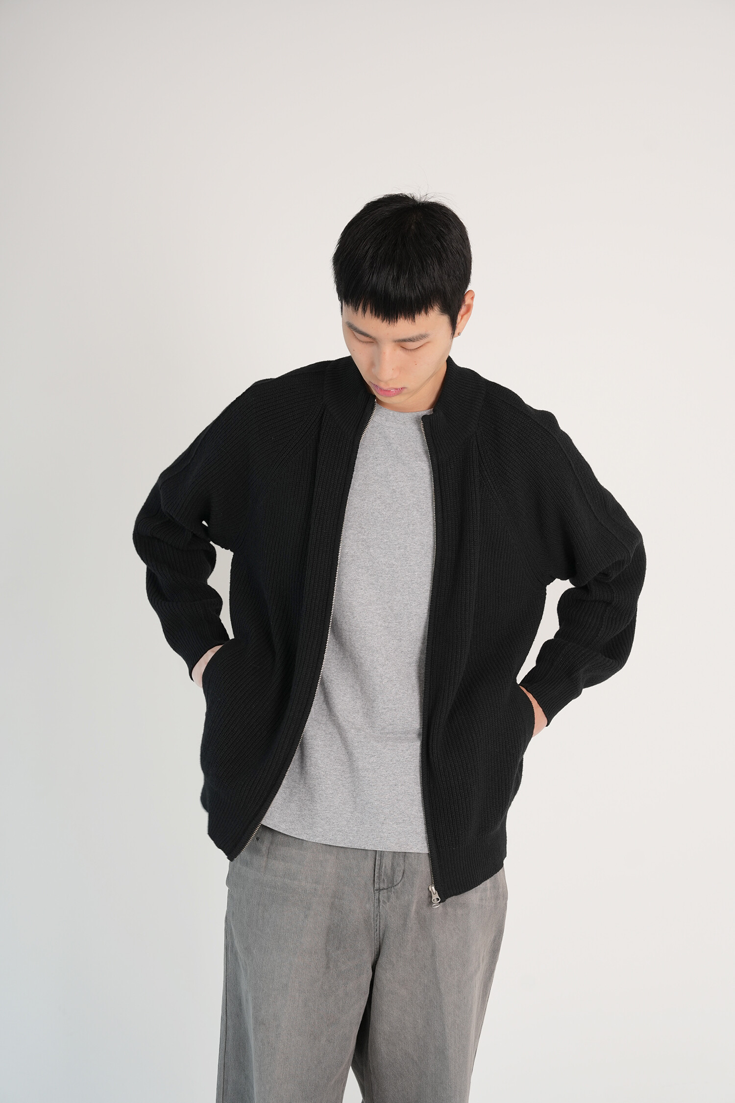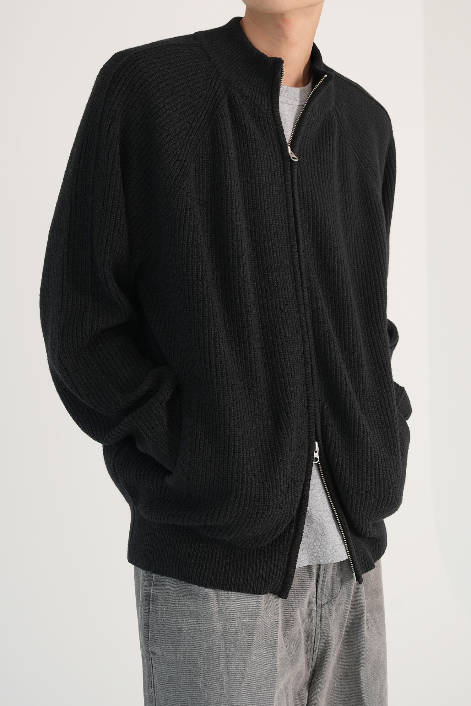 LINE MOCK NECK 2WAY KNIT ZIP-UP (Black)