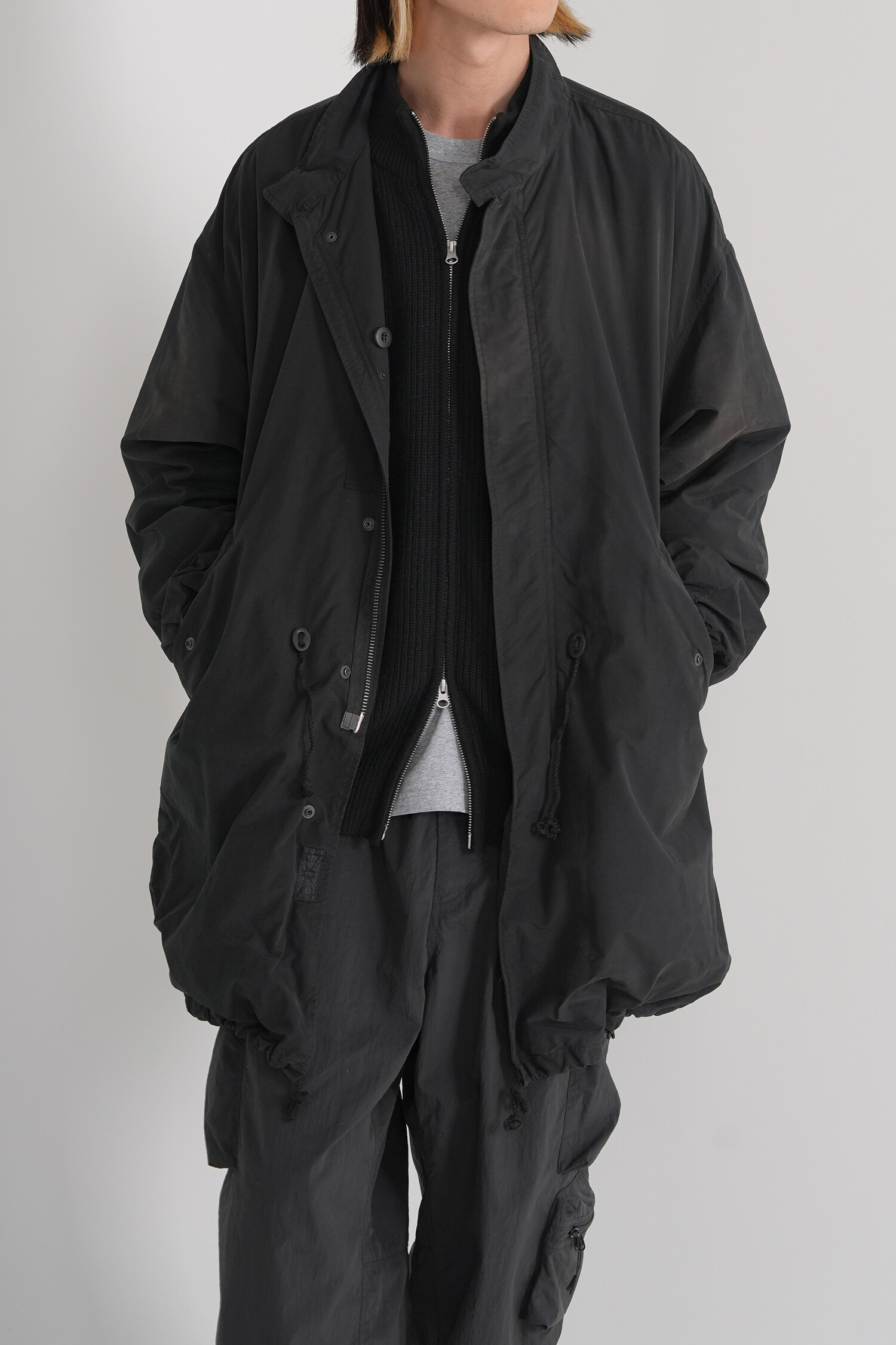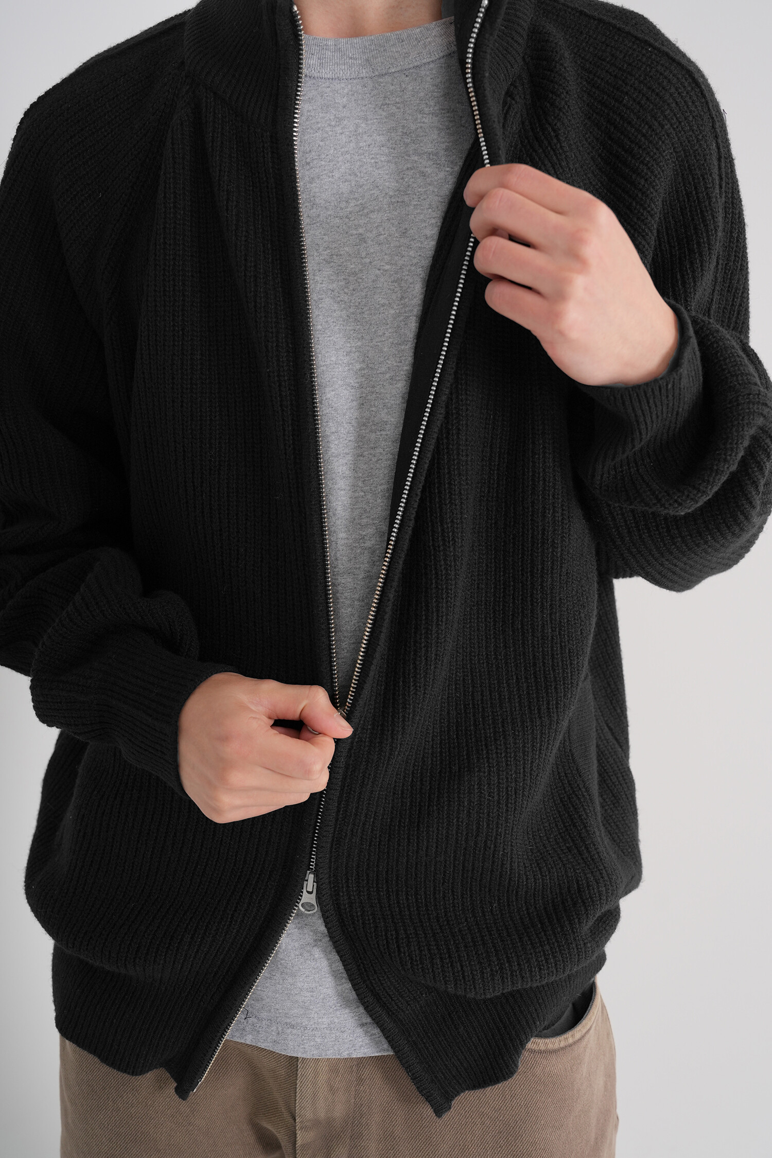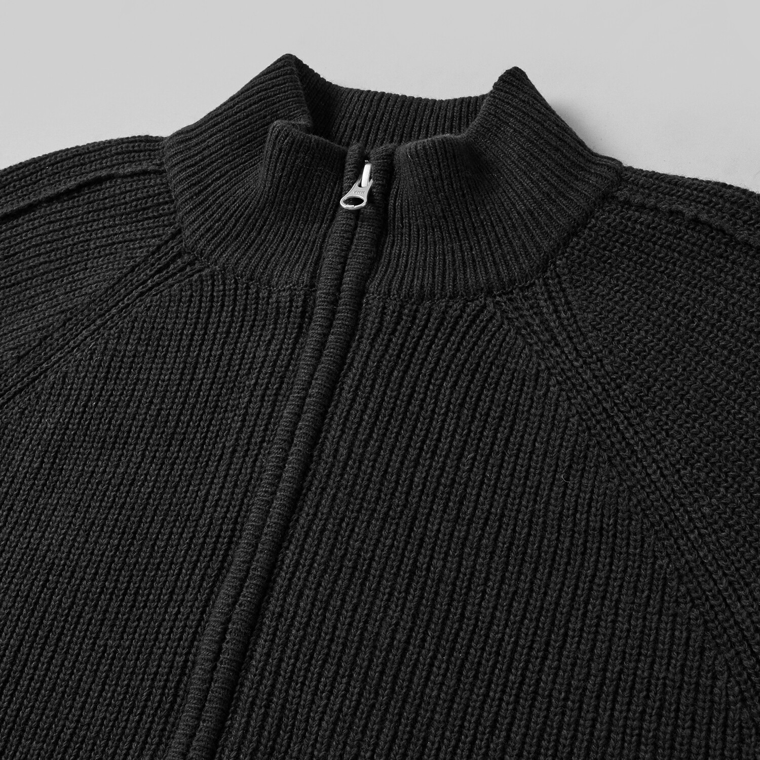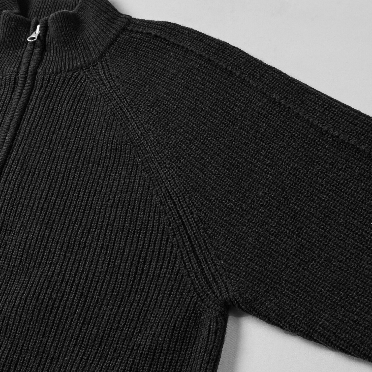 LINE MOCK NECK 2WAY KNIT ZIP-UP (Black)