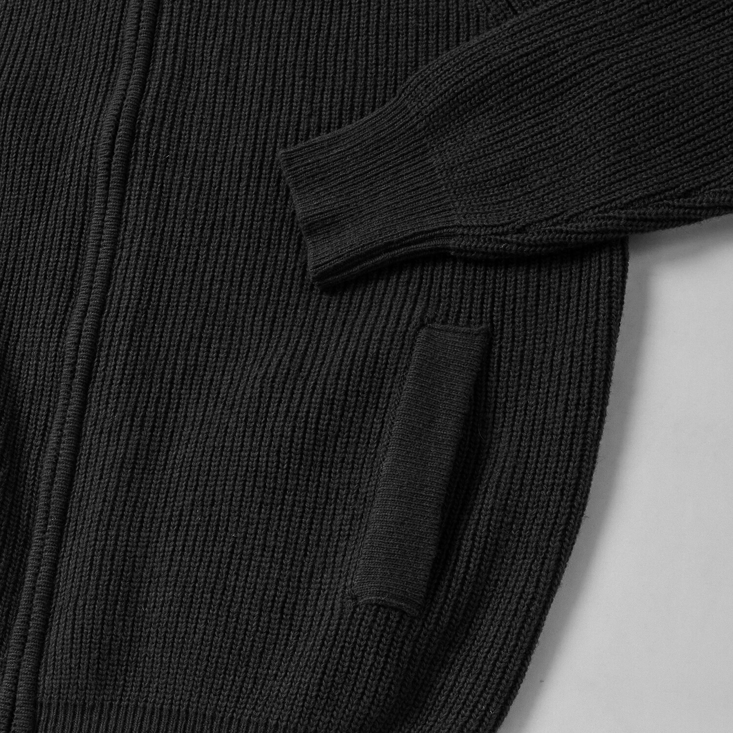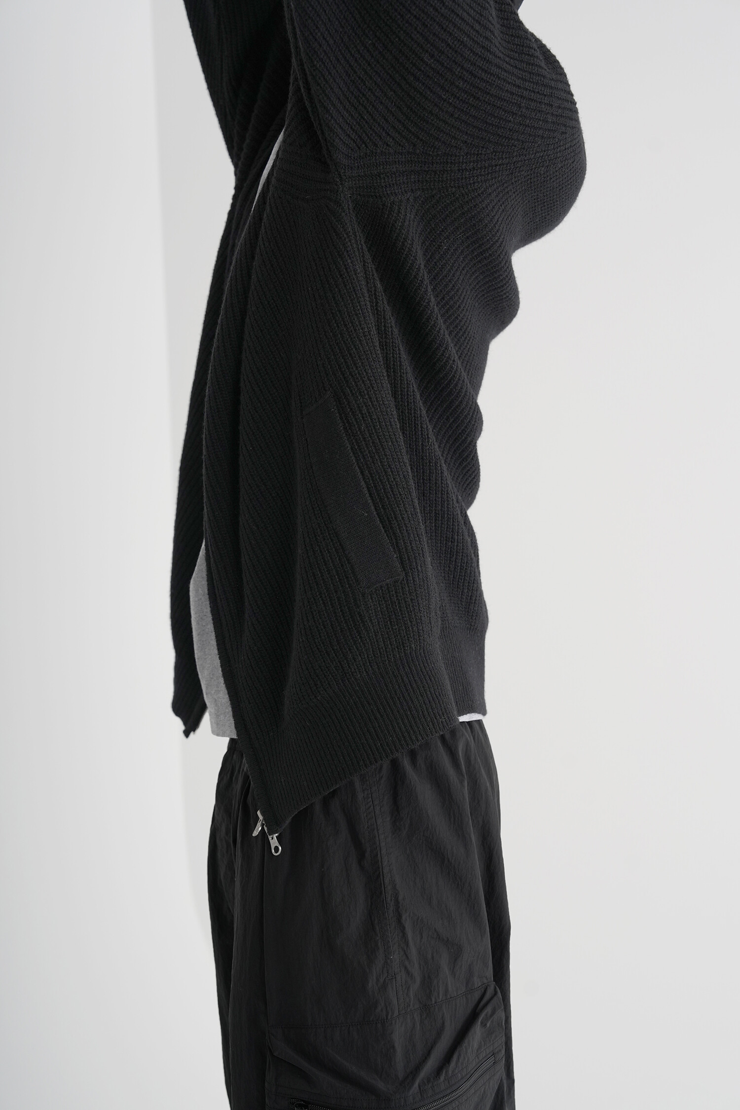 -주머니의 입구 및 입술감은 싱글 조직 등 디테일별로 편직방법을 다르게 하여 디자인적 밀도를 높임