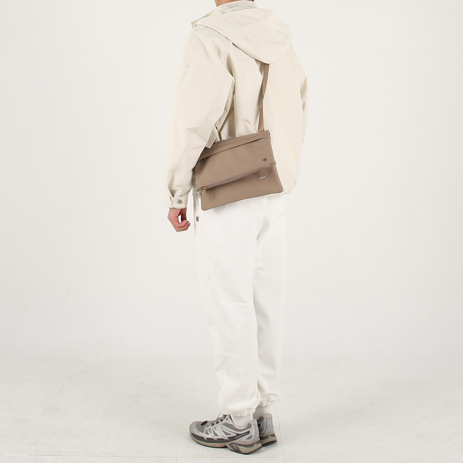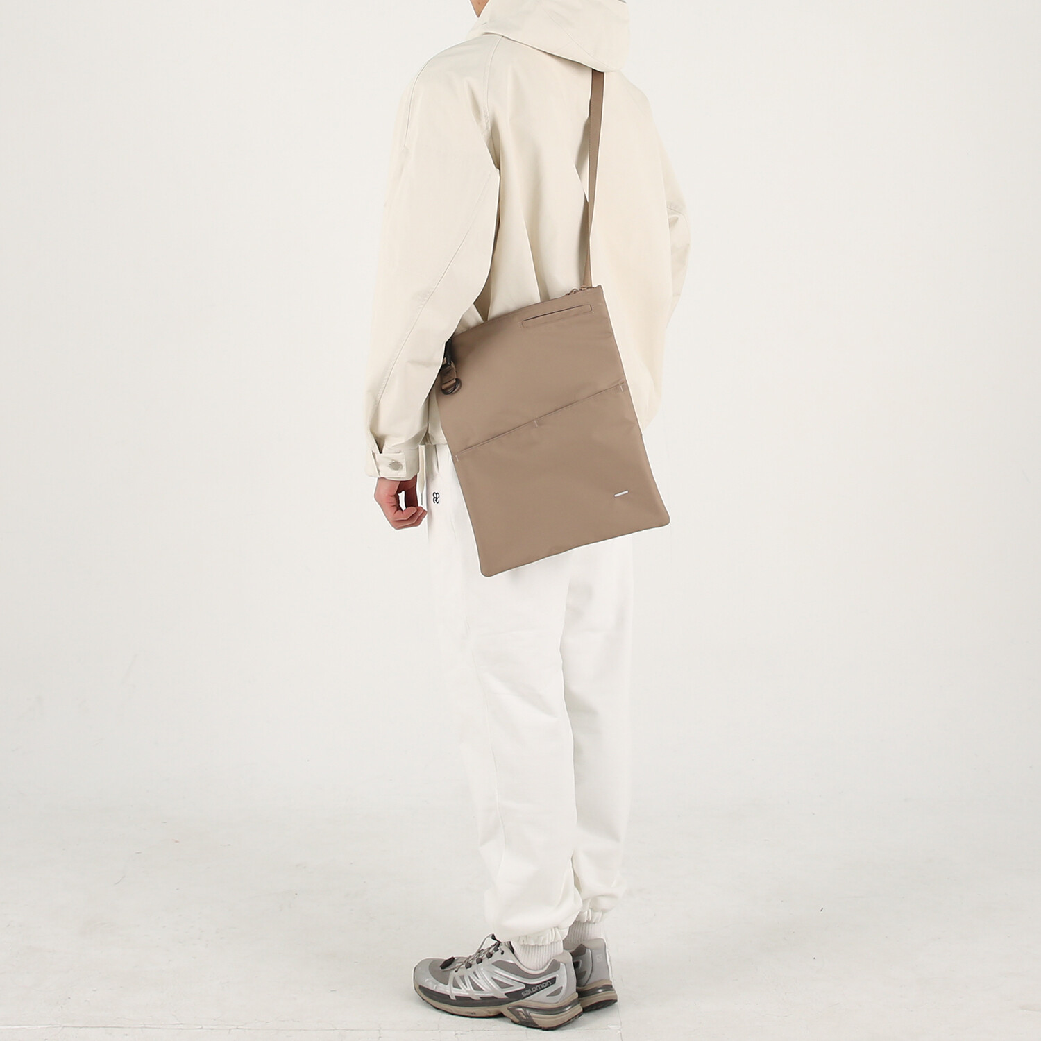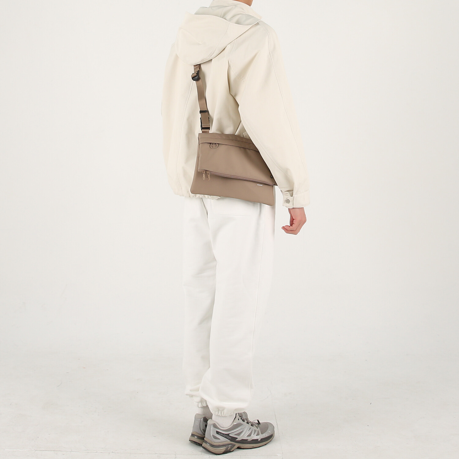 "FOLDABLE FLAT BAG"은 월스와일 무브먼트 프로젝트 3의 10번째 제품이자 LLUD 와의 협업 제품입니다. 이름에서 알 수 있듯이 납작한 형태의 크로스백인 "폴더블 플랫 백"의 가장 큰 특징은 YKK®의 스냅버튼과 앞,뒤에 위치한 Woojin plastic 챔피온 버클등을 이용한 폴더블 시스템을 갖고 있다는 것인데요. 이를 통해 2-Type 으로 연출이 가능하고 웨빙 여분을 이용한 디테일의 변화를 줄 수 있습니다.
