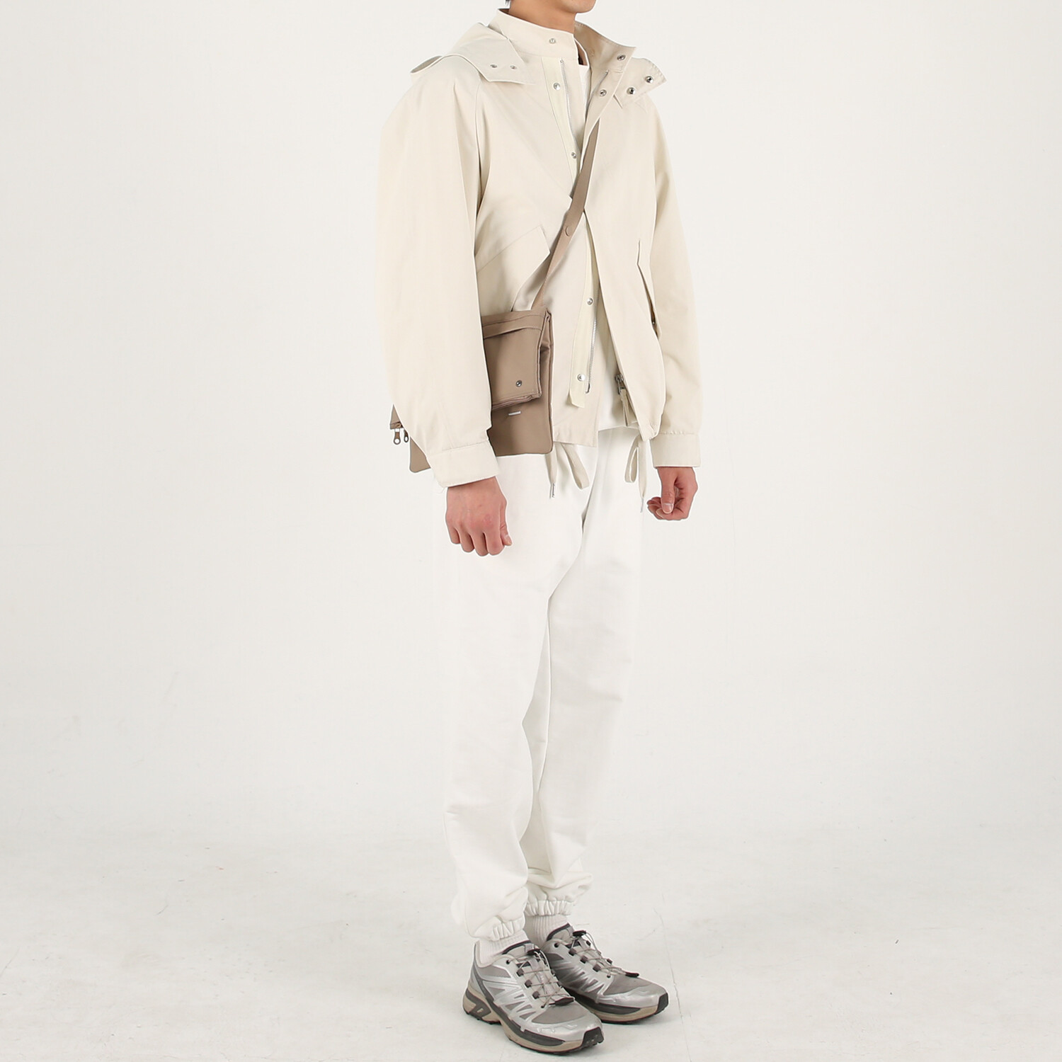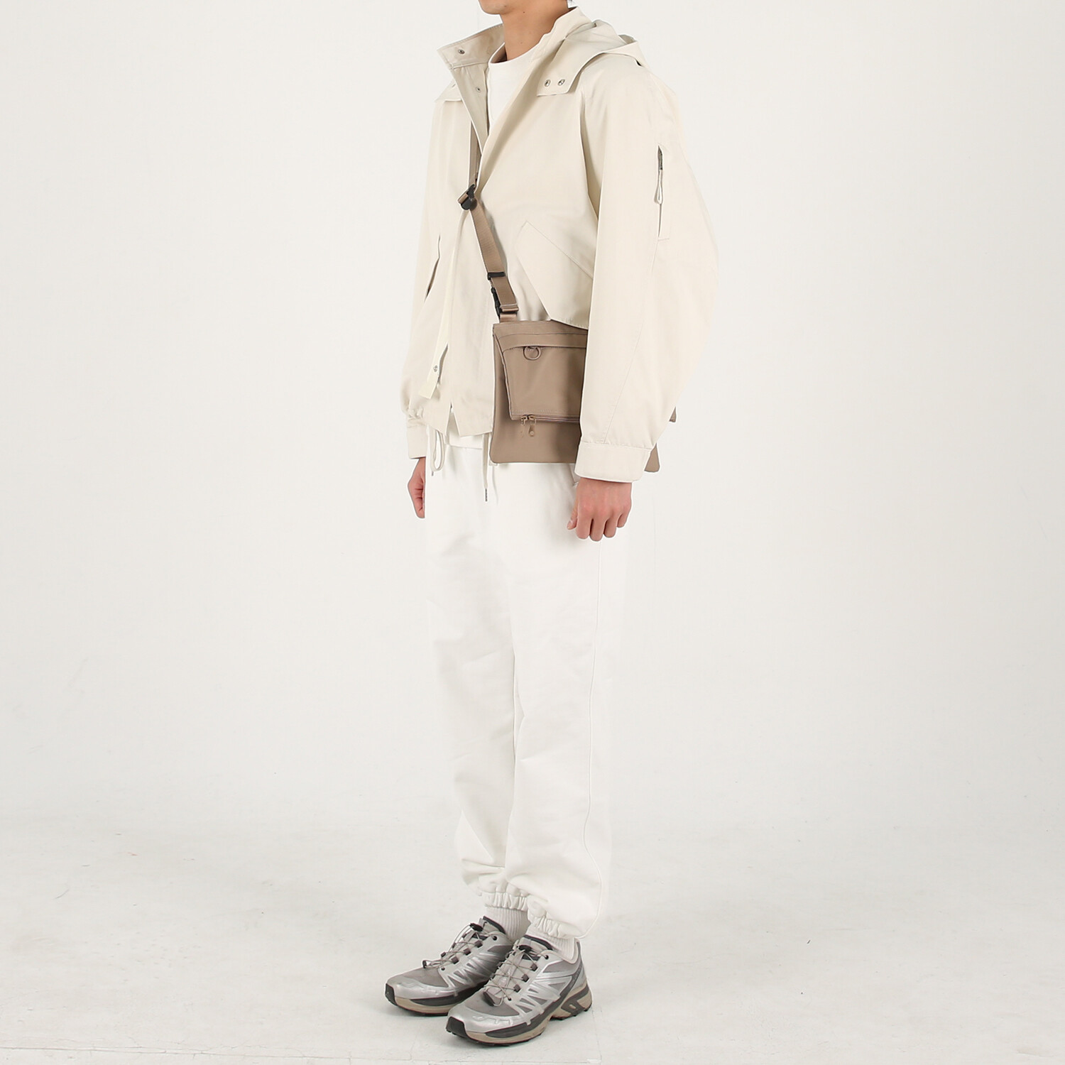 생활발수가 가능한 매트한 느낌의 나일론 트윌 원단에 인터록 가공을 더했고, 고품질의 부자재들을 더해 제작했습니다.