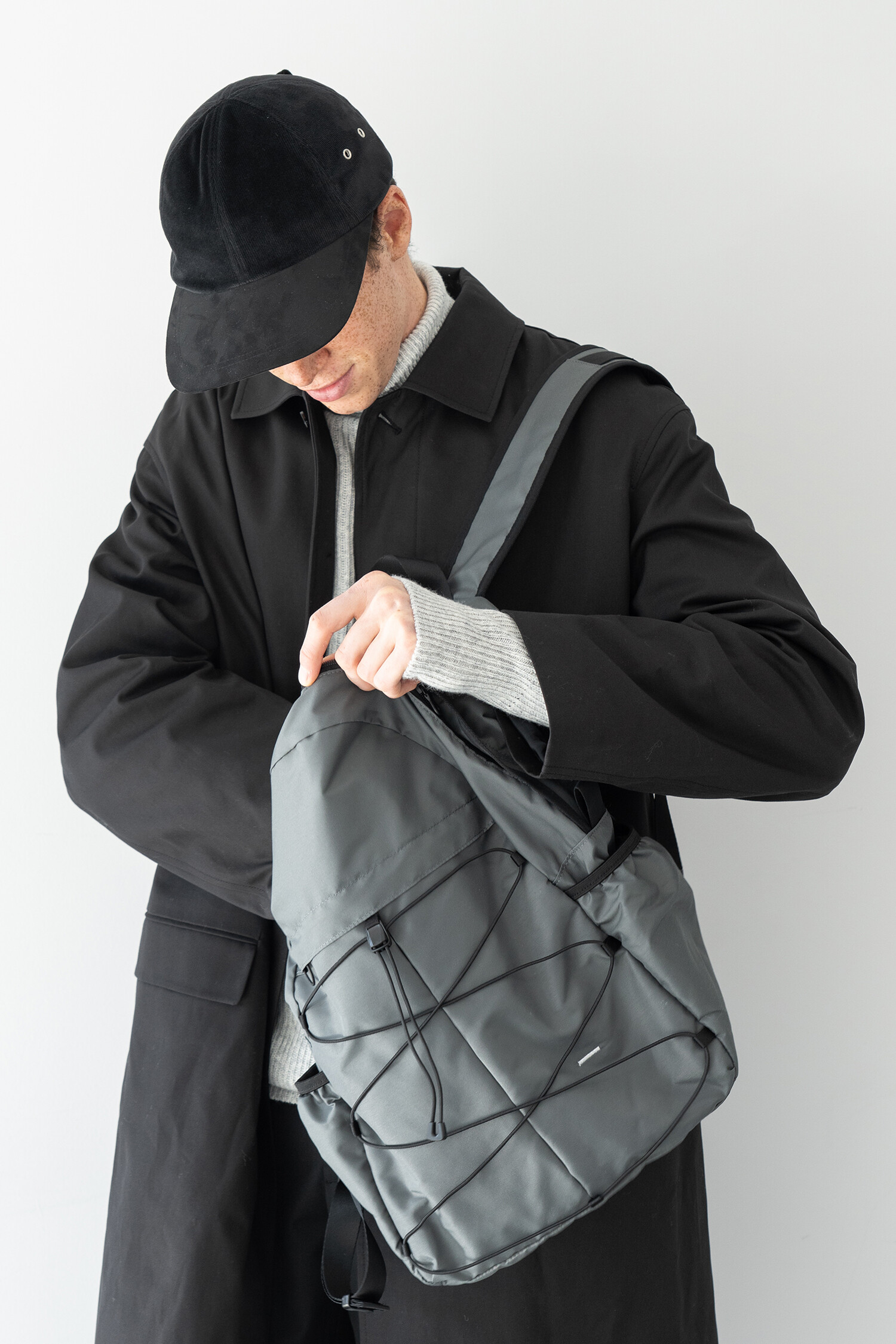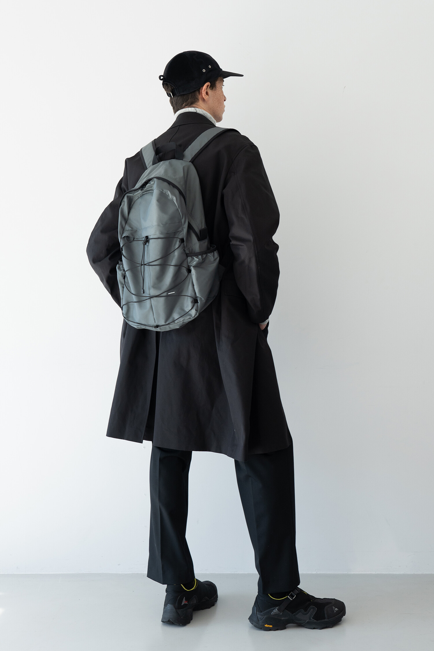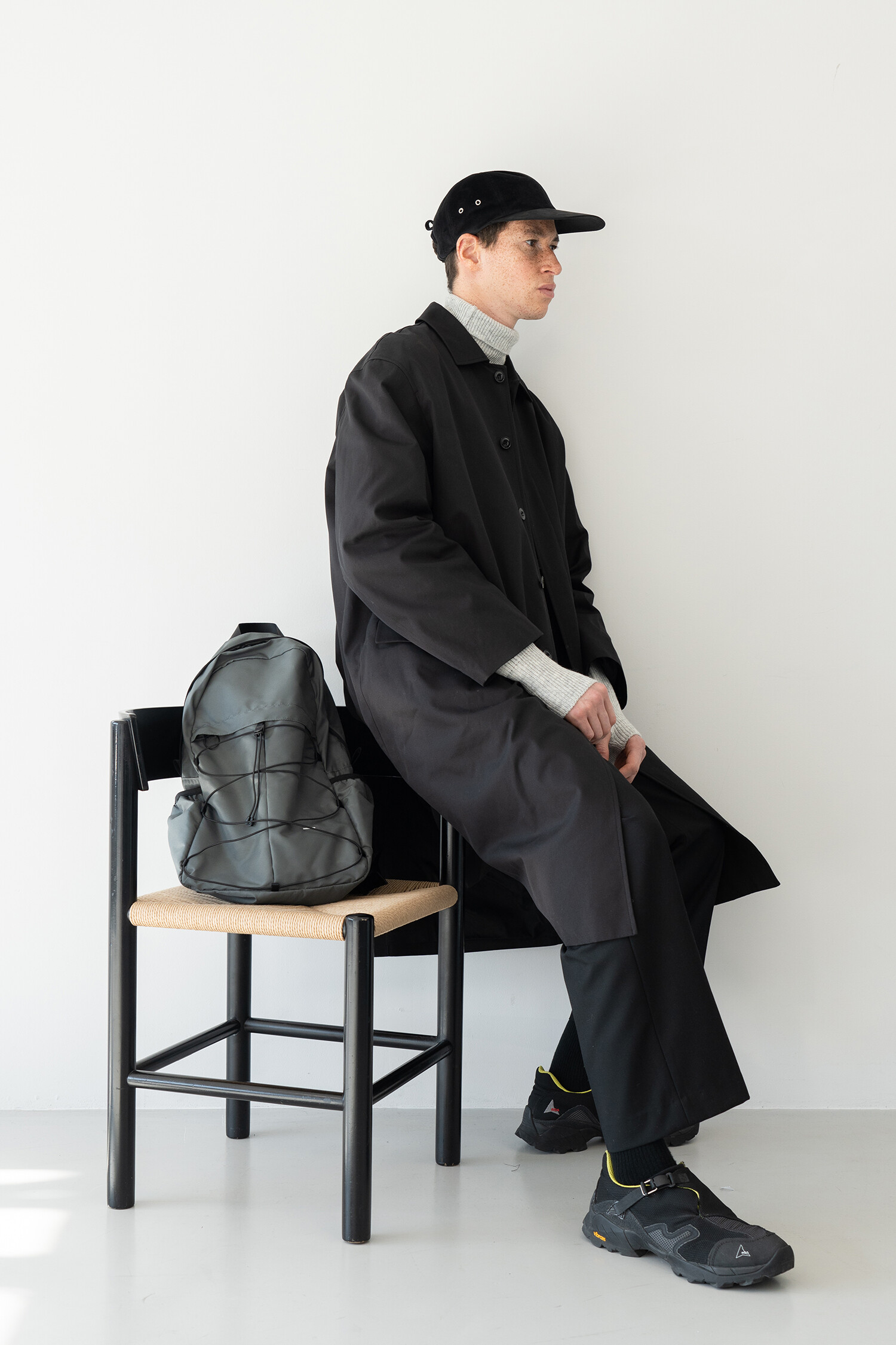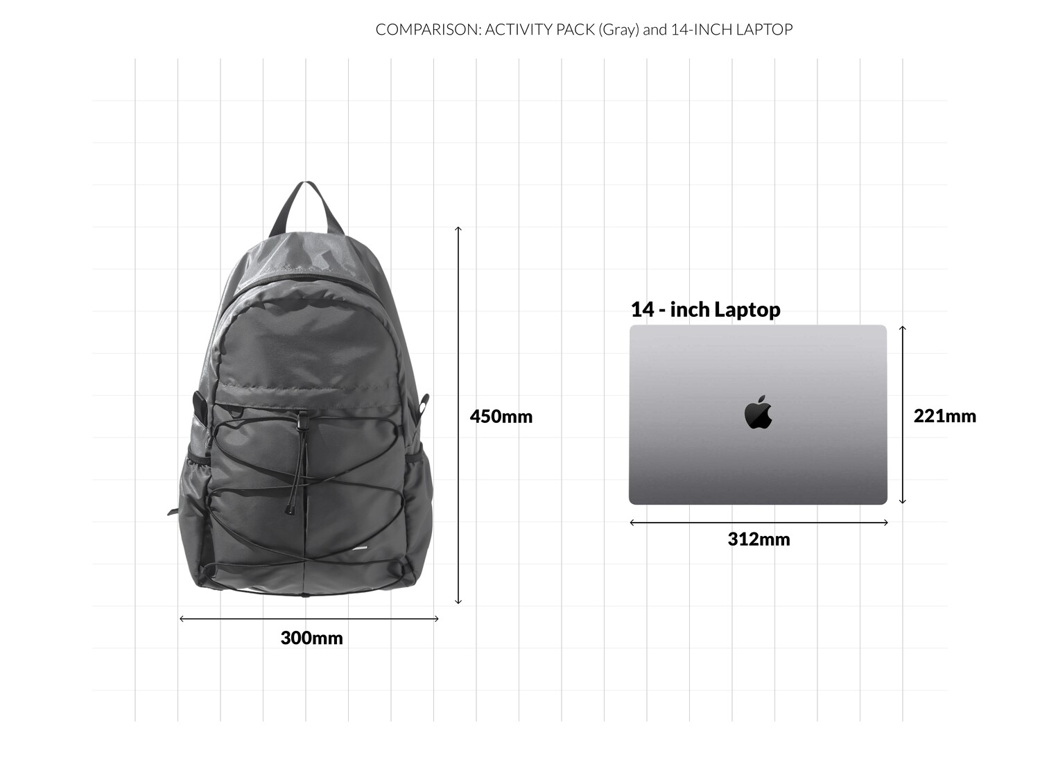 '액티비티 팩'은 산책과 같은 일상생활 뿐 아니라 가벼운 등산이나 트래킹과 같은 활동적인 상황에서도 사용하기 좋은 백팩입니다. 등판과 포켓 부분을 제외하고 안감 및 보강재 없이 홑겹의 원단으로 제작하여 가볍고 유연한 것이 특징입니다. 외부에는 E-스트링과 스토퍼 그리고 플리츠가 잡힌 수납공간이 있으며 양 측면에는 물병 등을 보관할 수 있는 포켓이 배치되어 있습니다. 뿐만 아니라 내부에도 총 3개의 이너 포켓을 배치하여 크고 작은 다양한 소지품들을 효율적으로 수납할 수 있습니다. 스트랩의 안쪽에는 에어메쉬를 배치하여 어깨에서 쉽게 미끄러지지 않고 보다 더 안정적인 쿠셔닝을 느끼실 수 있습니다. 체스트 웨빙과 버클은 E-밴드를 통해 스트랩에서 탈부착이 가능합니다. 메인 스트랩의 길이는 캠버클을 통해 쉽게 조정 가능하고 단단하게 고정해줍니다. YKK사의 지퍼와 슬라이더 그리고 우진 플라스틱의 파츠를 사용했습니다.