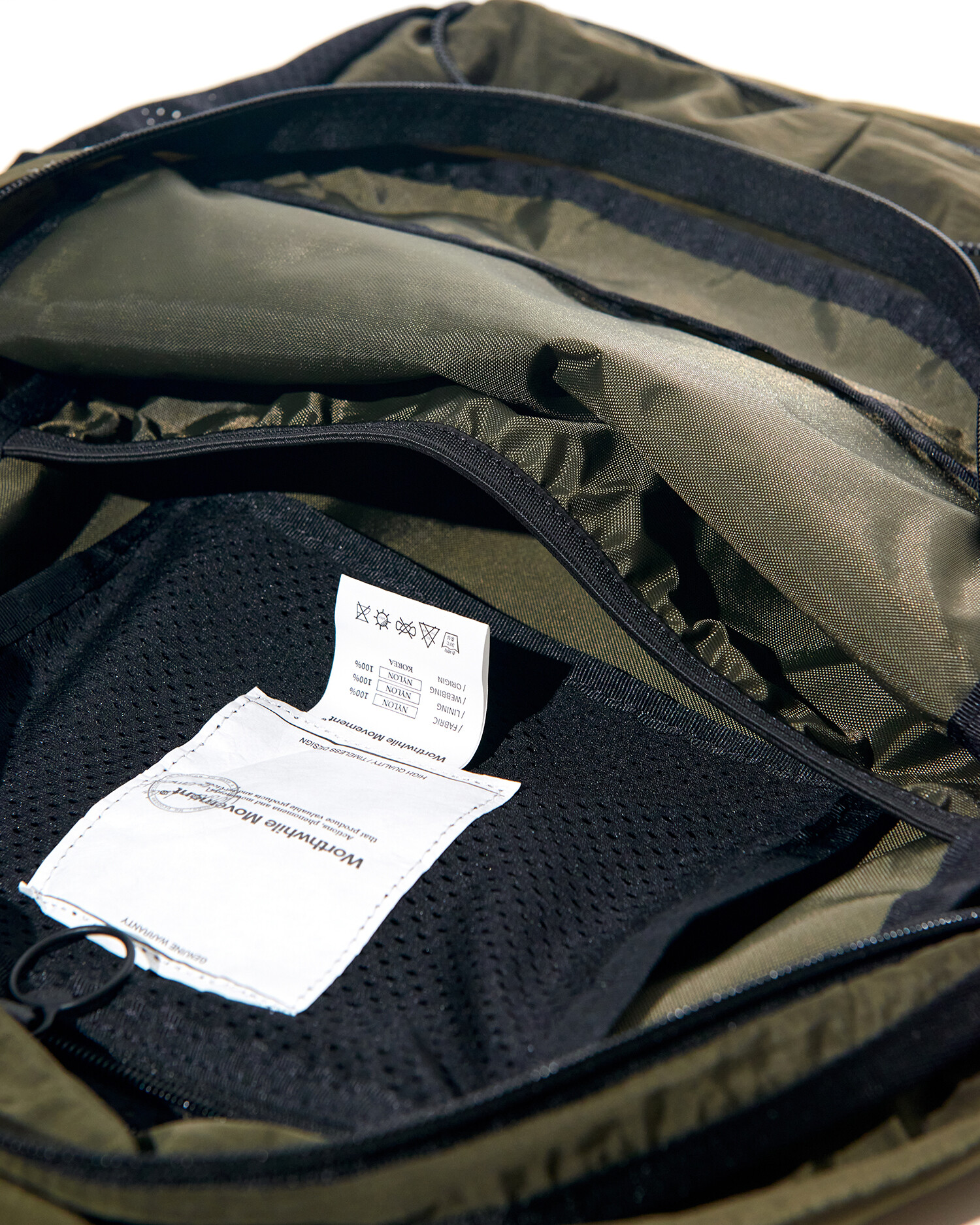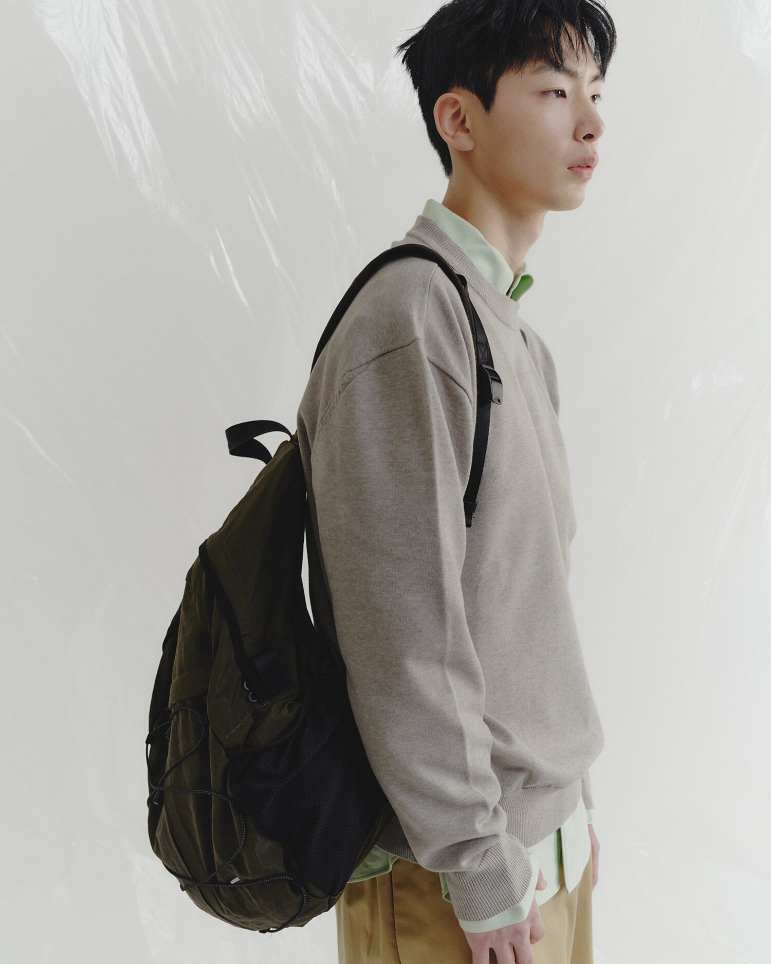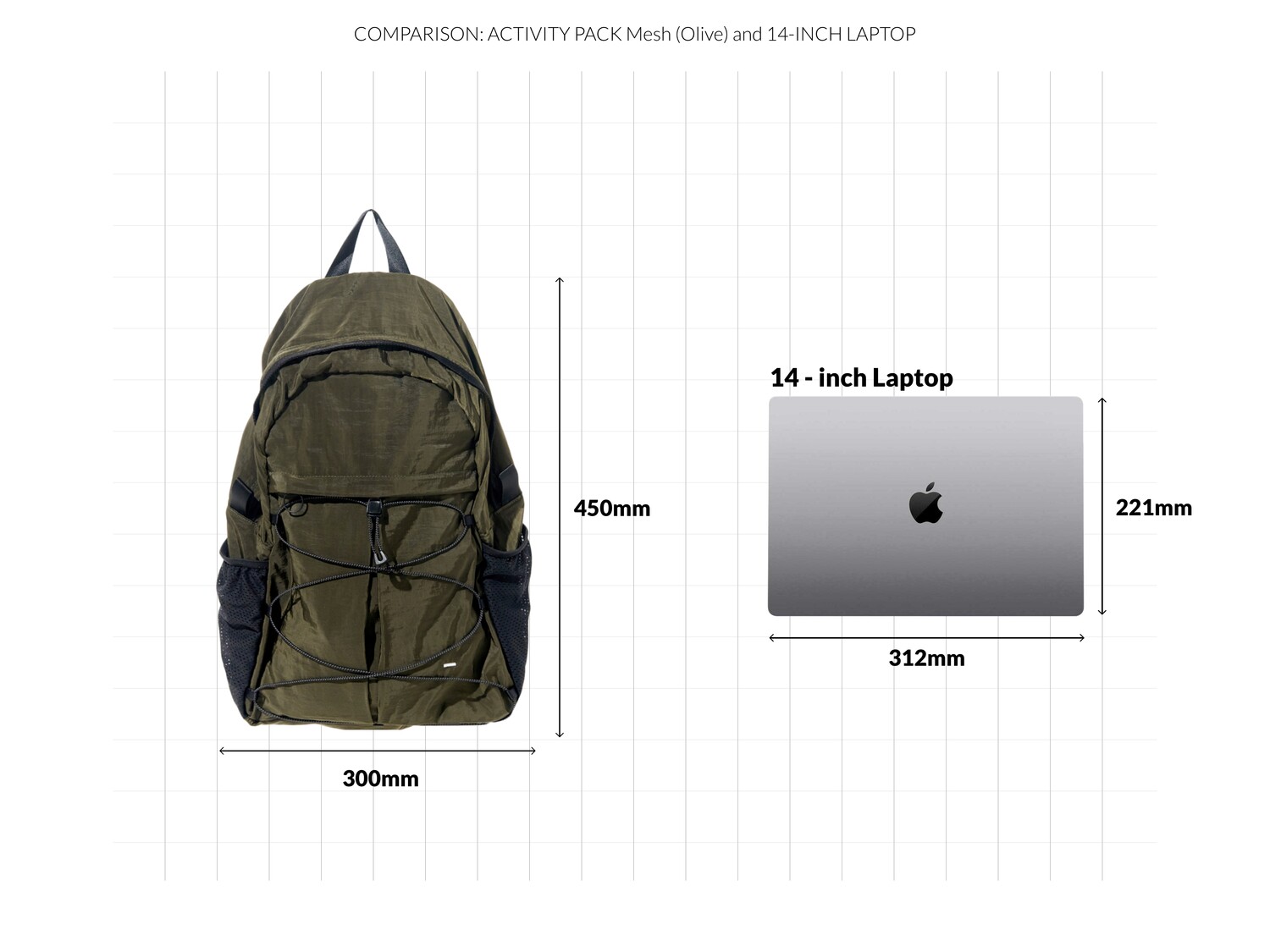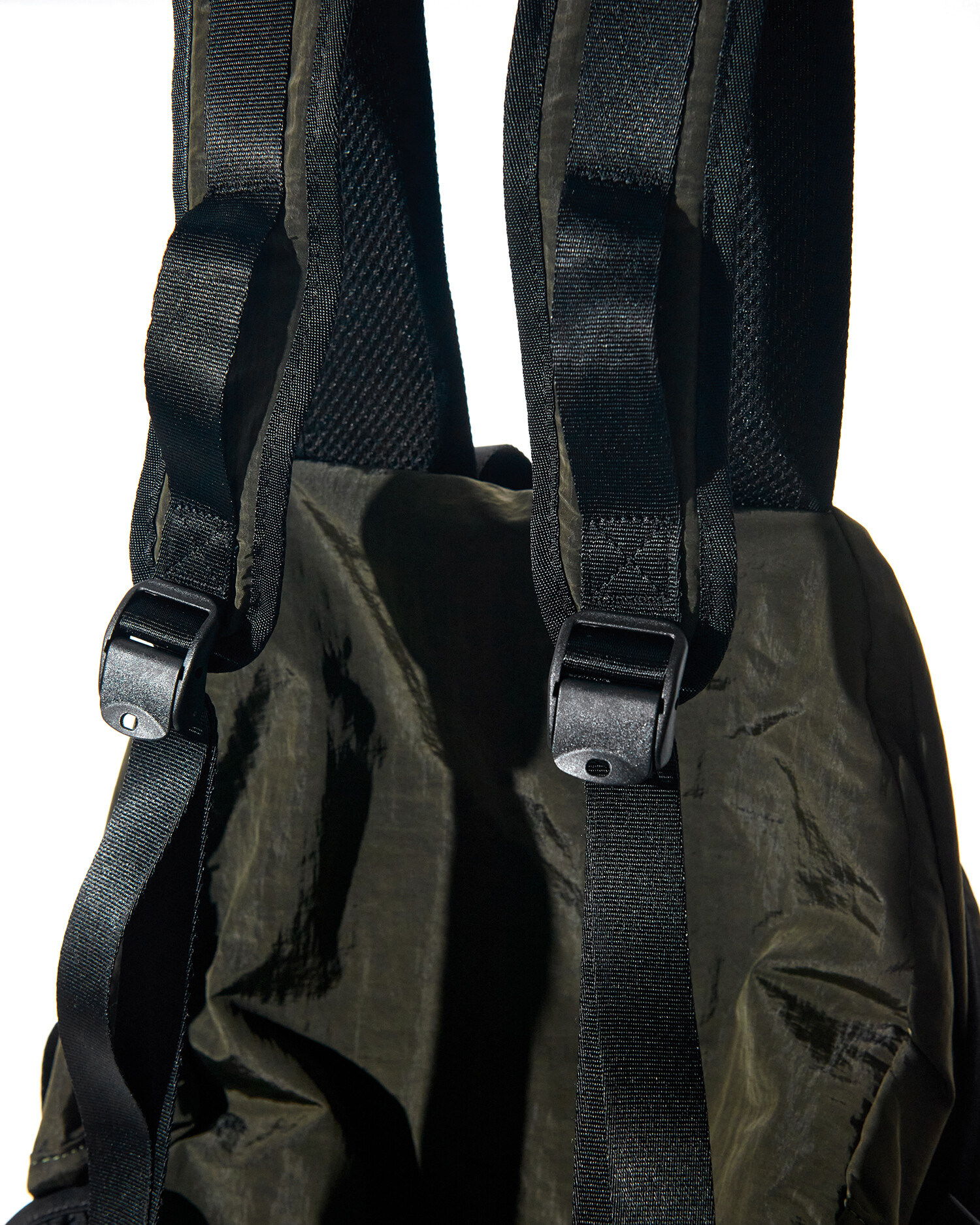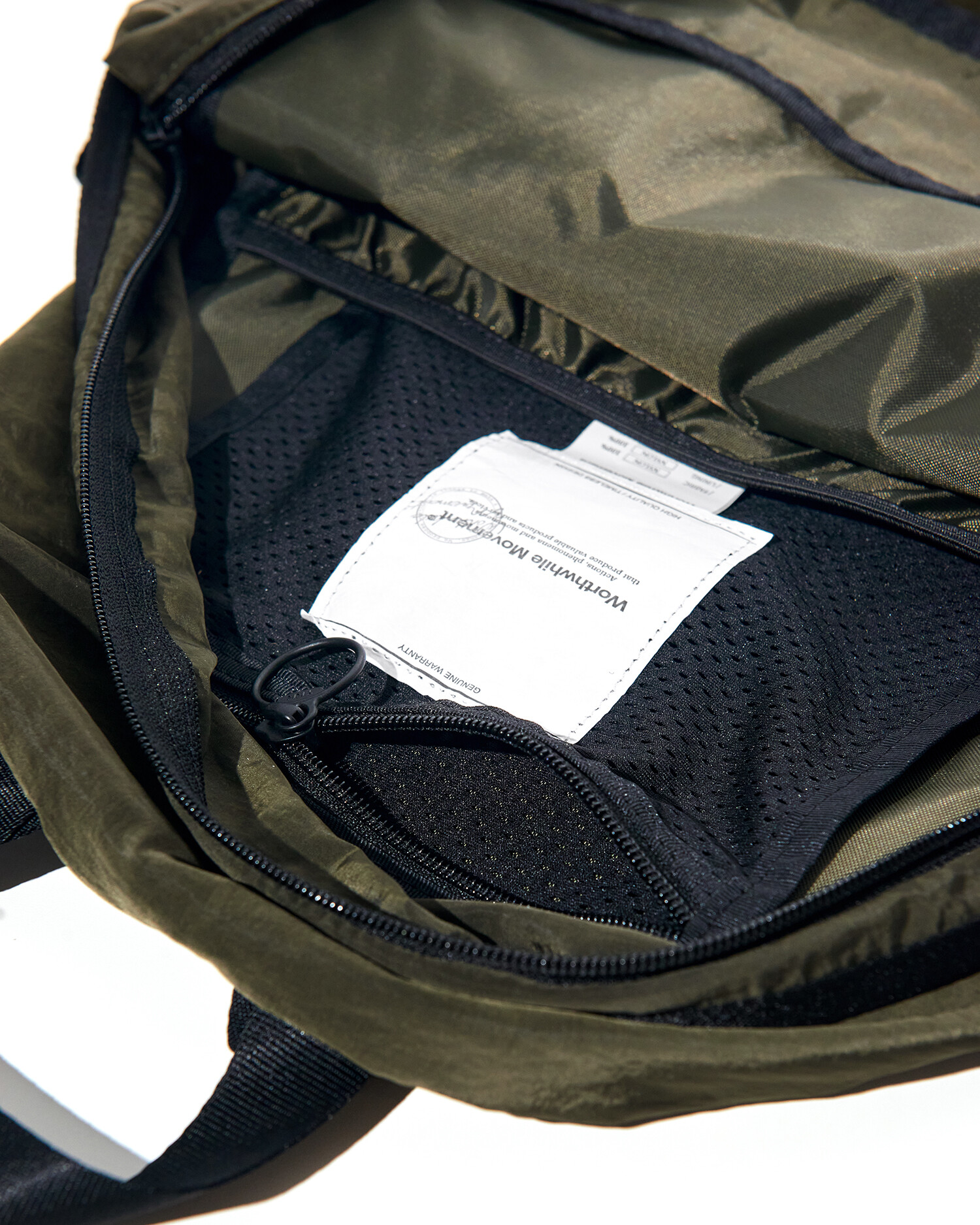 '액티비티 팩'의 메쉬 버전으로 출시된 가방입니다. 기존 제품과 다르게 양 측면 포켓과 내부 메인 포켓이 메쉬 원단으로 변경되었습니다. 각이 잡혀 있지 않고 의도적으로 흘러내리는 듯한 실루엣을 연출한 가방입니다. 등판과 포켓 부분을 제외하고 안감 및 보강재 없이 홑겹의 원단으로 제작하여 가볍고 유연한 것이 특징입니다. 가볍고 유연한 가방의 몸판 소재에 맞게 메쉬 원단 역시 부드러우며 밀도가 있는 원단을 사용했습니다. 특히 올리브 컬러는 친환경 광택 코팅 가공을 통해 은은하고 고급스러운 광택감이 느껴지며 생활 발수가 가능합니다. 이번 메쉬 버전에서는 전면부에 위치한 플리츠 분량도 조절하여 포켓을 보다 더 여유롭게 사용할 수 있도록 하였고, 잠시 벗어둔 아우터나 카라비너와 같은 악세서리 등을 걸어둘 수 있는 스트링 소재도 변경됐습니다. 일반적인 E-스트링이 아닌 재귀반사 소재의 3M 스카치 스트링을 사용하여 기능적, 디자인적으로도 퀄리티가 우수한 제품입니다.