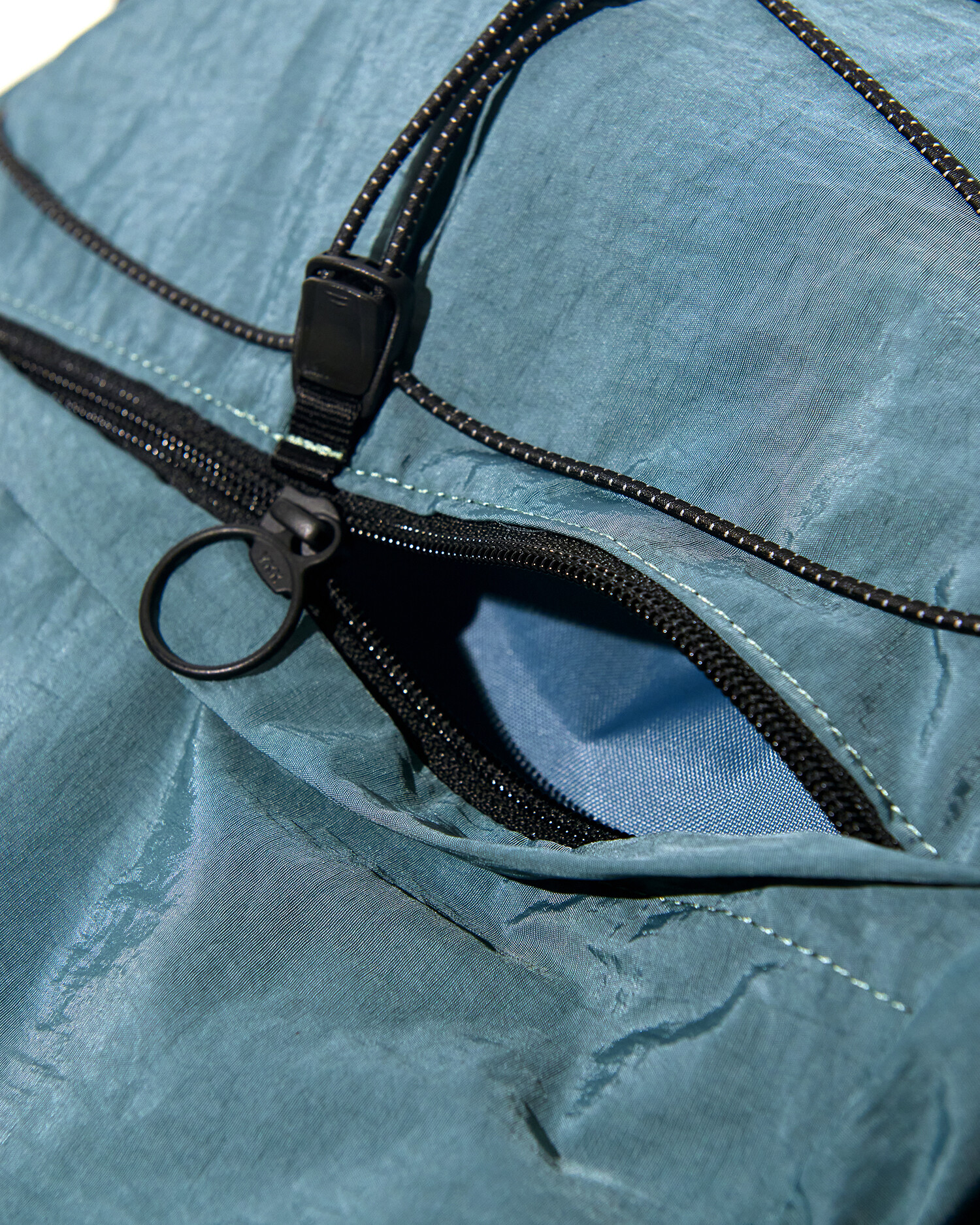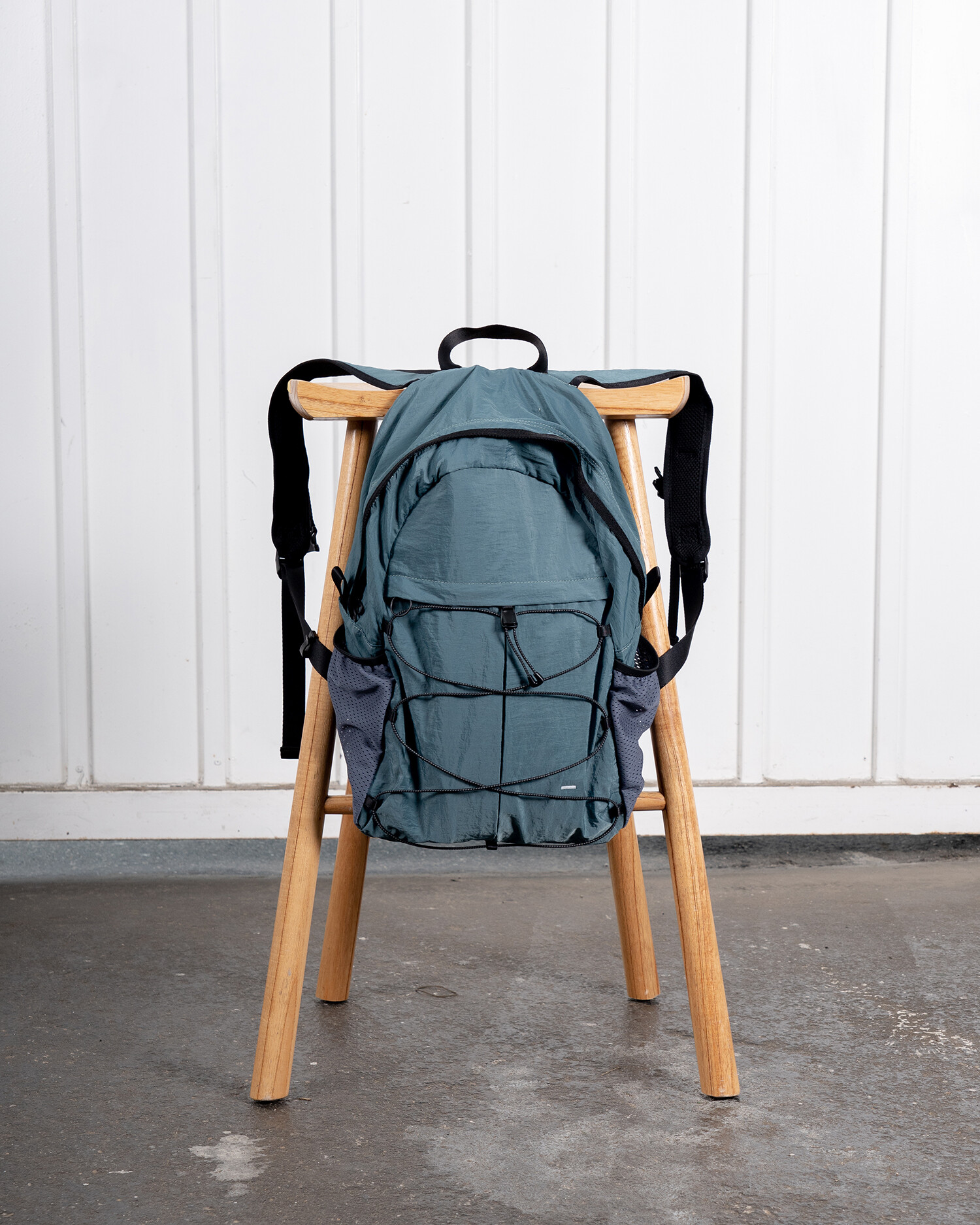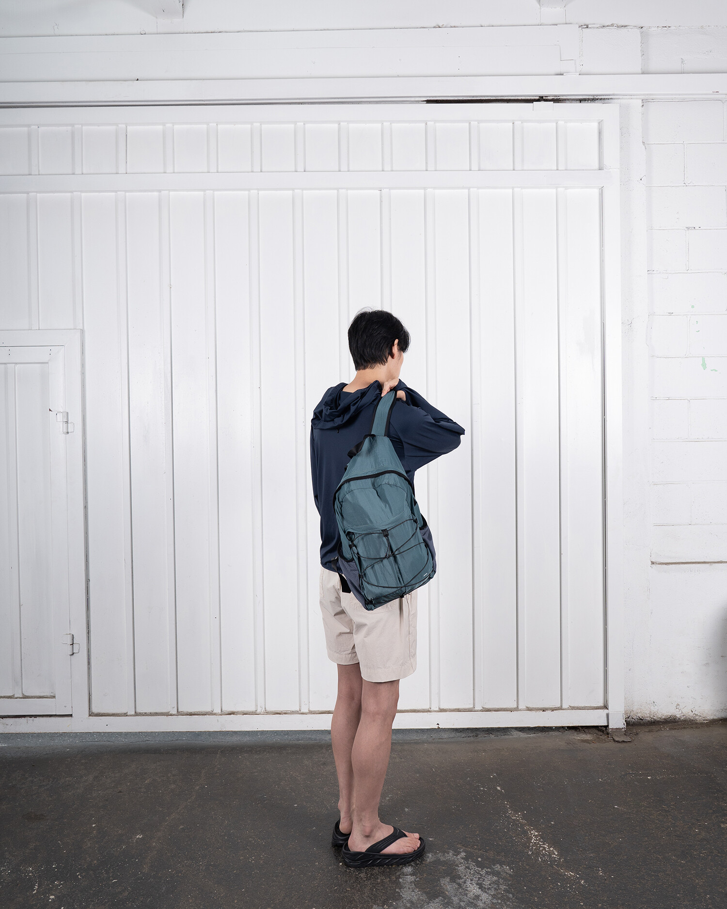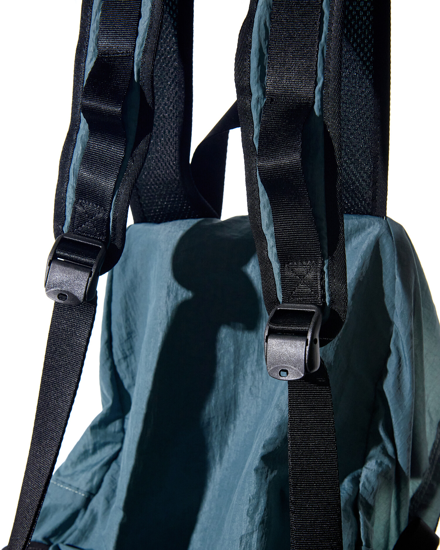 '액티비티 팩'의 메쉬 버전으로 출시된 가방입니다. 기존 제품과 다르게 양 측면 포켓과 내부 메인 포켓이 메쉬 원단으로 변경되었습니다. 각이 잡혀 있지 않고 의도적으로 흘러내리는 듯한 실루엣을 연출한 가방입니다. 등판과 포켓 부분을 제외하고 안감 및 보강재 없이 홑겹의 원단으로 제작하여 가볍고 유연한 것이 특징입니다. 가볍고 유연한 가방의 몸판 소재에 맞게 메쉬 원단 역시 부드러우며 밀도가 있는 원단을 사용했습니다. 오션 컬러는 에어 와샤 코팅을 통해 바스락 거리는 질감과 주름감이 특징입니다. 이번 메쉬 버전에서는 전면부에 위치한 플리츠 분량도 조절하여 포켓을 보다 더 여유롭게 사용할 수 있도록 하였고, 잠시 벗어둔 아우터나 카라비너와 같은 악세서리 등을 걸어둘 수 있는 스트링 소재도 변경됐습니다. 일반적인 E-스트링이 아닌 재귀반사 소재의 3M 스카치 스트링을 사용하여 기능적, 디자인적으로도 퀄리티가 우수한 제품입니다.