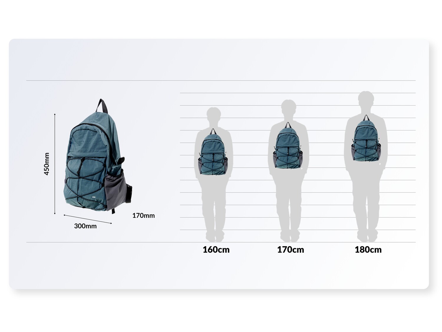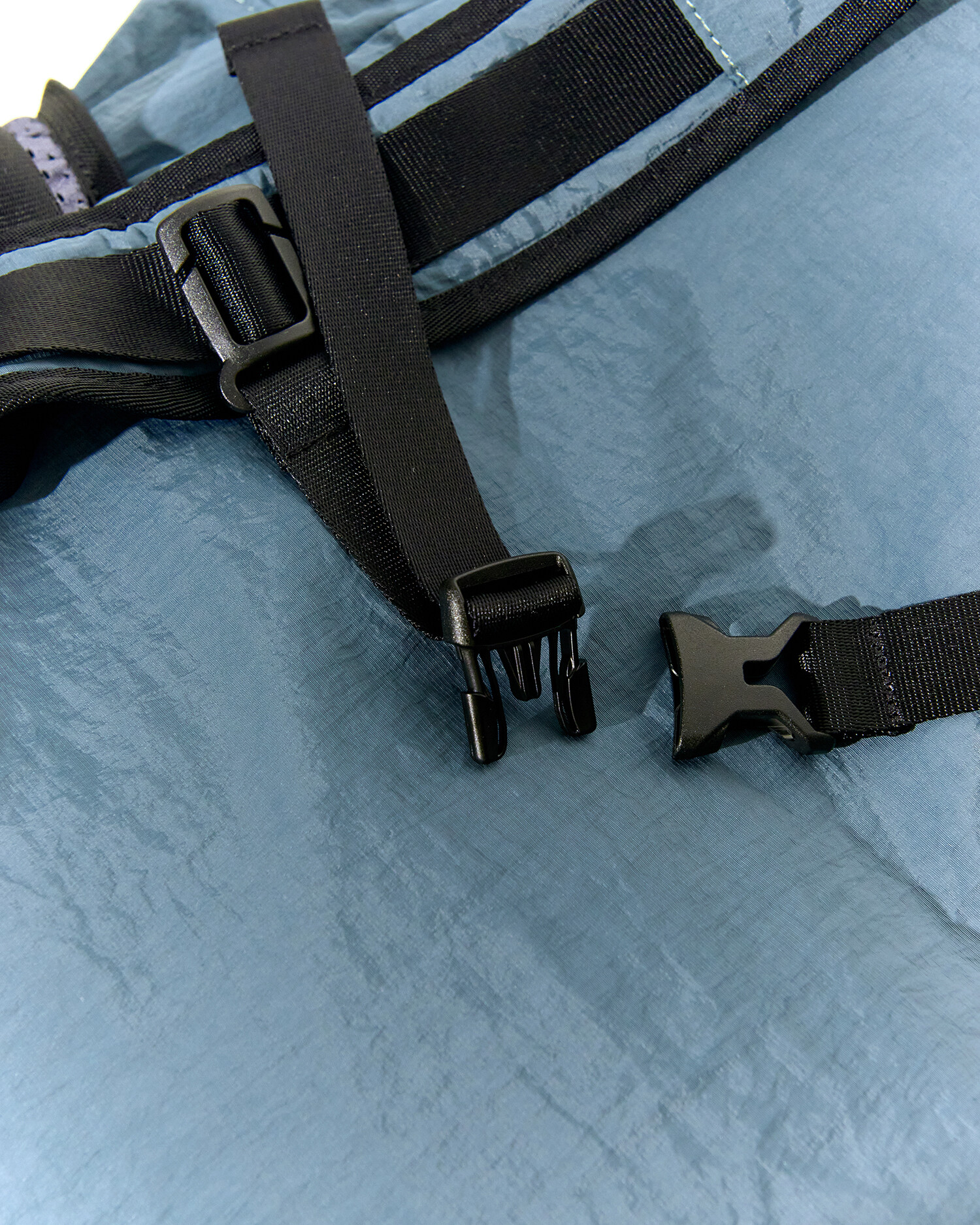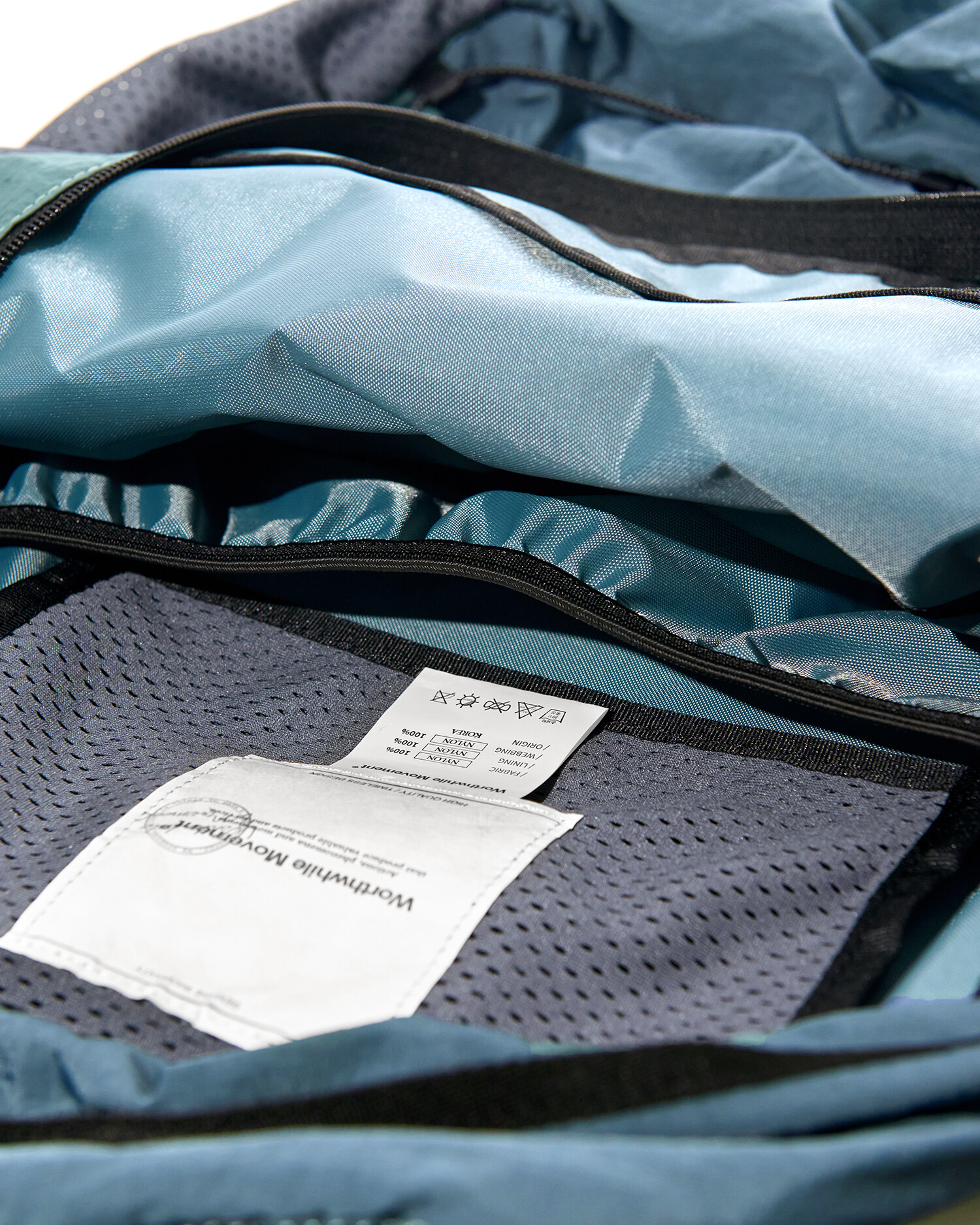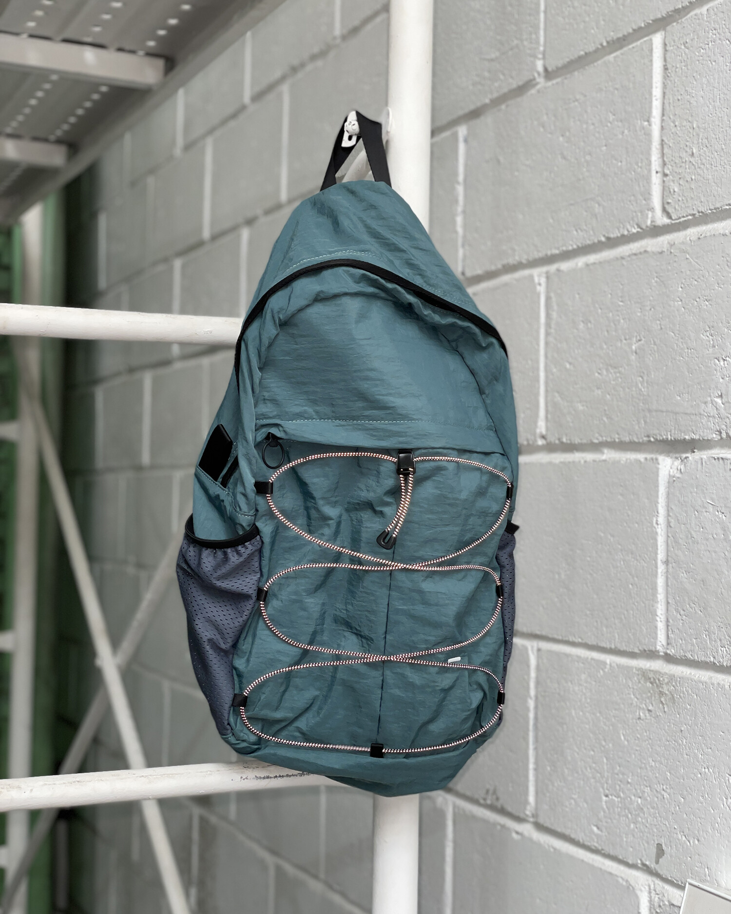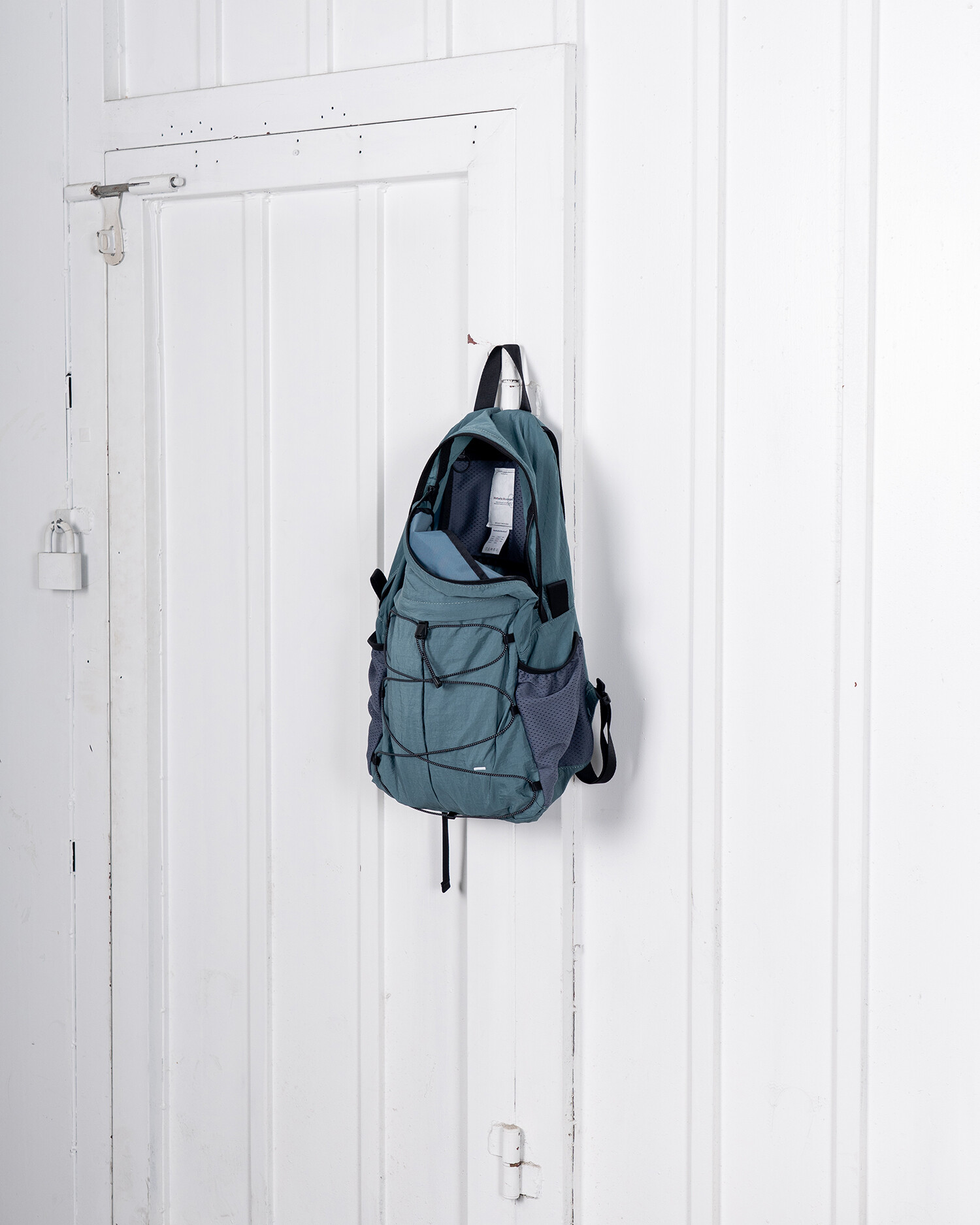 '액티비티 팩'의 메쉬 버전으로 출시된 가방입니다. 기존 제품과 다르게 양 측면 포켓과 내부 메인 포켓이 메쉬 원단으로 변경되었습니다. 각이 잡혀 있지 않고 의도적으로 흘러내리는 듯한 실루엣을 연출한 가방입니다. 등판과 포켓 부분을 제외하고 안감 및 보강재 없이 홑겹의 원단으로 제작하여 가볍고 유연한 것이 특징입니다. 가볍고 유연한 가방의 몸판 소재에 맞게 메쉬 원단 역시 부드러우며 밀도가 있는 원단을 사용했습니다. 오션 컬러는 에어 와샤 코팅을 통해 바스락 거리는 질감과 주름감이 특징입니다. 이번 메쉬 버전에서는 전면부에 위치한 플리츠 분량도 조절하여 포켓을 보다 더 여유롭게 사용할 수 있도록 하였고, 잠시 벗어둔 아우터나 카라비너와 같은 악세서리 등을 걸어둘 수 있는 스트링 소재도 변경됐습니다. 일반적인 E-스트링이 아닌 재귀반사 소재의 3M 스카치 스트링을 사용하여 기능적, 디자인적으로도 퀄리티가 우수한 제품입니다.