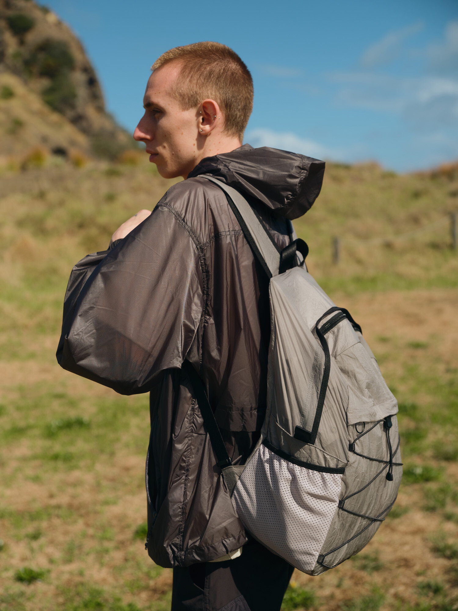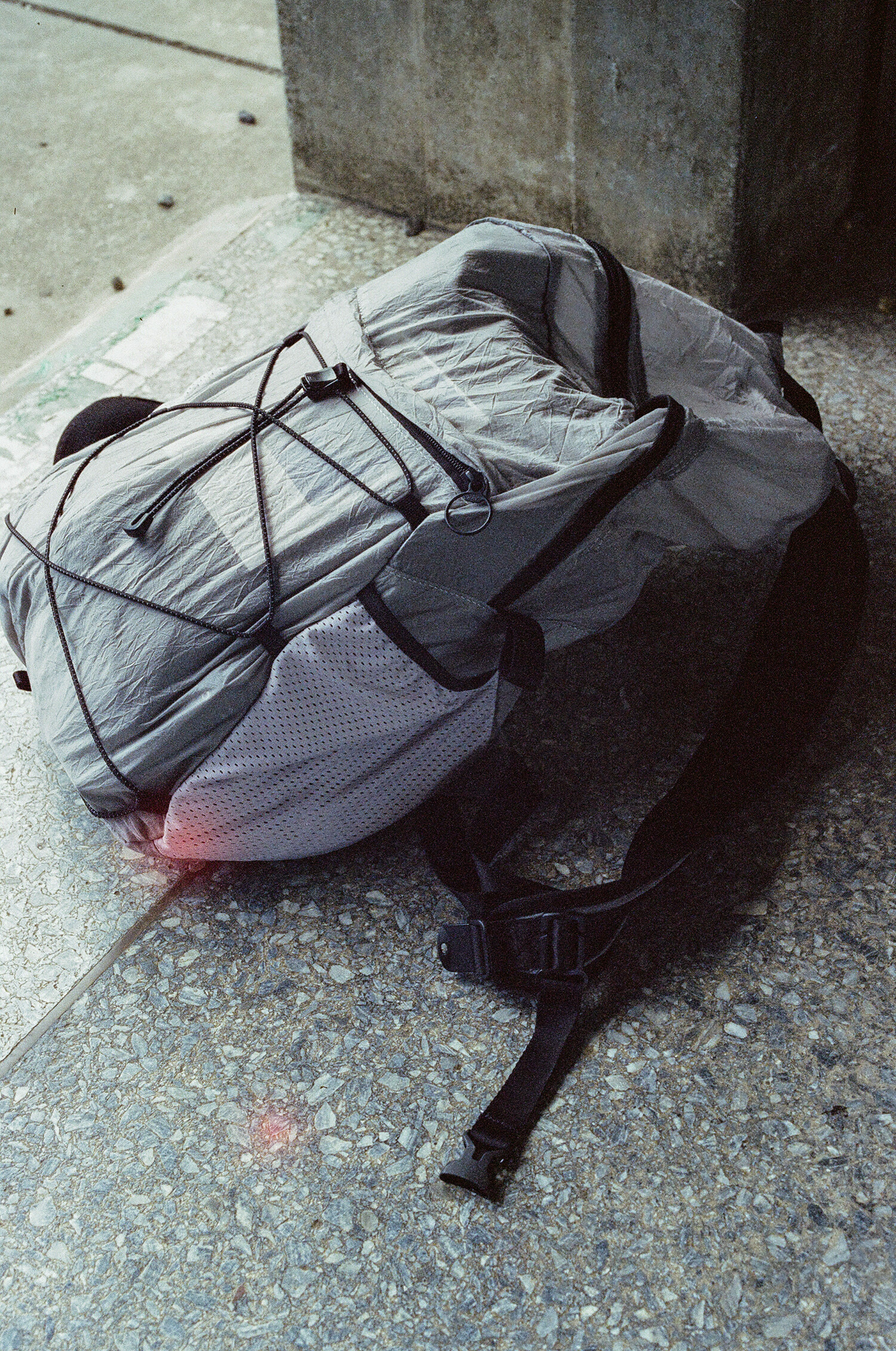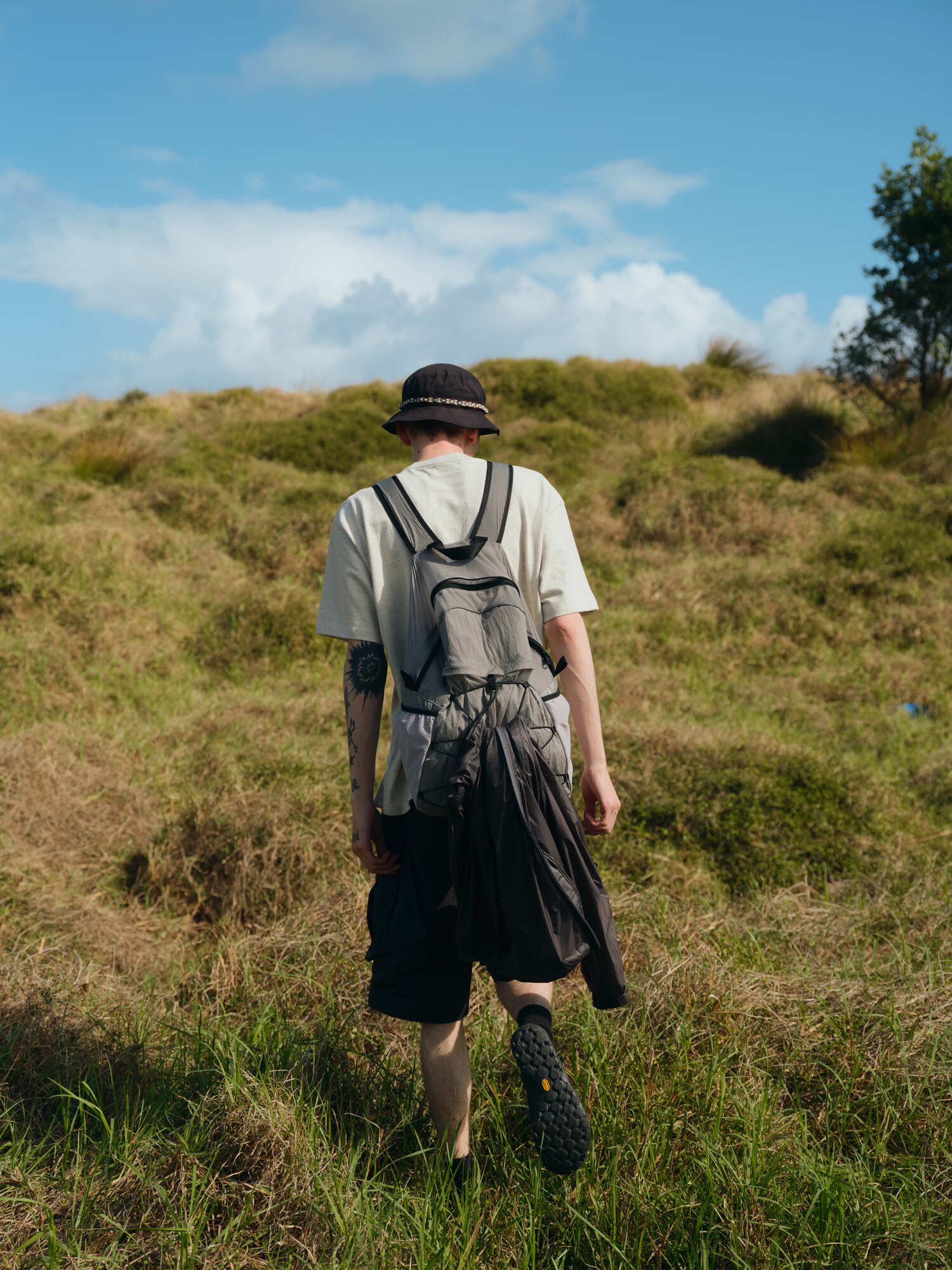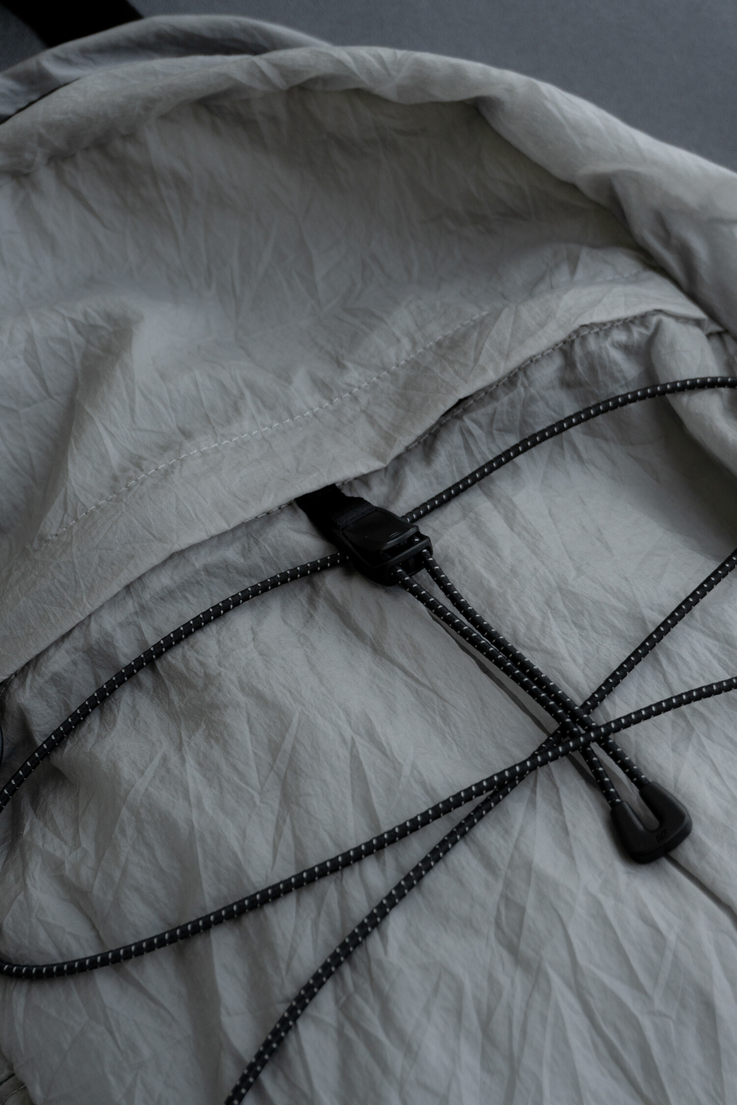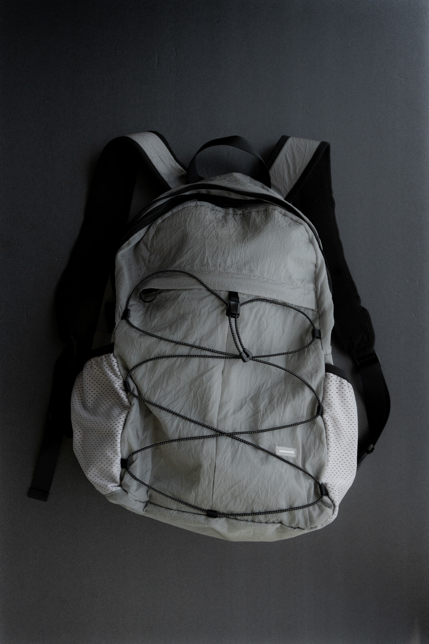 '액티비티 팩'의 메쉬 버전으로 출시된 가방입니다. 기존 제품과 다르게 양 측면 포켓과 내부 메인 포켓이 메쉬 원단으로 변경되었습니다. 각이 잡혀 있지 않고 의도적으로 흘러내리는 듯한 실루엣을 연출한 가방입니다. 등판과 포켓 부분을 제외하고 안감 및 보강재 없이 홑겹의 원단으로 제작하여 가볍고 유연한 것이 특징입니다. 가볍고 유연한 가방의 몸판 소재에 맞게 메쉬 원단 역시 부드러우며 밀도가 있는 원단을 사용했습니다. 퓨어 그레이 크리즈 컬러는 초경량 고밀도 나일론에 크리즈 가공을 통해 눈에 띄고 큼지막한 주름이 큰 특징입니다. 얇은 소재이기 때문에 굉장히 가볍고 특히 안감이 없는 부분은 내부가 비치고 소지품이 보이는 재미가 있습니다. 반면에 고밀도의 제품이기 때문에 내구성 또한 좋은편입니다. 다만 발수가 되는 제품이 아니기 때문에 비가 오거나 물에 젖을 수 있는 환경에서는 사용에 유의하시기 바랍니다.