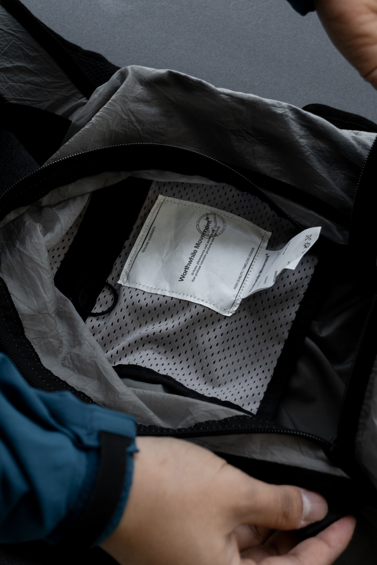 이번 메쉬 버전에서는 전면부에 위치한 플리츠 분량도 조절하여 포켓을 보다 더 여유롭게 사용할 수 있도록 하였고, 잠시 벗어둔 아우터나 카라비너와 같은 악세서리 등을 걸어둘 수 있는 스트링 소재도 변경됐습니다. 일반적인 E-스트링이 아닌 재귀반사 소재의 3M 스카치 스트링을 사용하여 기능적, 디자인적으로도 퀄리티가 우수한 제품입니다. 무거운 랩톱이나 전공서적 수납보다는 가벼운 소지품들을 넣는데 적합하며, 부피가 적어 캐리어나 메인 가방에 넣어두시고 여행지에서 서브백으로 활용하시기에도 좋습니다. 무엇보다 가벼운 액티비티나 등산, 트래킹 등 활동적인 상황에서 사용하기 알맞으며 체스트 버클과 웨빙 스트랩을 통해 몸에 밀착시켜 편안한 피팅감을 느끼실 수 있습니다. 오픈 TQ파츠를 사용하여 불필요한 경우, 체스트 버클은 탈착하실 수 있습니다. 내부에도 총 3개의 이너 포켓을 배치하여 크고 작은 다양한 소지품들을 효율적으로 수납할 수 있습니다. 스트랩의 안쪽에는 에어메쉬를 배치하여 어깨에서 쉽게 미끄러지지 않고 보다 더 안정적인 쿠셔닝을 느끼실 수 있습니다.