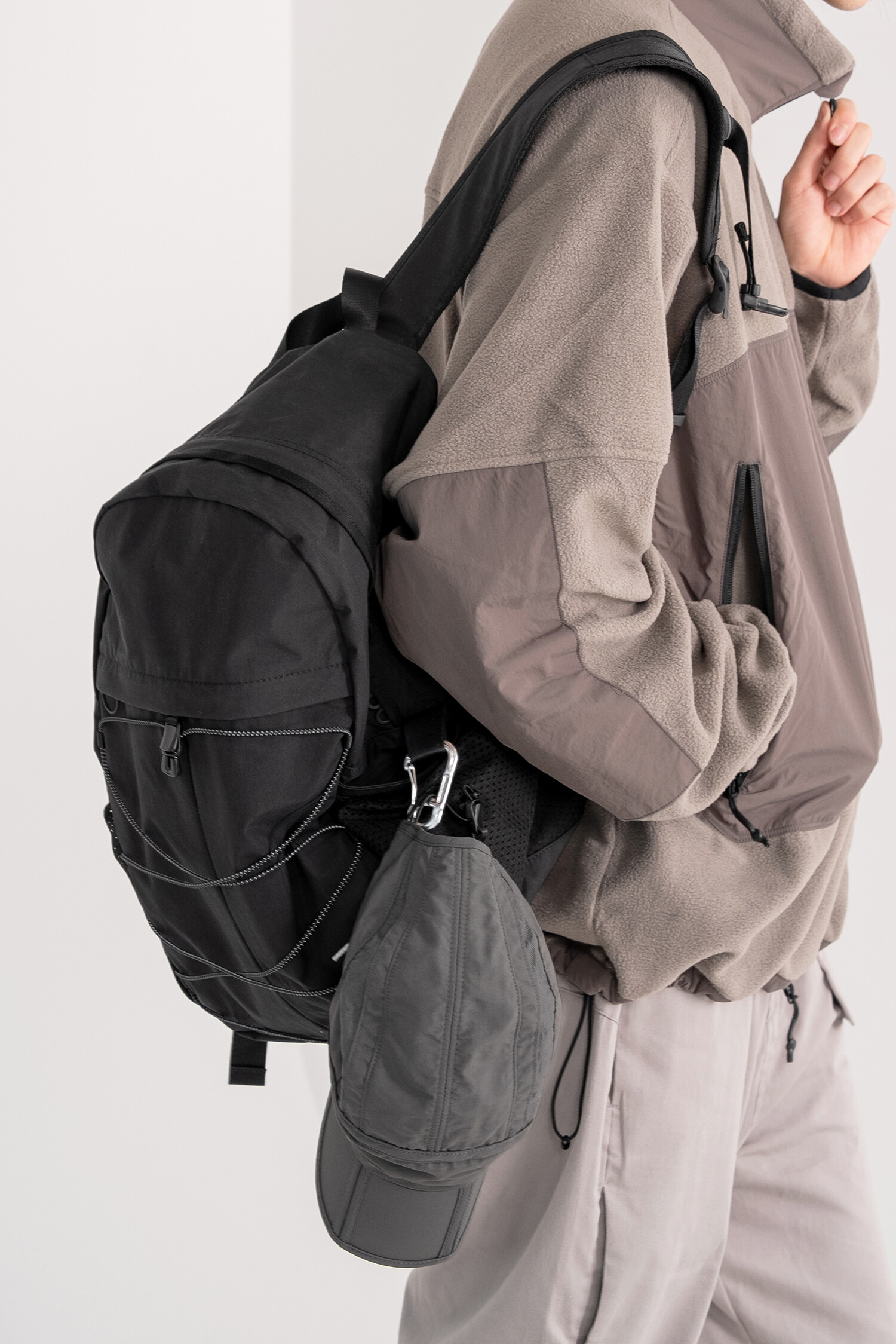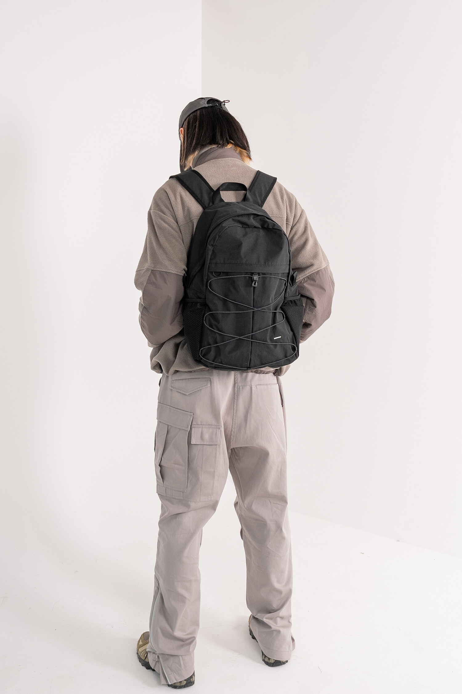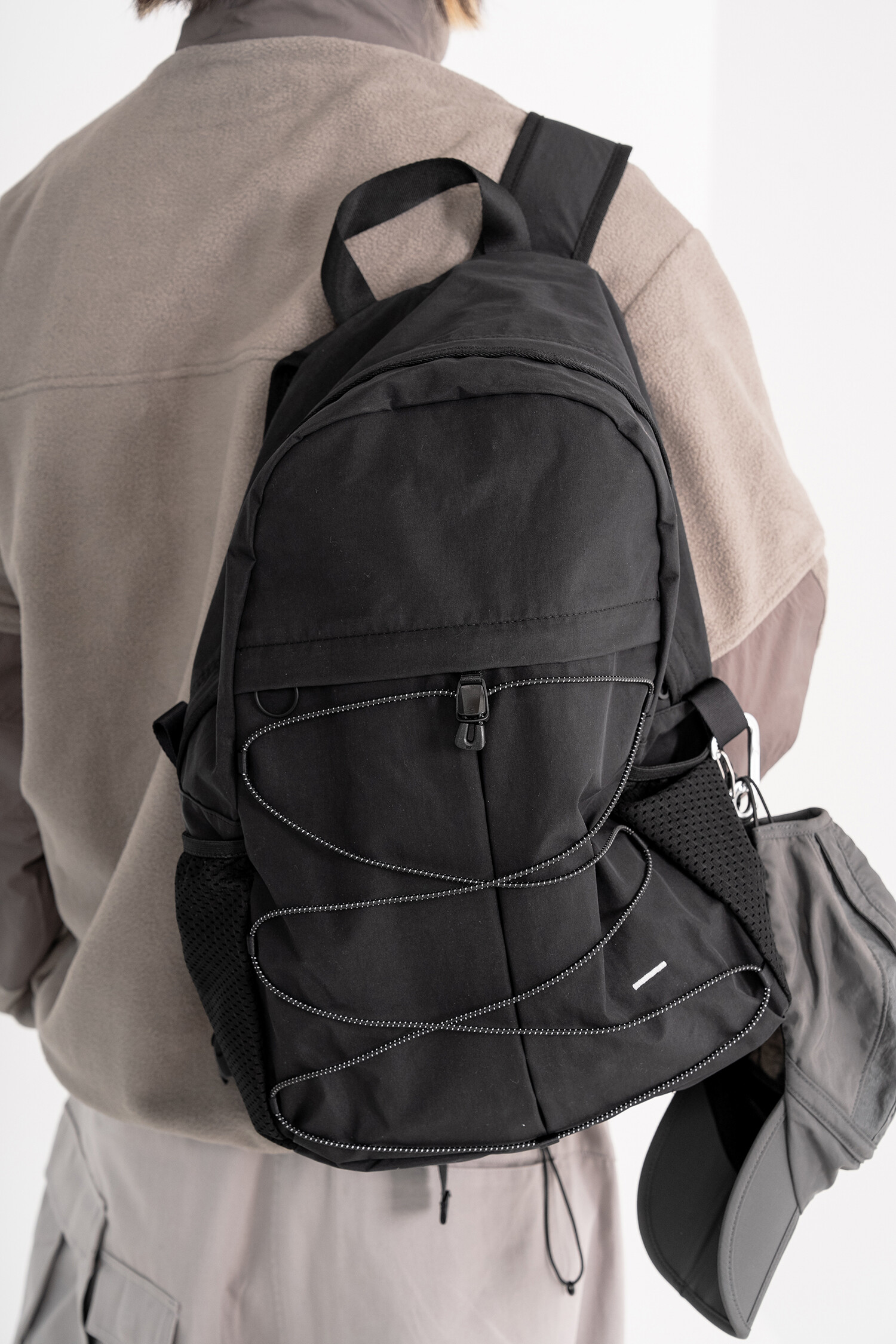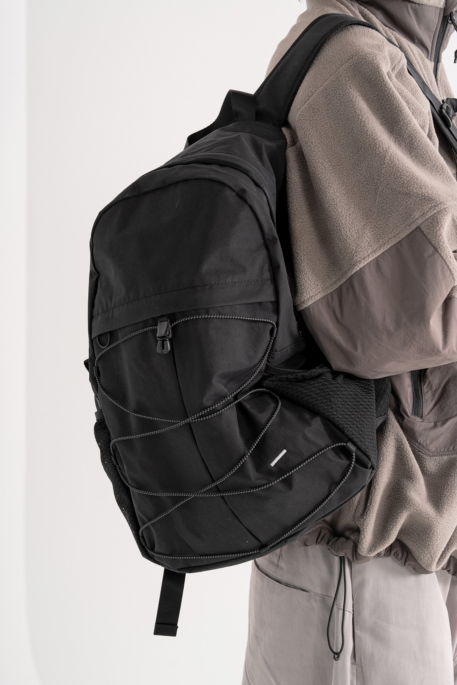 '액티비티 팩'의 메쉬 버전으로 출시된 가방입니다. 기존 제품과 다르게 양 측면 포켓과 내부 메인 포켓이 메쉬 원단으로 변경되었습니다. 각이 잡혀 있지 않고 의도적으로 흘러내리는 듯한 실루엣을 연출한 가방입니다. 등판과 포켓 부분을 제외하고 안감 및 보강재 없이 홑겹의 원단으로 제작하여 가볍고 유연한 것이 특징입니다. 가볍고 유연한 가방의 몸판 소재에 맞게 메쉬 원단 역시 부드러우며 밀도가 있는 원단을 사용했습니다. 메쉬 버전의 블랙 컬러는 실리콘 코팅된 3레이어 나일론 원단을 사용하여 발수력이 우수하고 내구성이 좋습니다. 이번 메쉬 버전에서는 전면부에 위치한 플리츠 분량도 조절하여 포켓을 보다 더 여유롭게 사용할 수 있도록 하였고, 잠시 벗어둔 아우터나 카라비너와 같은 악세서리 등을 걸어둘 수 있는 스트링 소재도 변경됐습니다. 일반적인 E-스트링이 아닌 재귀반사 소재의 3M 스카치 스트링을 사용하여 기능적, 디자인적으로도 퀄리티가 우수한 제품입니다. 무거운 랩톱이나 전공서적 수납보다는 가벼운 소지품들을 넣는데 적합하며, 부피가 적어 캐리어나 메인 가방에 넣어두시고 여행지에서 서브백으로 활용하시기에도 좋습니다. 무엇보다 가벼운 액티비티나 등산, 트래킹 등 활동적인 상황에서 사용하기 알맞으며 체스트 버클과 웨빙 스트랩을 통해 몸에 밀착시켜 편안한 피팅감을 느끼실 수 있습니다. 오픈 TQ파츠를 사용하여 불필요한 경우, 체스트 버클은 탈착하실 수 있습니다. 내부에도 총 3개의 이너 포켓을 배치하여 크고 작은 다양한 소지품들을 효율적으로 수납할 수 있습니다. 스트랩의 안쪽에는 에어메쉬를 배치하여 어깨에서 쉽게 미끄러지지 않고 보다 더 안정적인 쿠셔닝을 느끼실 수 있습니다.