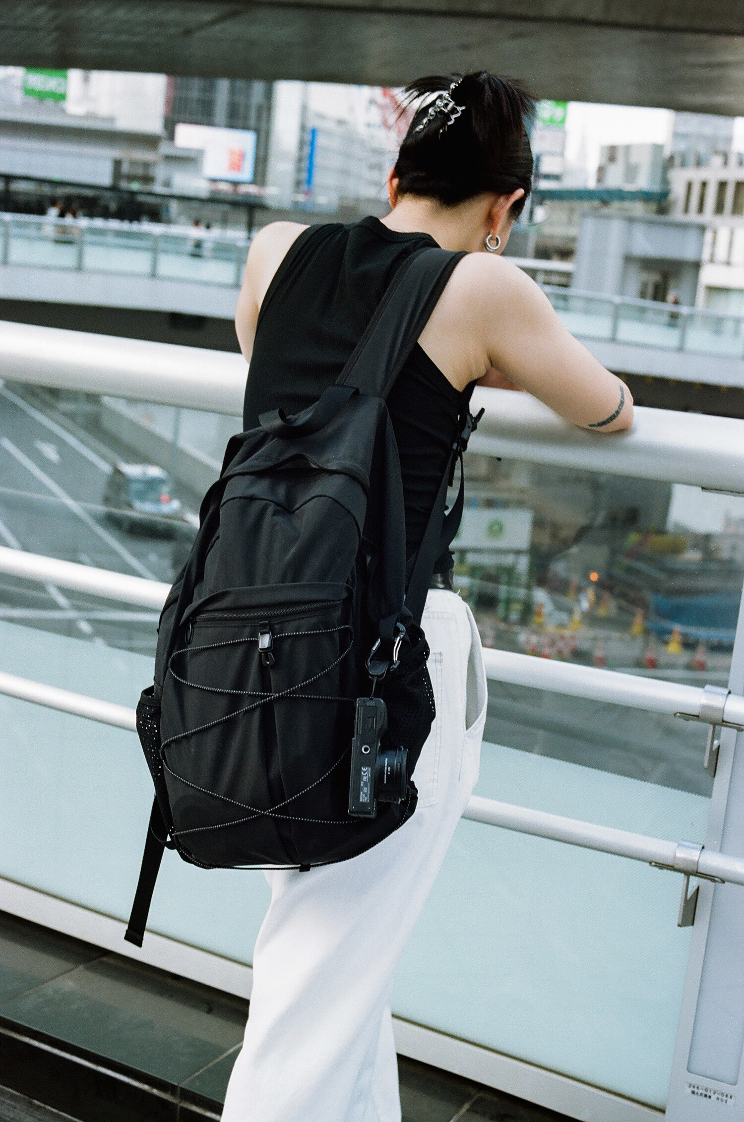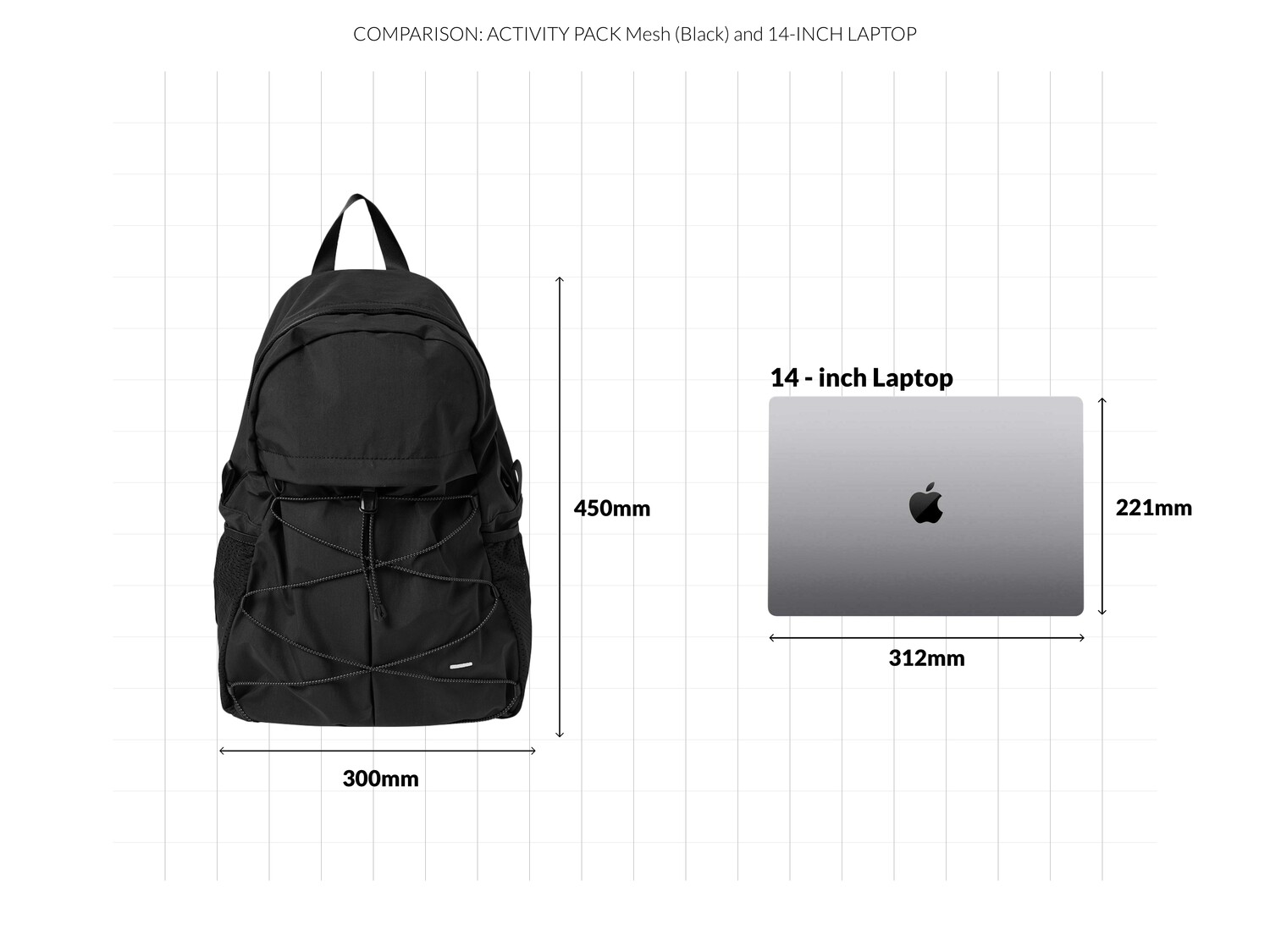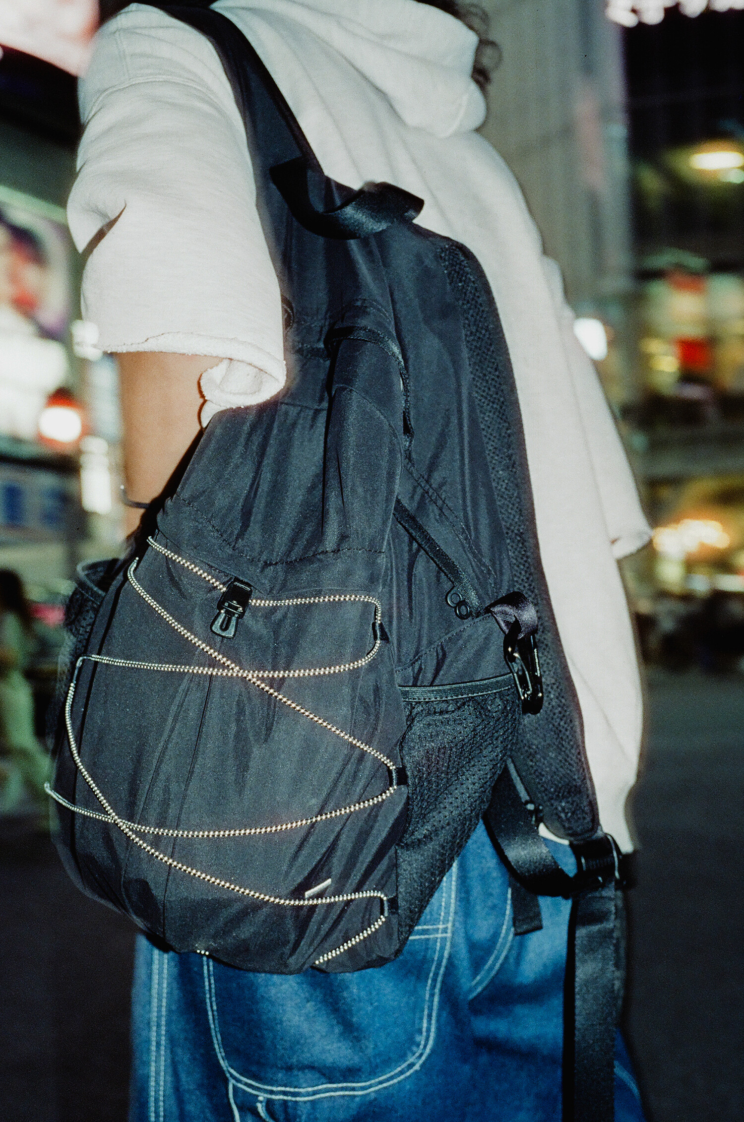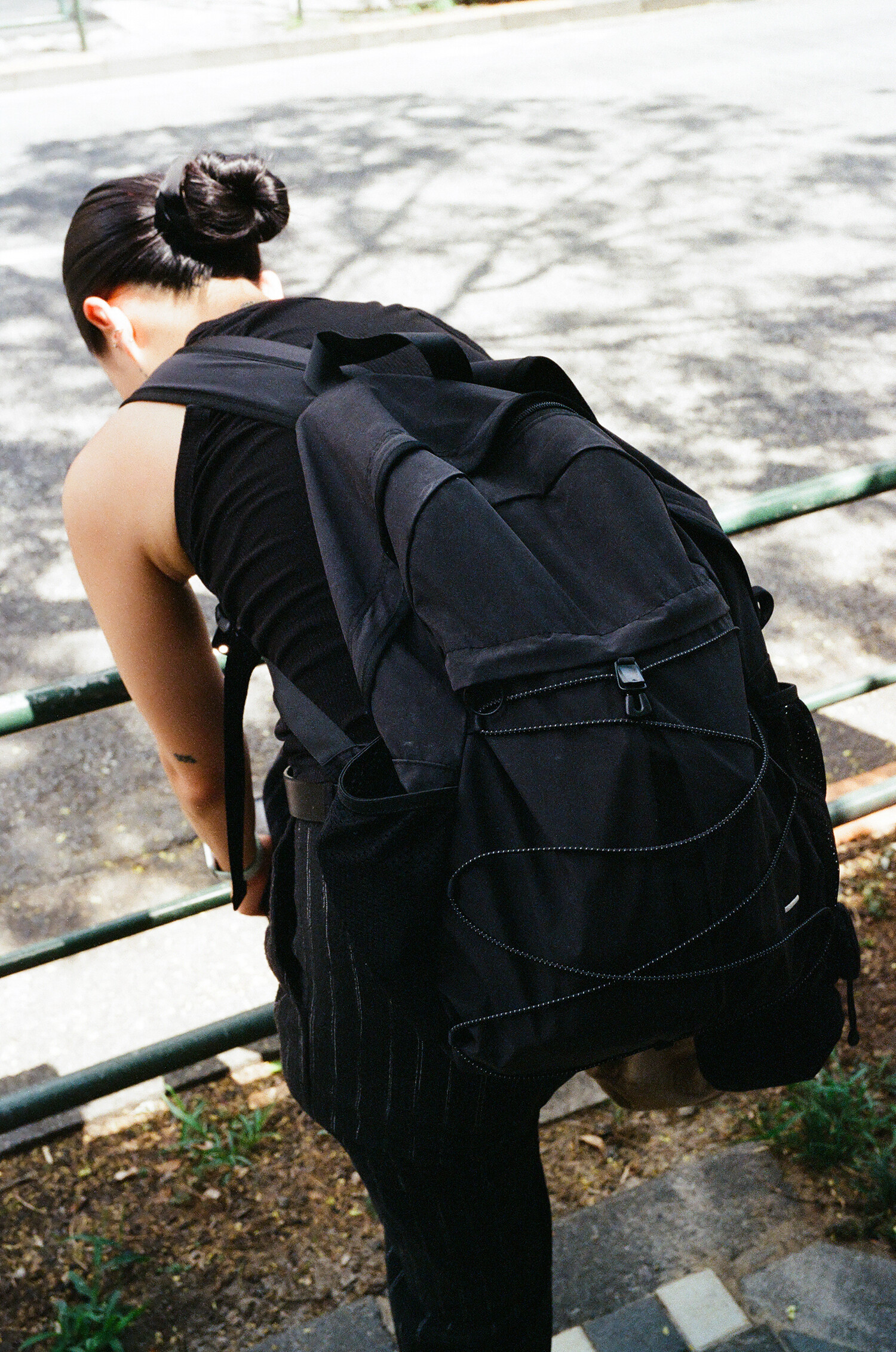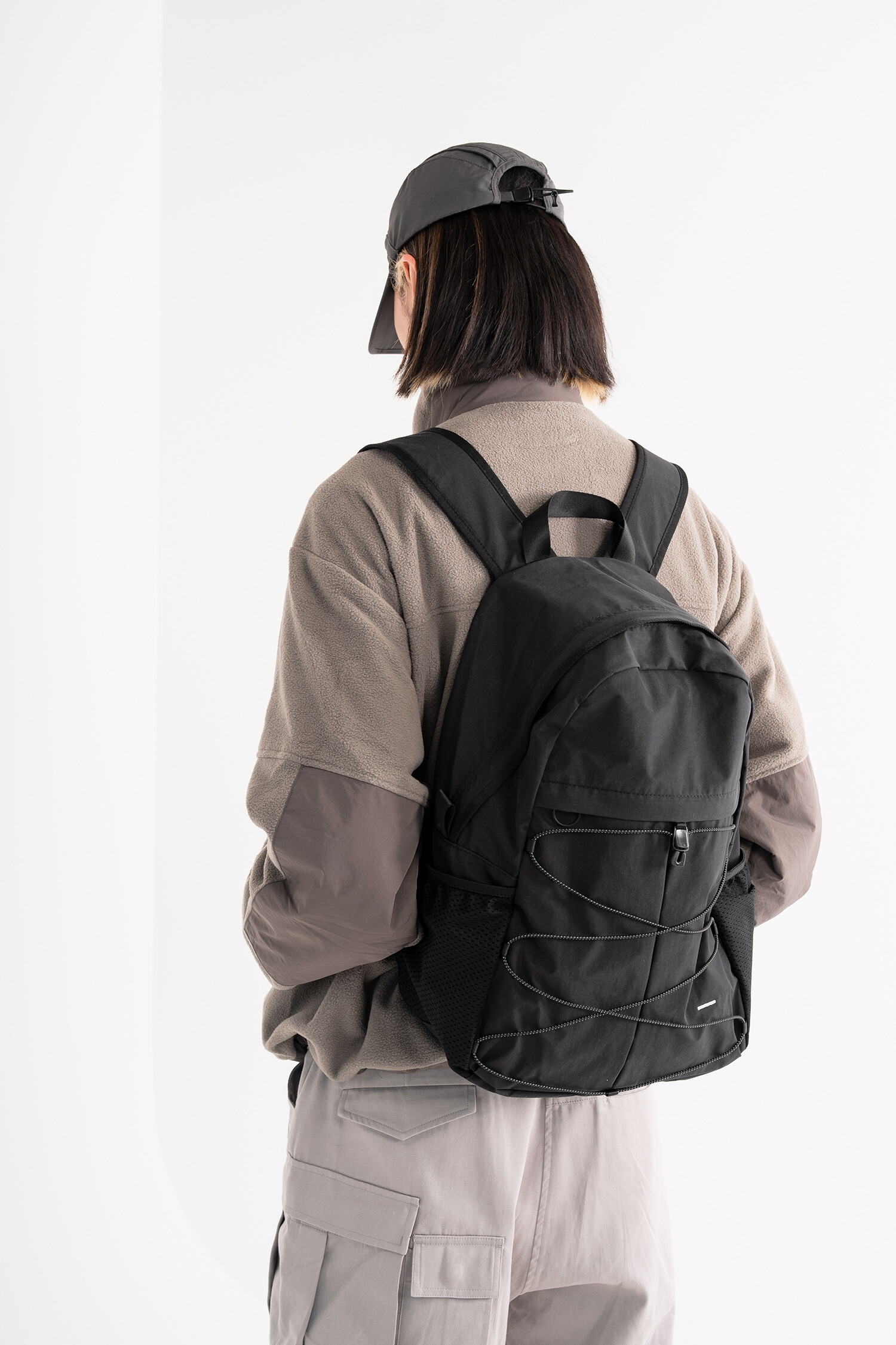 '액티비티 팩'의 메쉬 버전으로 출시된 가방입니다. 기존 제품과 다르게 양 측면 포켓과 내부 메인 포켓이 메쉬 원단으로 변경되었습니다. 각이 잡혀 있지 않고 의도적으로 흘러내리는 듯한 실루엣을 연출한 가방입니다. 등판과 포켓 부분을 제외하고 안감 및 보강재 없이 홑겹의 원단으로 제작하여 가볍고 유연한 것이 특징입니다. 가볍고 유연한 가방의 몸판 소재에 맞게 메쉬 원단 역시 부드러우며 밀도가 있는 원단을 사용했습니다. 메쉬 버전의 블랙 컬러는 실리콘 코팅된 3레이어 나일론 원단을 사용하여 발수력이 우수하고 내구성이 좋습니다. 이번 메쉬 버전에서는 전면부에 위치한 플리츠 분량도 조절하여 포켓을 보다 더 여유롭게 사용할 수 있도록 하였고, 잠시 벗어둔 아우터나 카라비너와 같은 악세서리 등을 걸어둘 수 있는 스트링 소재도 변경됐습니다. 일반적인 E-스트링이 아닌 재귀반사 소재의 3M 스카치 스트링을 사용하여 기능적, 디자인적으로도 퀄리티가 우수한 제품입니다. 무거운 랩톱이나 전공서적 수납보다는 가벼운 소지품들을 넣는데 적합하며, 부피가 적어 캐리어나 메인 가방에 넣어두시고 여행지에서 서브백으로 활용하시기에도 좋습니다. 무엇보다 가벼운 액티비티나 등산, 트래킹 등 활동적인 상황에서 사용하기 알맞으며 체스트 버클과 웨빙 스트랩을 통해 몸에 밀착시켜 편안한 피팅감을 느끼실 수 있습니다. 오픈 TQ파츠를 사용하여 불필요한 경우, 체스트 버클은 탈착하실 수 있습니다. 내부에도 총 3개의 이너 포켓을 배치하여 크고 작은 다양한 소지품들을 효율적으로 수납할 수 있습니다. 스트랩의 안쪽에는 에어메쉬를 배치하여 어깨에서 쉽게 미끄러지지 않고 보다 더 안정적인 쿠셔닝을 느끼실 수 있습니다.