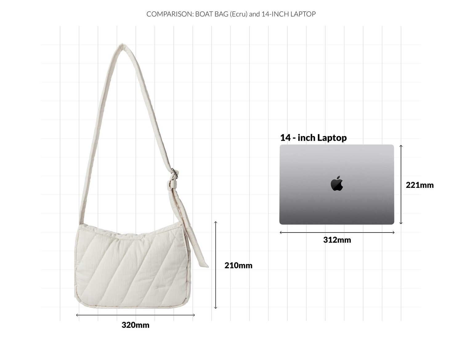 > SIZE : 320 x 210 x 100(mm) > WEIGHT : 260g > CAPACITY : 6L > STORAGE : 9" TABLET > TYPE : 2Way (크로스백, 숄더백) > COLOR : Ecru > FABRIC : Cotton 51% / Nylon 49% : N/C bio washed finish (Quilting & 3oz cotton) > LINING : Polyester 65% / Cotton 35% > ZIPPER : YKK® 5&3 > PARTS: Nickel matt adjuster > ORIGIN : Korea