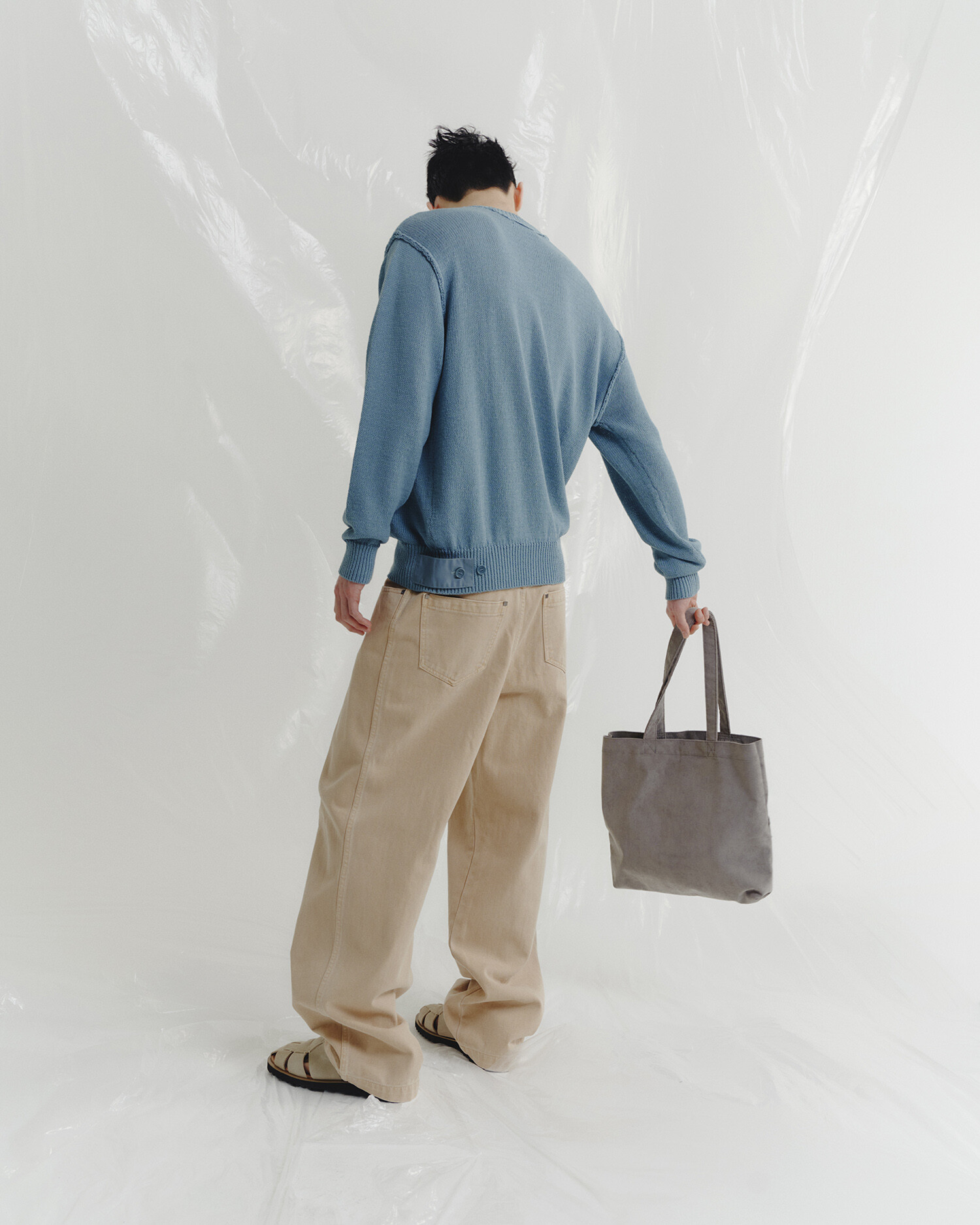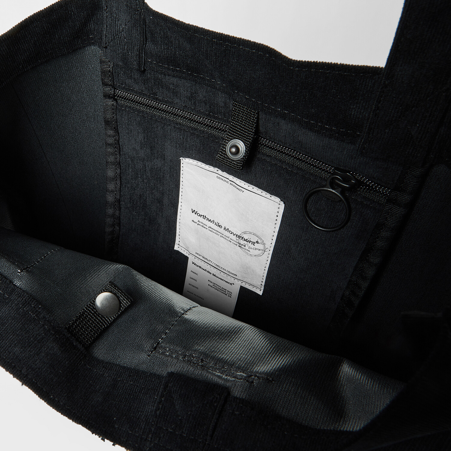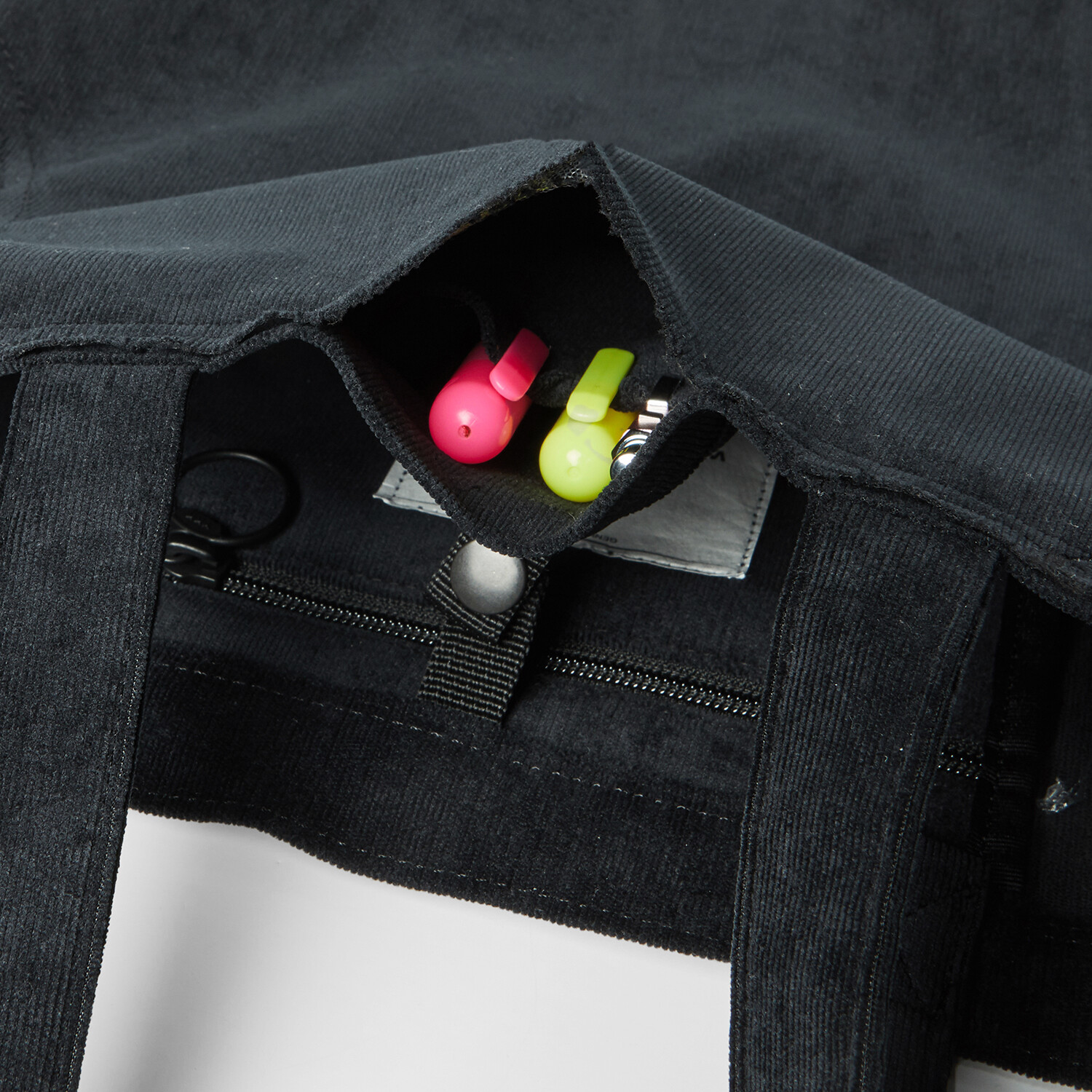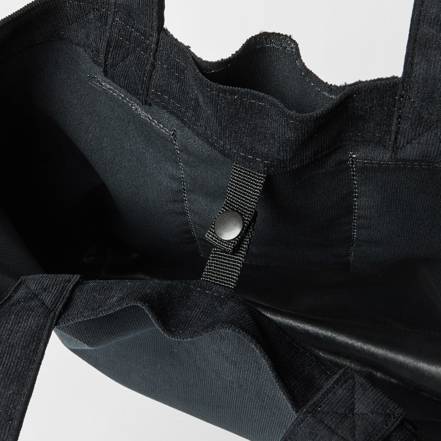 컷 오프된 아웃라인과 레이어드된 포켓 구조가 특징인 숄더&토트백 입니다. 내부면이 코팅된 얇은 골의 코듀로이 소재를 사용하였습니다. 빛이 바랜듯한 외관과 사용하면서 자연스러운 올풀림이 연출되는 컷 오프 디테일로 인해 빈티지한 분위기가 장점인 제품입니다. 전면부에는 큰 포켓 하나와 분할된 두개의 사이드 포켓이 있고, 상단에 오픈된 공간으로는 펜을 꽂을 수 있는 Penrack(펜 걸이) 디테일이 있습니다. 내부에는 YKK 지퍼를 사용한 이너 포켓이 하나 배치되어 있고, 입구는 YKK 스냅과 웨빙을 통해 직관적인 형태로 열고 닫을 수 있도록 했습니다. 크지 않은 사이즈로 남녀 모두 사용하기 적합하며, 캐주얼한 착장에 잘 어울리는 제품입니다.