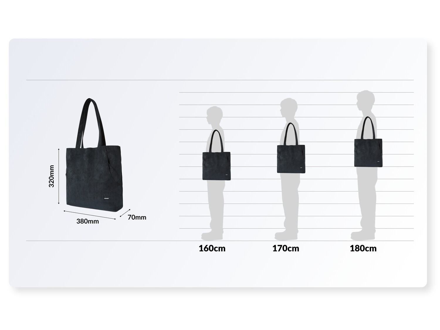 > SIZE : 380 x 320 x 70(mm) > WEIGHT : 260g > CAPACITY : 7L > STORAGE : 13" LAPTOP > TYPE : 2Way (토트백, 숄더백) > COLOR : Black > FABRIC : Polyethylene 86%, Polyamide 12%, Polyurethane 2% (내부 PU 코팅) > LINING : - > ZIPPER : YKK® > PARTS: YKK® Snap > ORIGIN : Korea