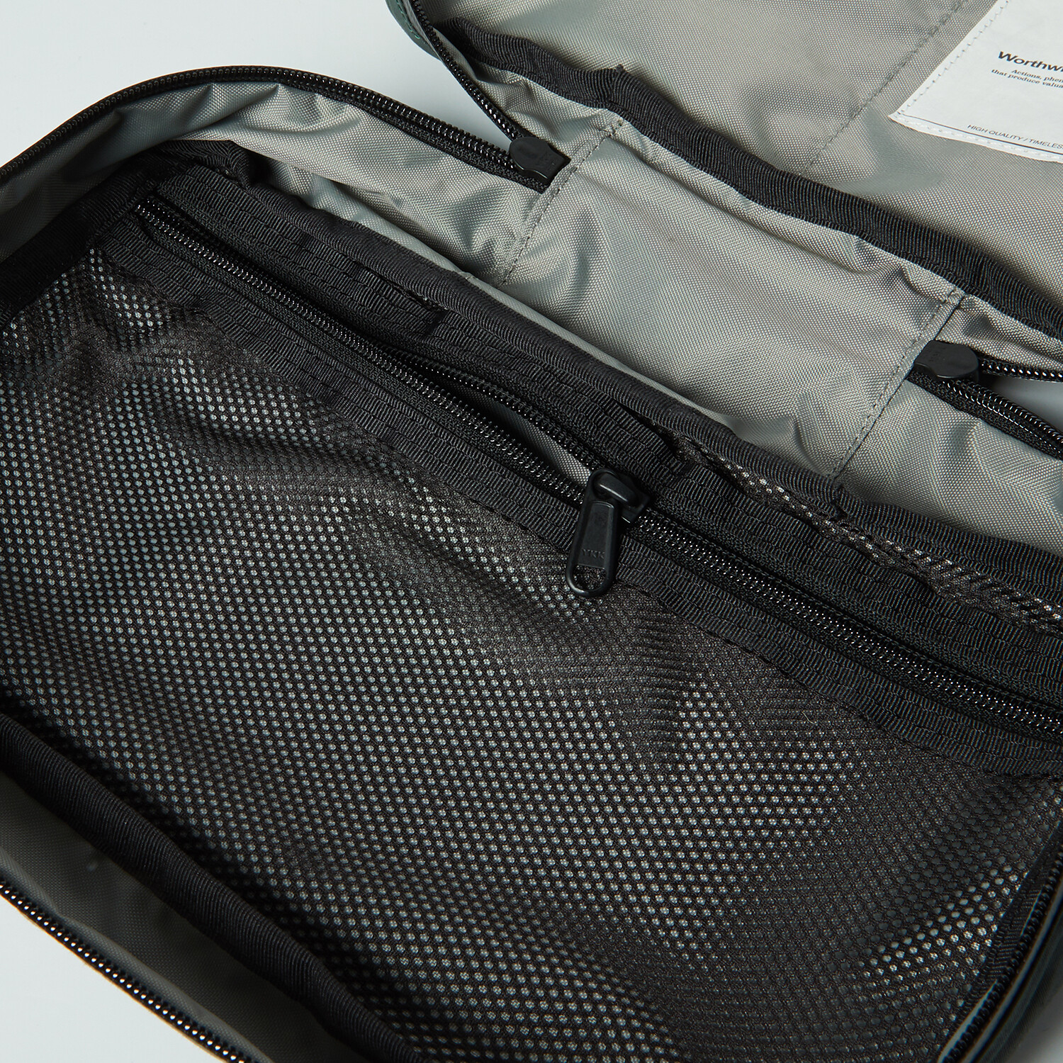 작은 물건이나 소지품을 효율적으로 구분 및 수납할 수 있는 오거나이저입니다. 오거나이저 시리즈 중 'L' 사이즈 제품으로 내부에는 벨크로와 메쉬 이너 포켓이 있어서 간편한 정리가 가능합니다. 나일론 코튼 교직 원단에 바이오 워싱 및 시레 가공을 통해 매끈한 질감과 광택감 있는 표면을 연출했습니다. 지퍼와 슬라이더는 모두 YKK 제품을 사용했습니다. 생활 발수가 가능한 제품으로 여행과 일상 등 다방면에서 사용해보시기 바랍니다.