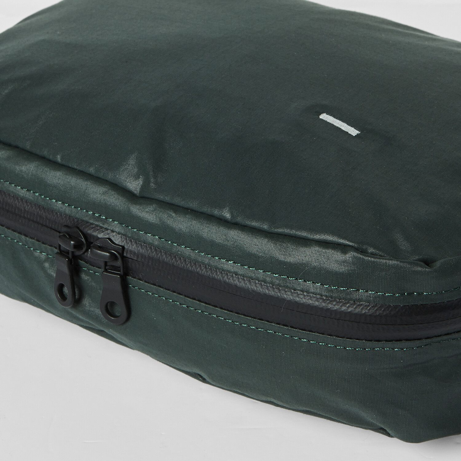 > SIZE : 200 x 125 x 50(mm) > WEIGHT : 70g > CAPACITY : 1.2L > TYPE : 1Way (오거나이저) > COLOR : Deep green > FABRIC : Nylon 63%, Cotton 37% (N/NC 30's bio washing & cire finish) WR > LINING : Nylon 100% > ZIPPER : YKK® RC Chain > ORIGIN : Korea