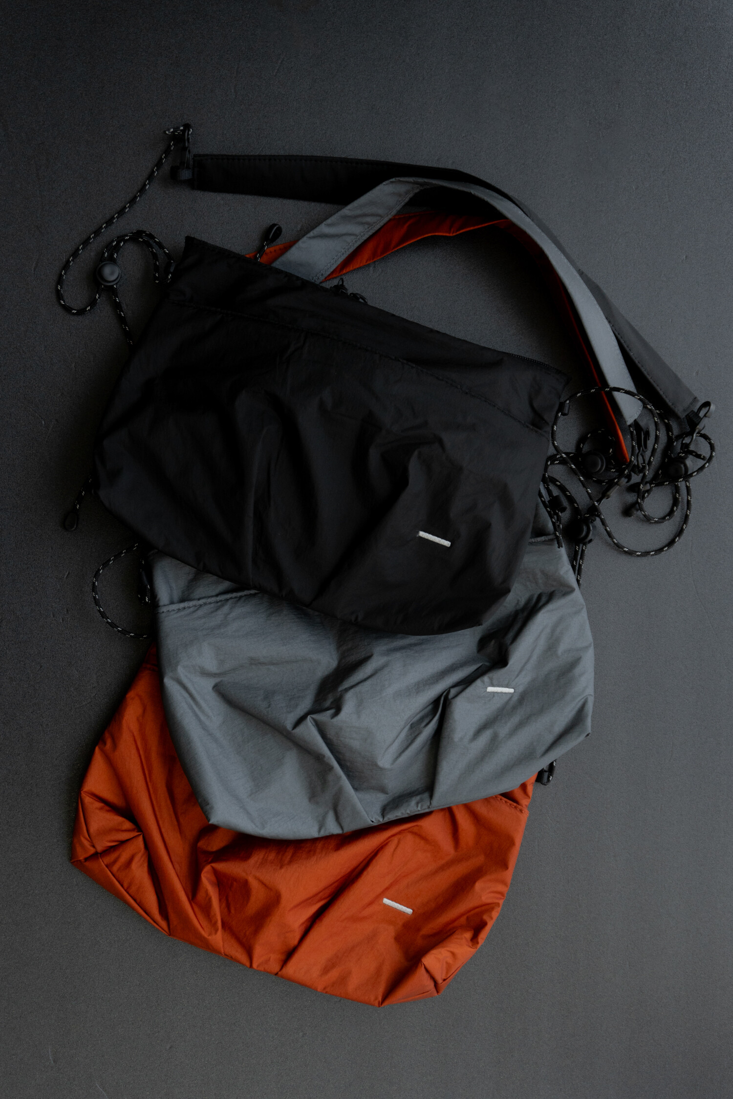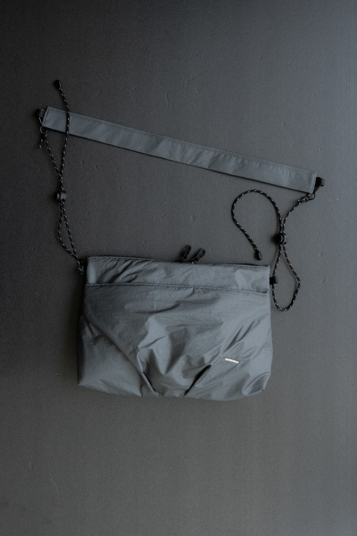 전면부에 대칭 구조의 플리츠가 잡힌 작은 사코슈백으로 멤브레인 나일론과 메쉬 소재의 패브릭이 적용되었습니다. 3M 재귀반사 스트링과 스토퍼를 통해 착용자의 기준에 맞게 스트랩 전체 길이를 간편하게 조절할 수 있고, 외부와 내부에 있는 2개의 포켓을 사용해 소지품을 분리하여 수납할 수 있습니다. 내부 포켓 및 안감은 시원한 메쉬 소재를 사용하여 제품의 특징에 적합하도록 만들었습니다. 가벼운 옷차림에 단품으로 사용하실 수 있고, 백팩등과 함께 사용하셔도 좋습니다. 양방향으로 오픈되는 메인 지퍼와 개별적으로 길이 조절이 가능한 스토퍼 그리고 사용자의 몸쪽을 향하는 포켓의 지퍼 입구까지 편의성을 고려한 디테일들이 돋보이는 제품입니다. 가벼운 짐들을 넣고 다니거나 여행시 서브백으로도 유용합니다.