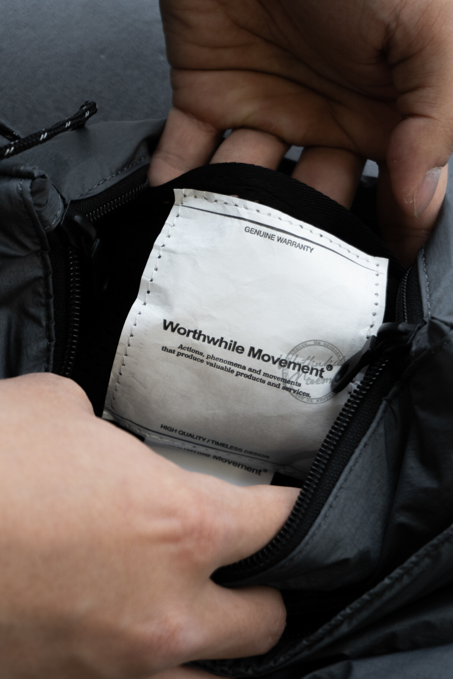 * 플리츠가 잡힌 사코슈 백 * PU 코팅 멤브레인 나일론 패브릭 * WR(발수 가공) * YKK® RC 지퍼 및 2way 슬라이더 * Woojin plastic 및 Ace® 플라스틱 파츠 * 3M 재귀반사 스트링 (3mm) * 스트링과 스토퍼를 통한 간편한 길이 조절 * 1개의 아웃 포켓과 이너 포켓 * 숄더 스트랩 내 보강재