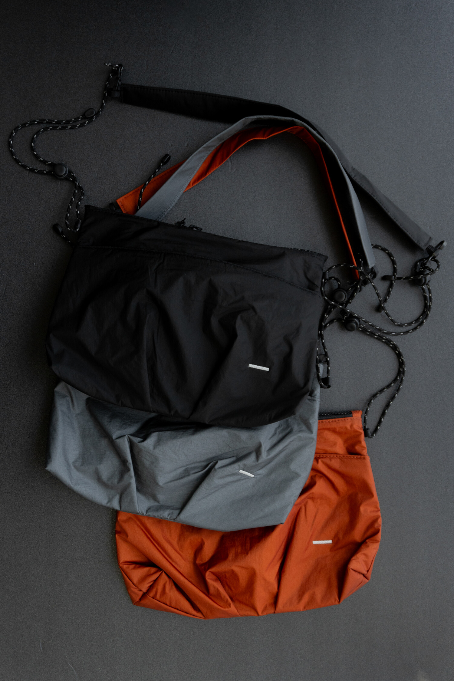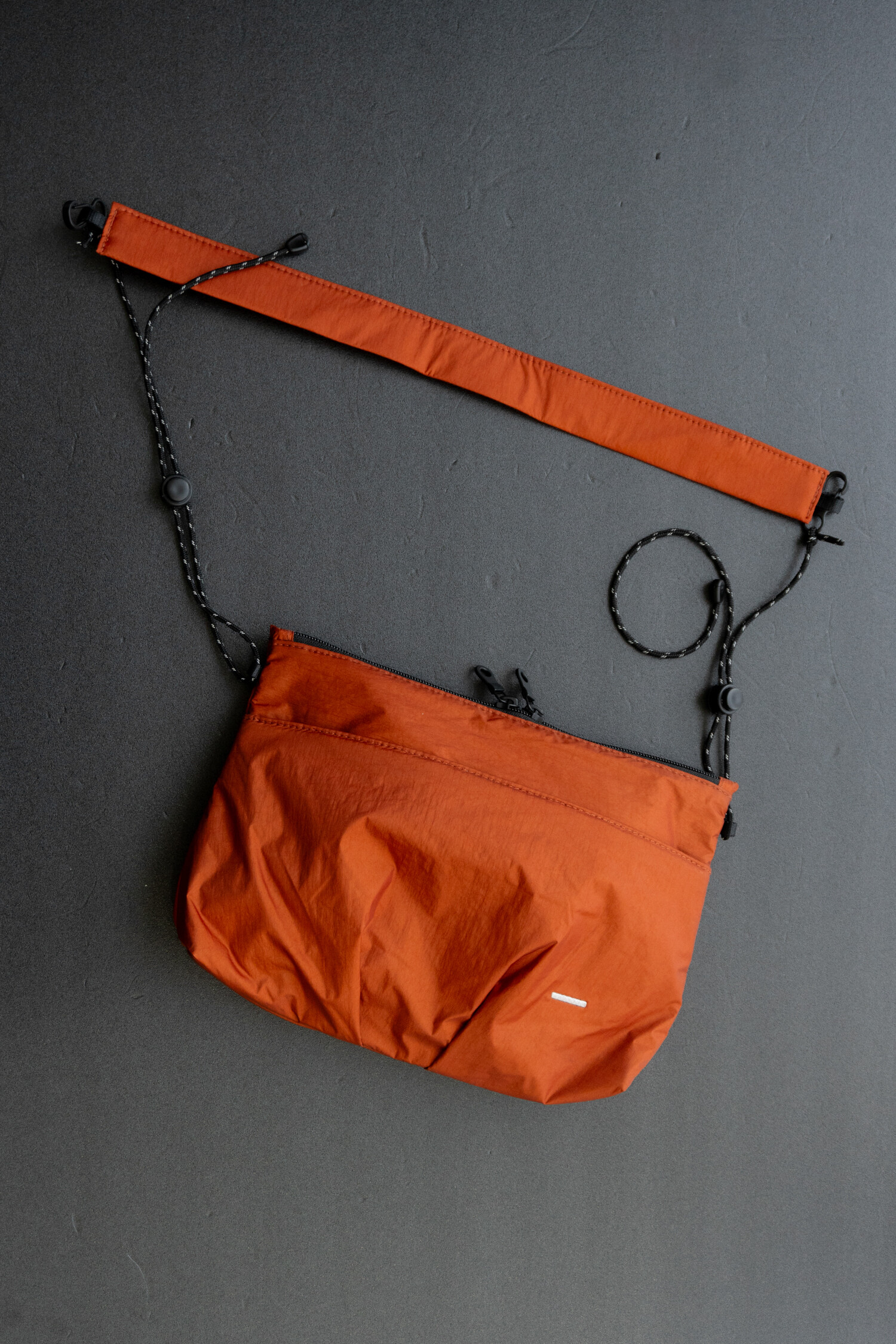 전면부에 대칭 구조의 플리츠가 잡힌 작은 사코슈백으로 멤브레인 나일론과 메쉬 소재의 패브릭이 적용되었습니다. 3M 재귀반사 스트링과 스토퍼를 통해 착용자의 기준에 맞게 스트랩 전체 길이를 간편하게 조절할 수 있고, 외부와 내부에 있는 2개의 포켓을 사용해 소지품을 분리하여 수납할 수 있습니다. 내부 포켓 및 안감은 시원한 메쉬 소재를 사용하여 제품의 특징에 적합하도록 만들었습니다. 가벼운 옷차림에 단품으로 사용하실 수 있고, 백팩등과 함께 사용하셔도 좋습니다. 양방향으로 오픈되는 메인 지퍼와 개별적으로 길이 조절이 가능한 스토퍼 그리고 사용자의 몸쪽을 향하는 포켓의 지퍼 입구까지 편의성을 고려한 디테일들이 돋보이는 제품입니다. 가벼운 짐들을 넣고 다니거나 여행시 서브백으로도 유용합니다.
