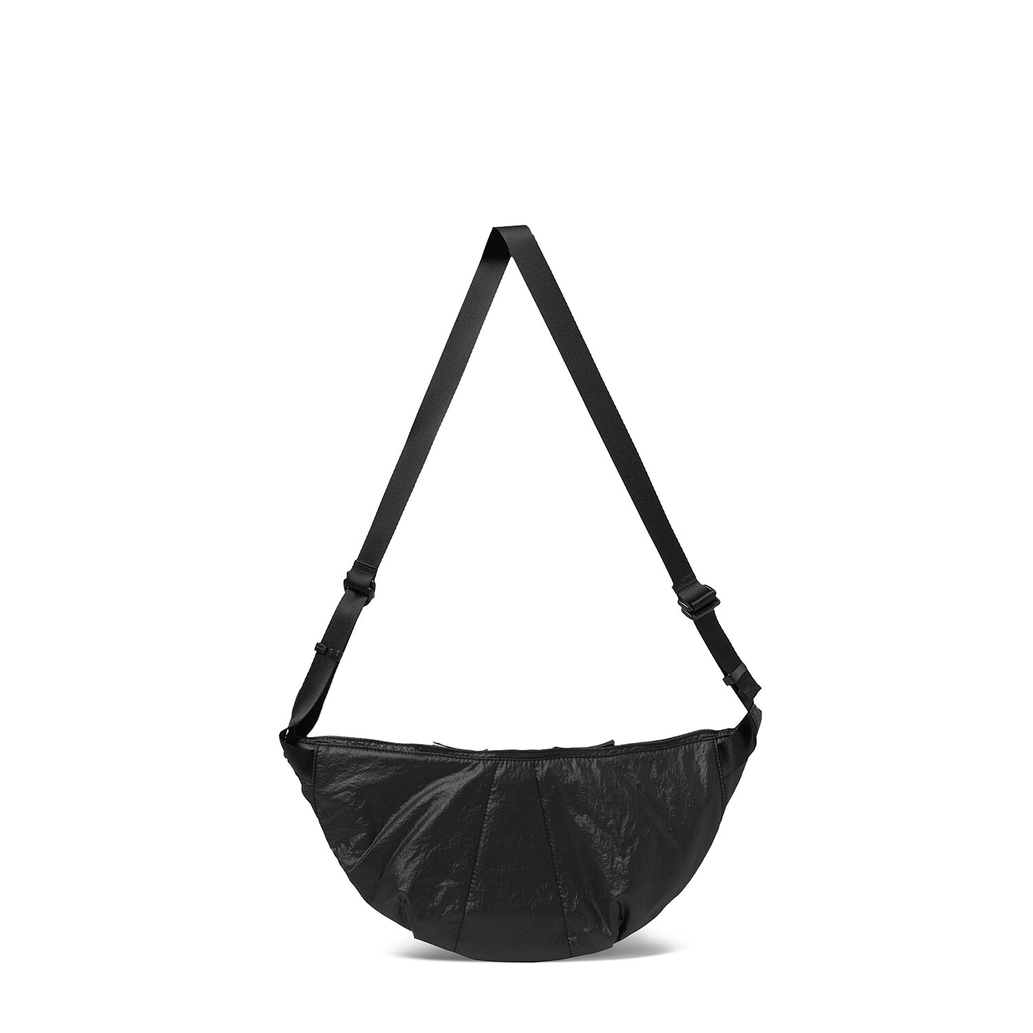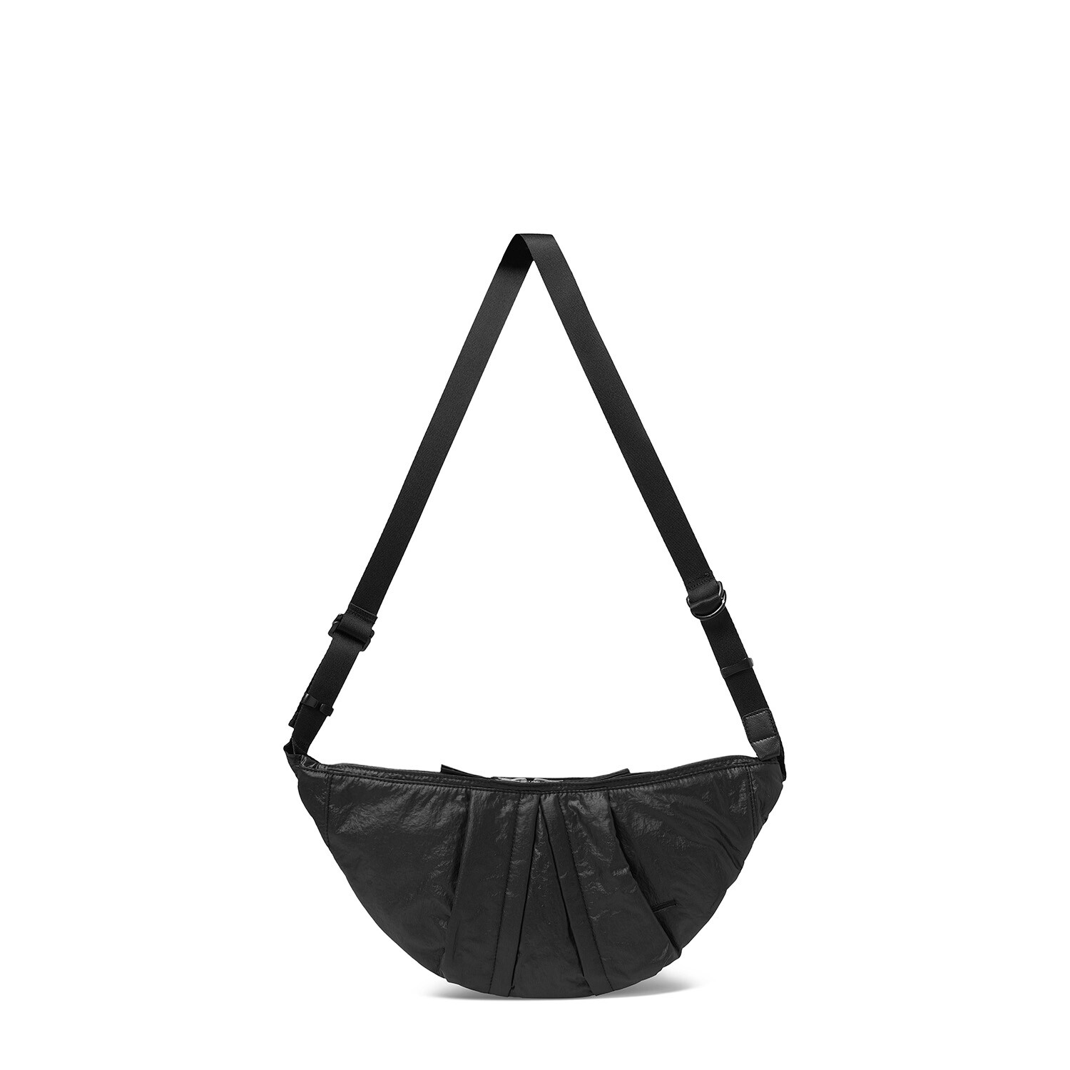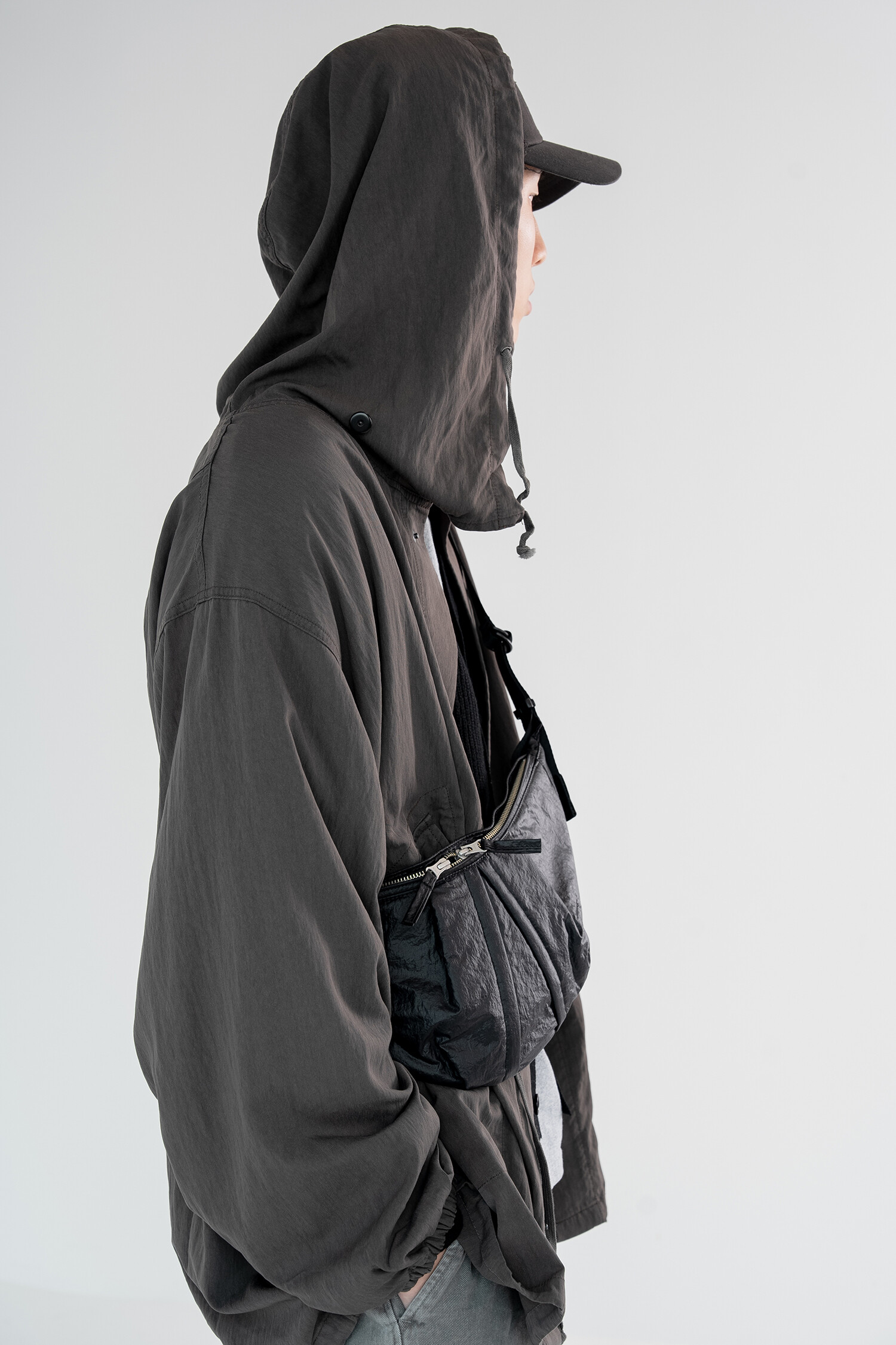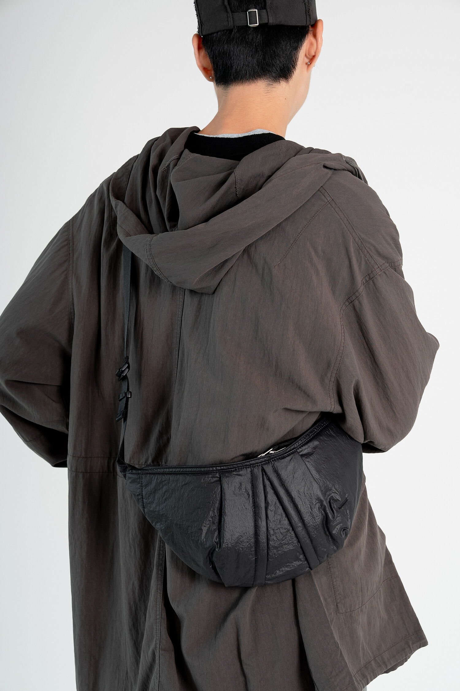 기존에 출시된 램스킨 '카프 백'의 나일론 버전입니다. 좀 더 가볍고 일상에서 편하게 착용할 수 있는 모습으로 리뉴얼한 제품입니다. 시레가공 된 나일론 워셔 원단을 사용해서 바스락거리는 터치감과 고급스러운 광택감이 특징입니다. 전반적인 곡선형의 모양을 강조하고 얇은 원단을 보강하기 위해 겉감과 메쉬 안감 사이에는 2온스 솜과 나일론 다후다 원단이 합포되어 적절한 두께감과 안정적인 형태감을 느낄 수 있습니다. 비교적 스포티하고 캐주얼한 제품이지만 적절한 균형을 위해 지퍼는 YKK 무광 니켈 지퍼로 변경하여 무게감을 잡아준 모습입니다. 탄탄한 나일론 능직 웨빙 스트랩에 램스킨 가죽 트림을 더해 디자인적 밀도를 더했고, 제품의 분위기에 맞게 D링과 사각링 파츠는 YKK 플라스틱 파츠로 변경했습니다. 크기가 작은 제품이기 때문에 내부에는 1개의 이너 포켓만 배치하였고, 폴리테루 협업 타이벡 라벨이 적용된 모습을 보실 수 있습니다. 계절 및 옷차림에 크게 제약을 받지 않는 활용도가 높은 제품으로 폴리테루 팀의 섬세한 디자인 스킬과 월스와일 무브먼트의 제작 노하우가 더해져 누구나 편하게 즐길 수 있는 제품입니다.