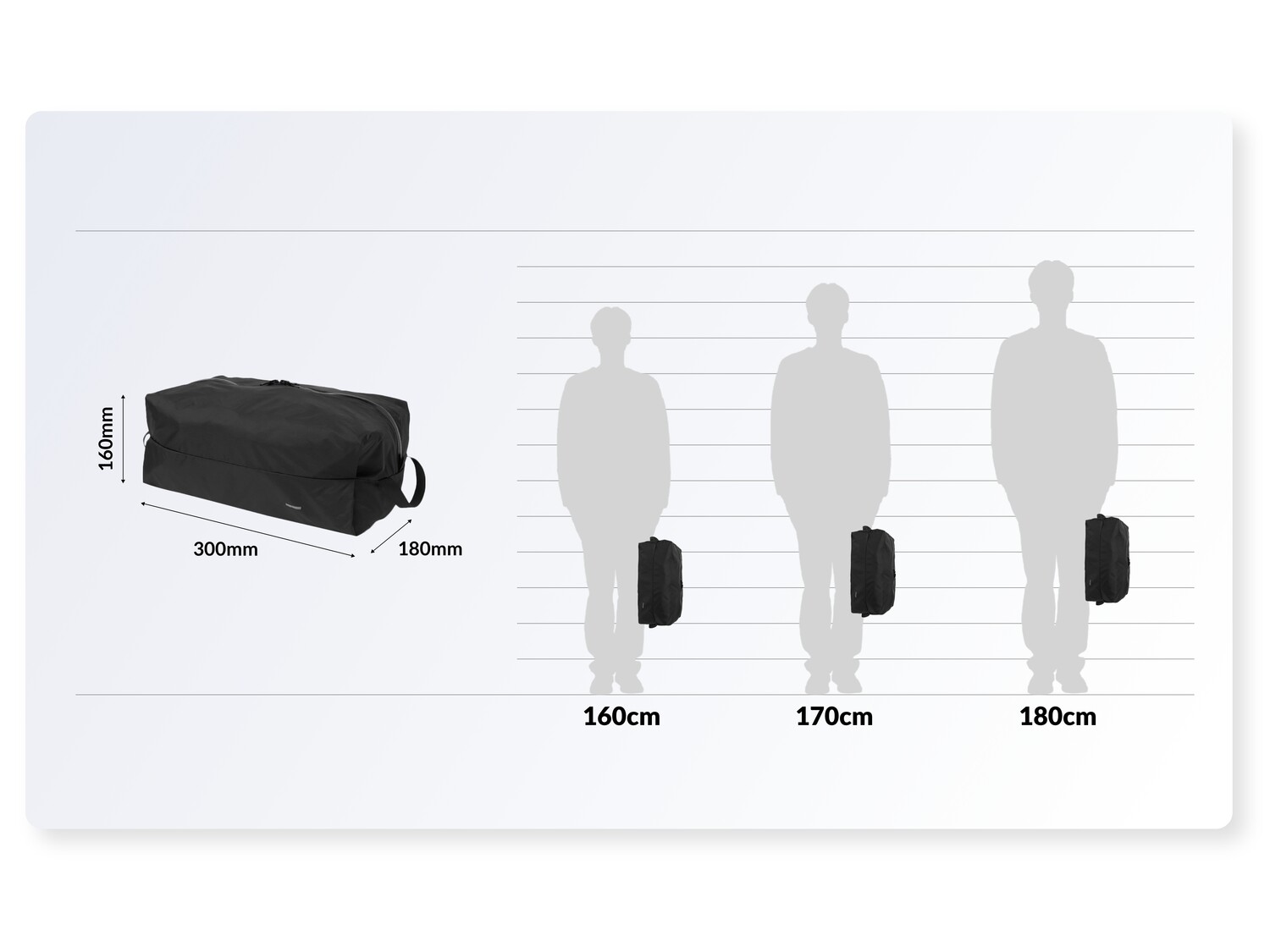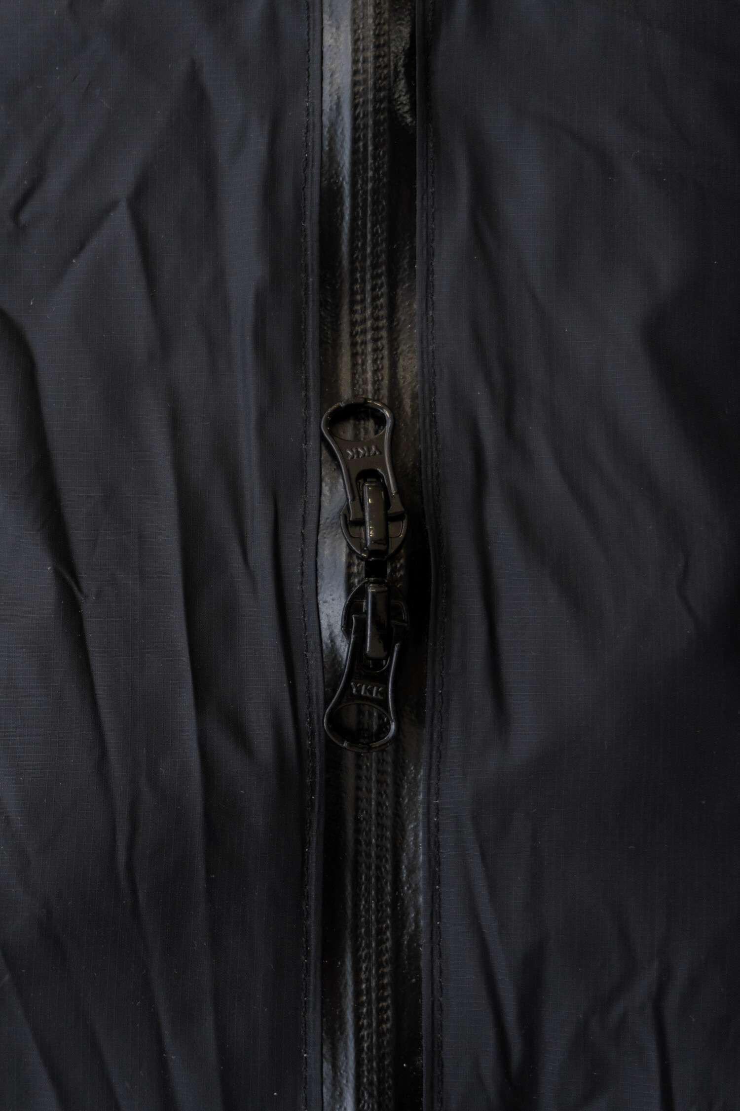 > SIZE : 300 x 160 x 180 (mm) > WEIGHT : 50g > CAPACITY : 8L > TYPE : 1Way (집색) > COLOR : Black > FABRIC : Nylon 100% (Nylon 40d super light ripstop nylon) > LINING : - > WEBBING : Polyester 100% > ZIPPER : YKK - Aqua guard® > PARTS : - > STRING: - > ORIGIN : Korea