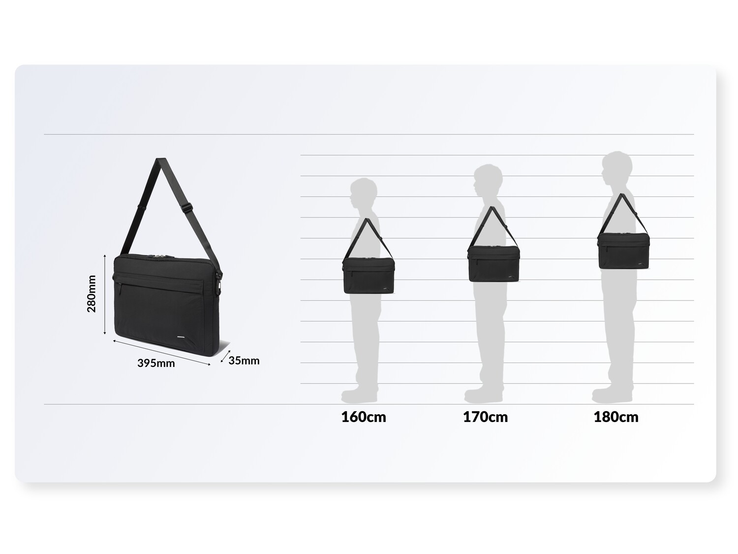 ▶︎ SIZE : 280 x 395 x 35 (mm) ▶︎ WEIGHT : 335g ▶︎ CAPACITY : 3.5L ▶︎ STORAGE : ~16" LAPTOP ▶︎ TYPE : 2Way (Briefcase, Cross bag) ▶︎ COLOR : Black ▶︎ FABRIC : Nylon 100% ▶︎ LINING : Nylon100% ▶︎ WEBBING : Nylon100% ▶︎ ZIPPER : YKK® ▶︎ PARTS : Woojin plastic ® ▶︎ ORIGIN : Korea