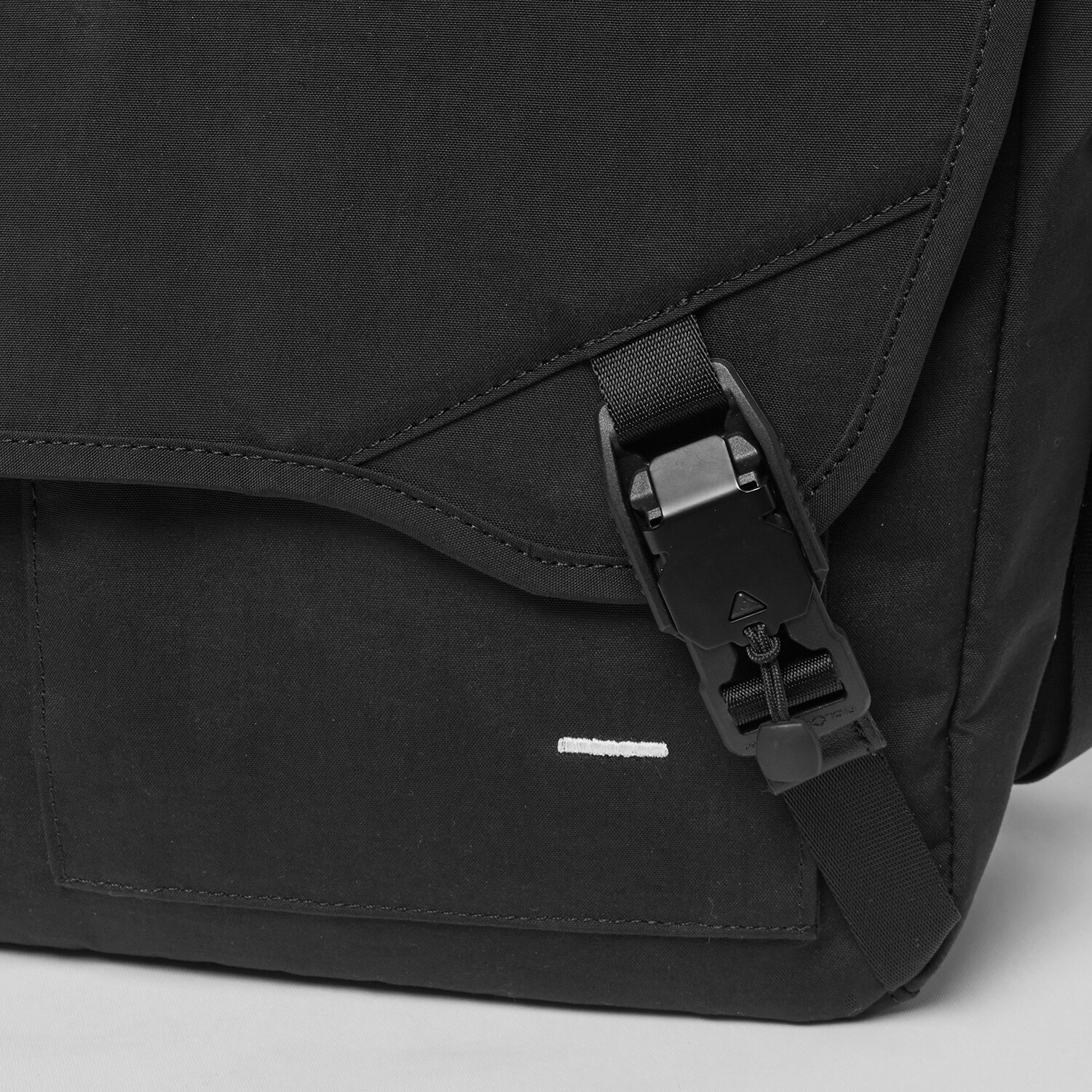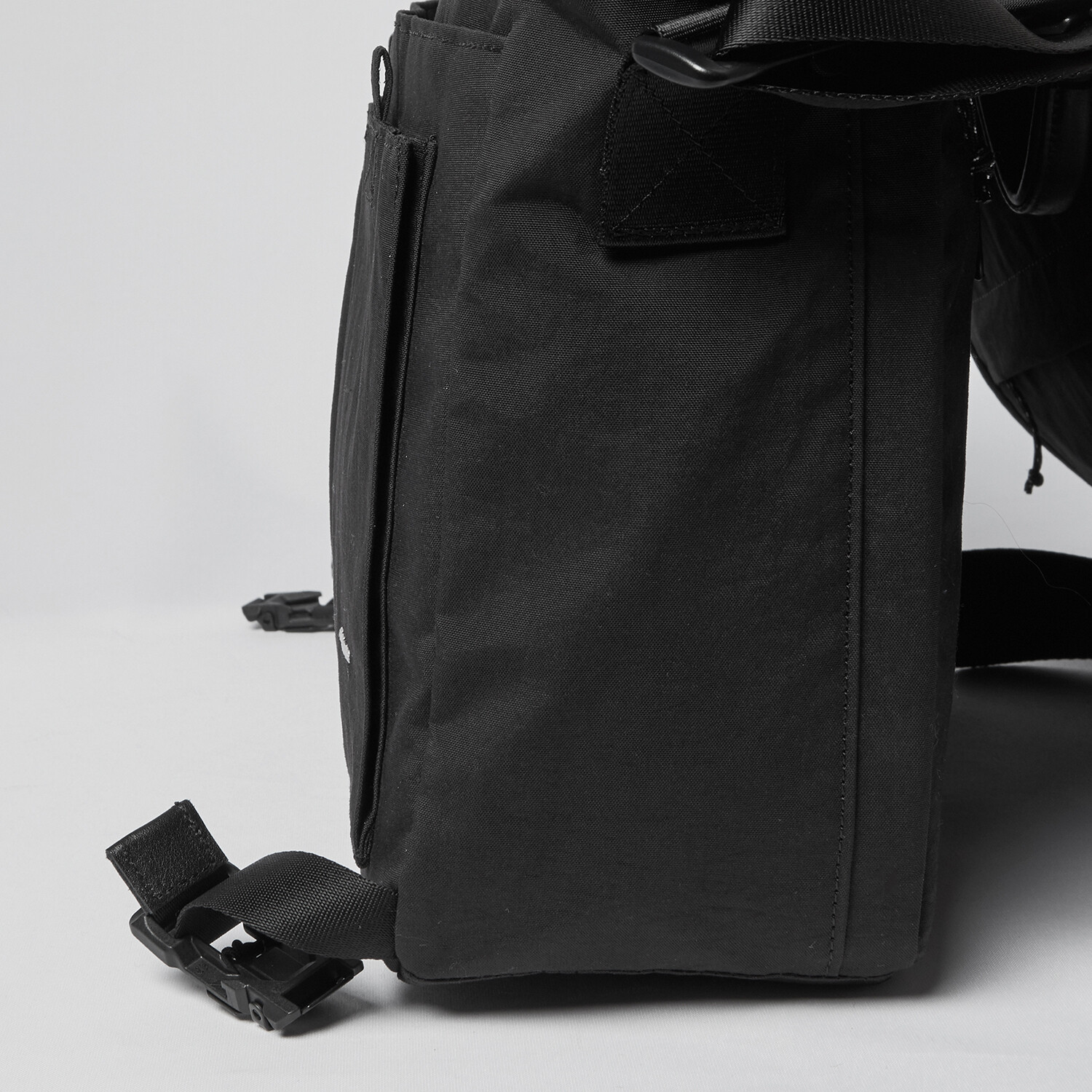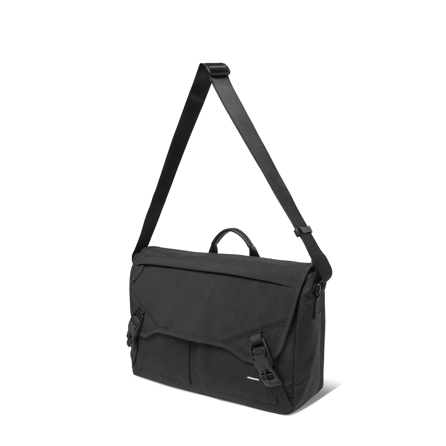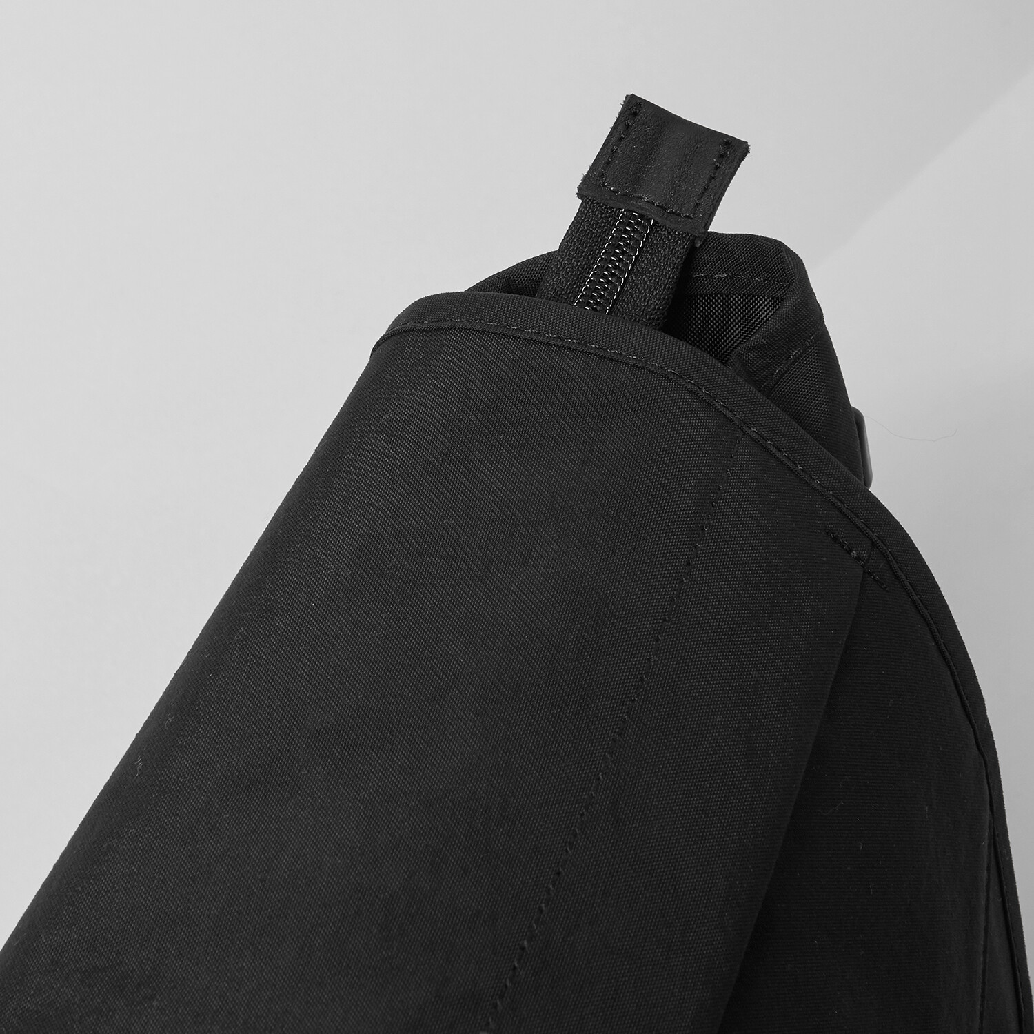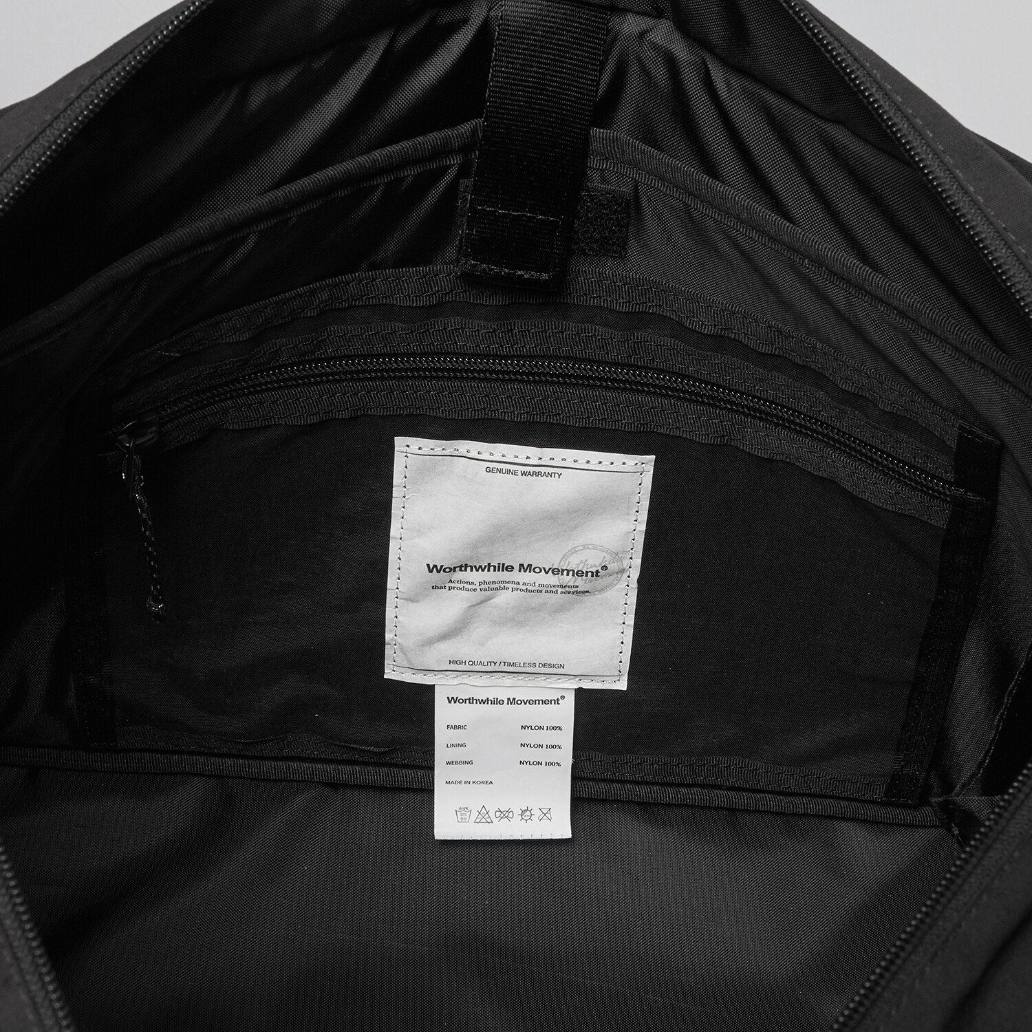▶︎ SIZE : 230 x 380 x 100(mm) ▶︎ WEIGHT : 700g ▶︎ CAPACITY : 8.5L ▶︎ STORAGE : 16” LAPTOP ▶︎ TYPE : 2Way (크로스백, 토트백) ▶︎ COLOR : Black ▶︎FABRIC : Nylon 100% & Cow leather ▶︎ LINING : Nylon100% ▶︎ WEBBING : Nylon100% ▶︎ ZIPPER : YKK® ▶︎ PARTS : Fidlock® / Woojin plastic ® ▶︎ STRING : - ▶︎ ORIGIN : Korea