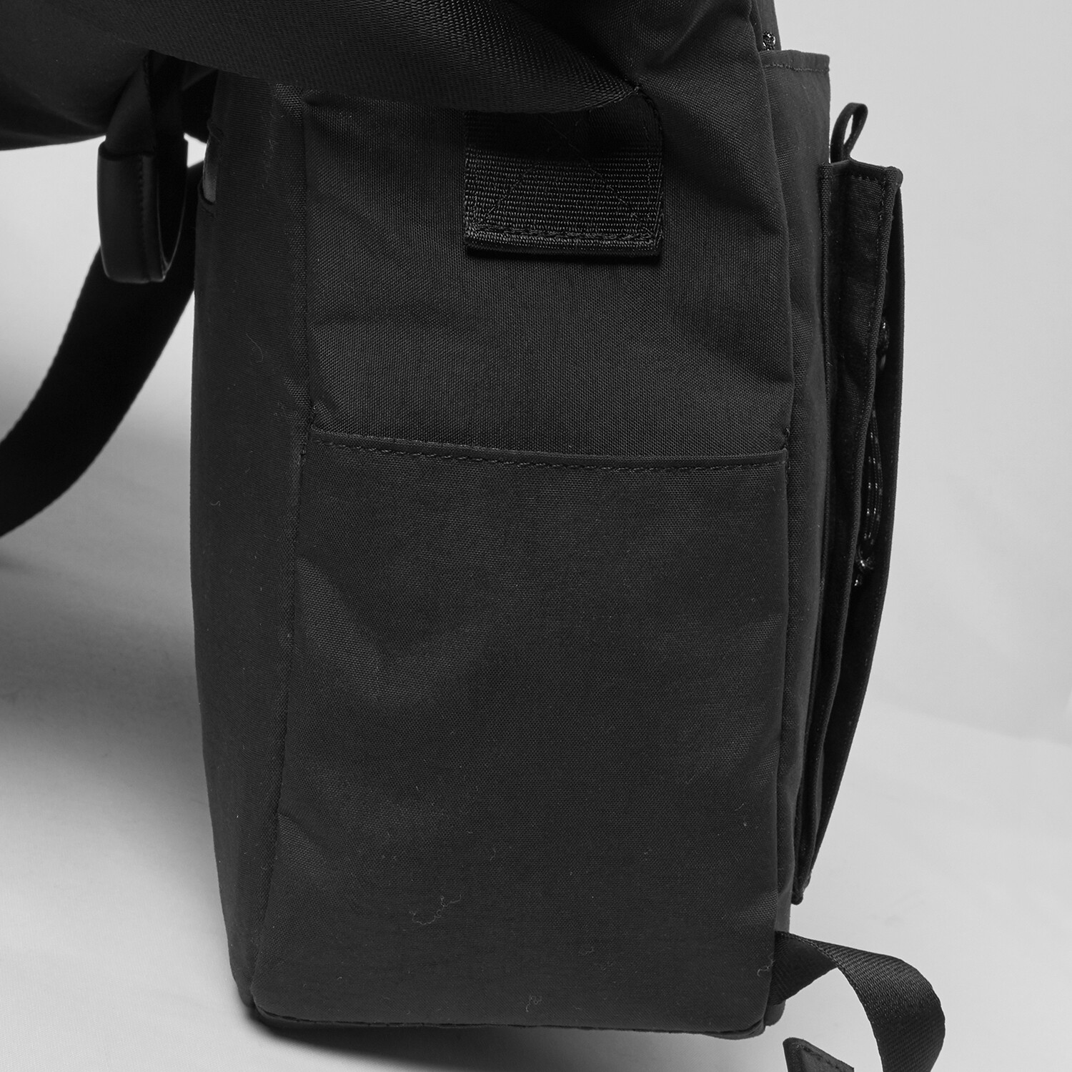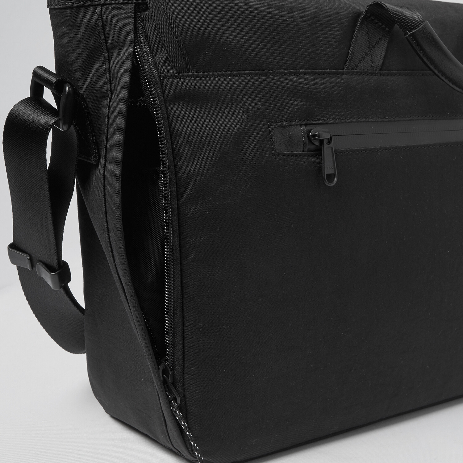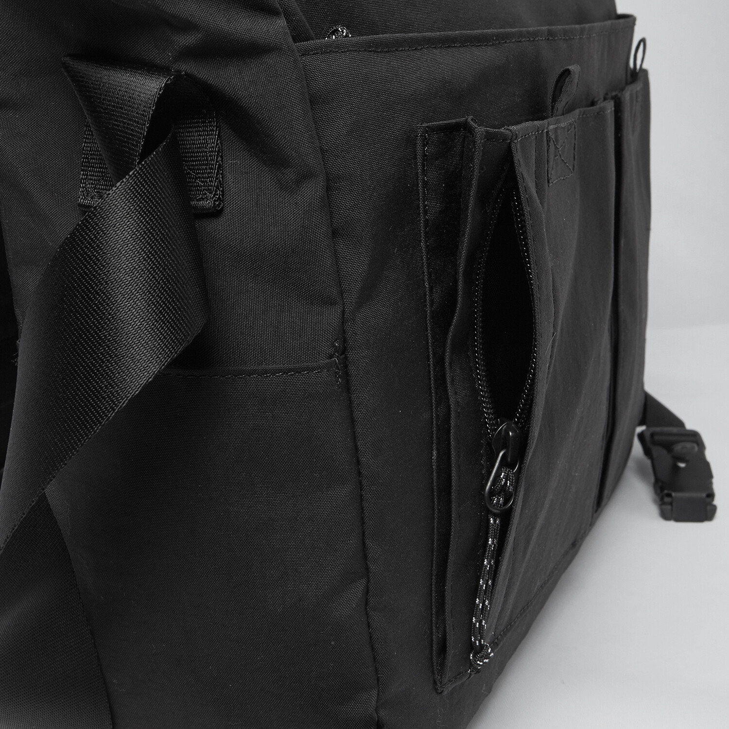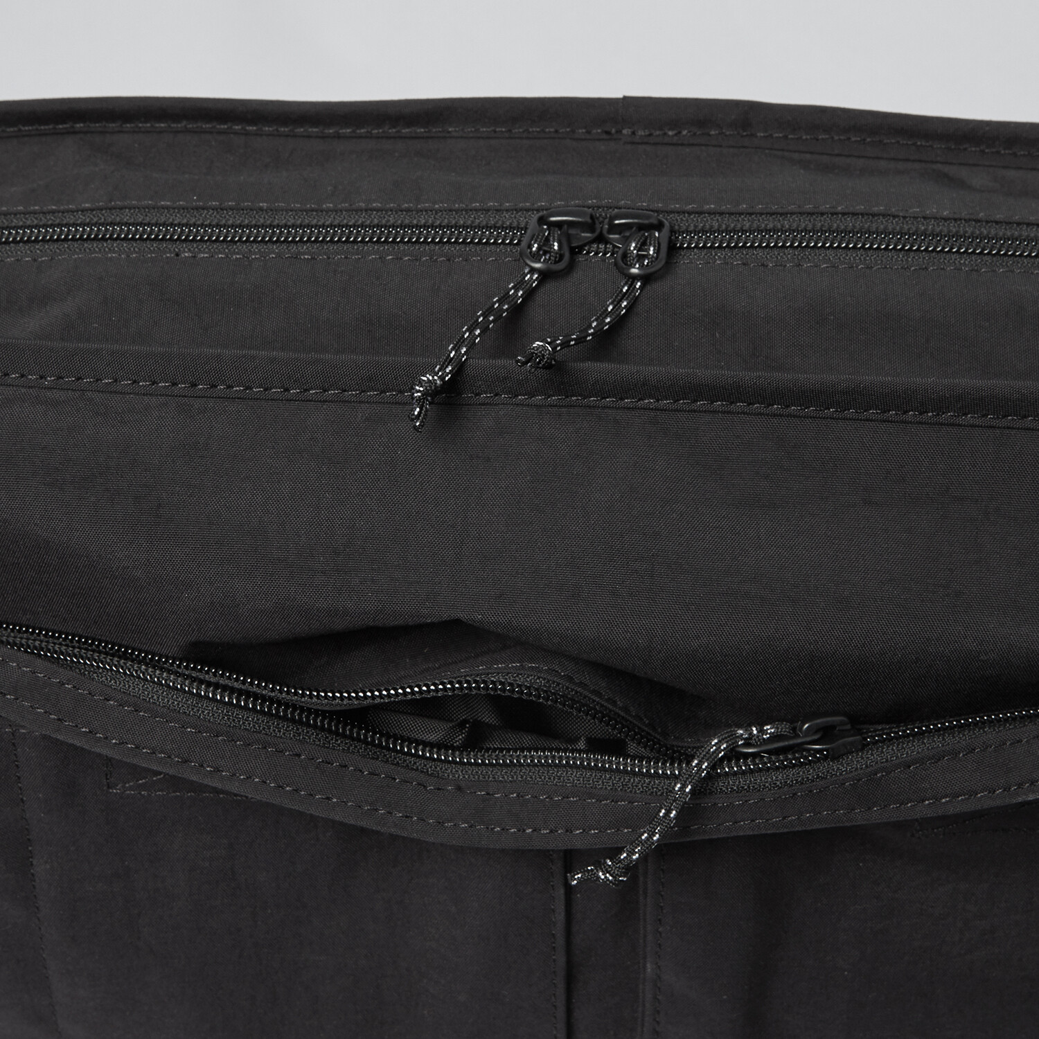 ▶︎ SIZE : 230 x 380 x 100(mm) ▶︎ WEIGHT : 700g ▶︎ CAPACITY : 8.5L ▶︎ STORAGE : 16” LAPTOP ▶︎ TYPE : 2Way (크로스백, 토트백) ▶︎ COLOR : Black ▶︎FABRIC : Nylon 100% & Cow leather ▶︎ LINING : Nylon100% ▶︎ WEBBING : Nylon100% ▶︎ ZIPPER : YKK® ▶︎ PARTS : Fidlock® / Woojin plastic ® ▶︎ STRING : - ▶︎ ORIGIN : Korea