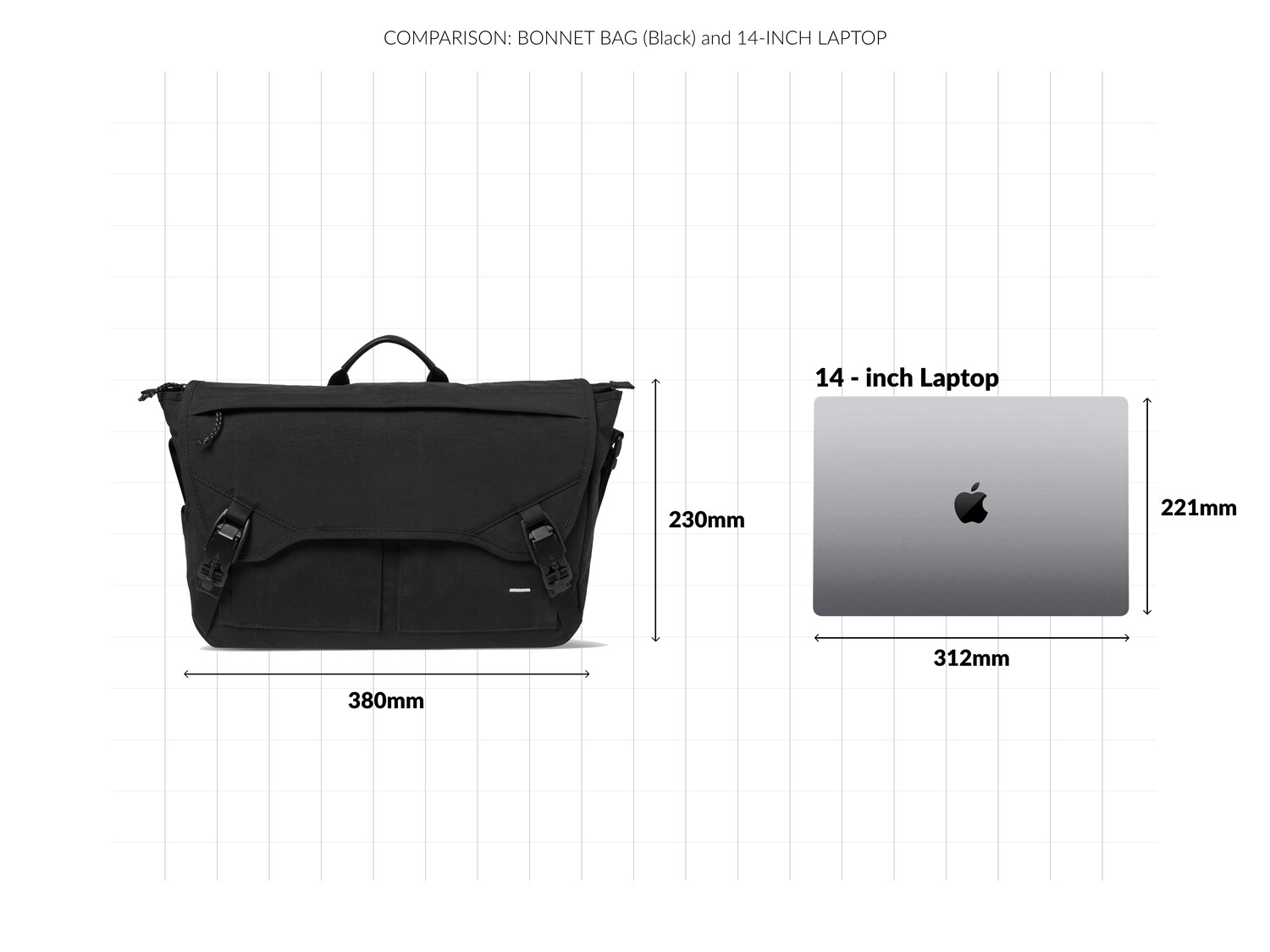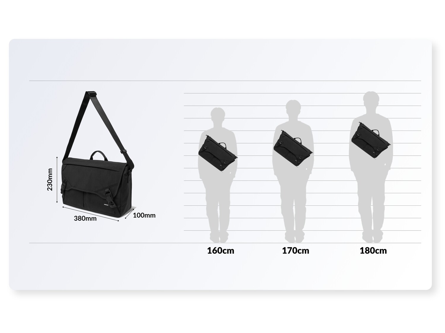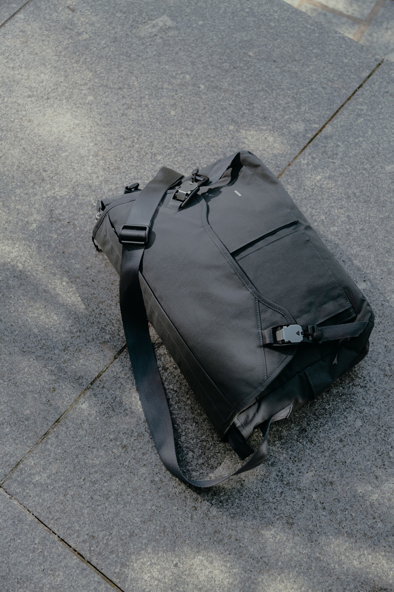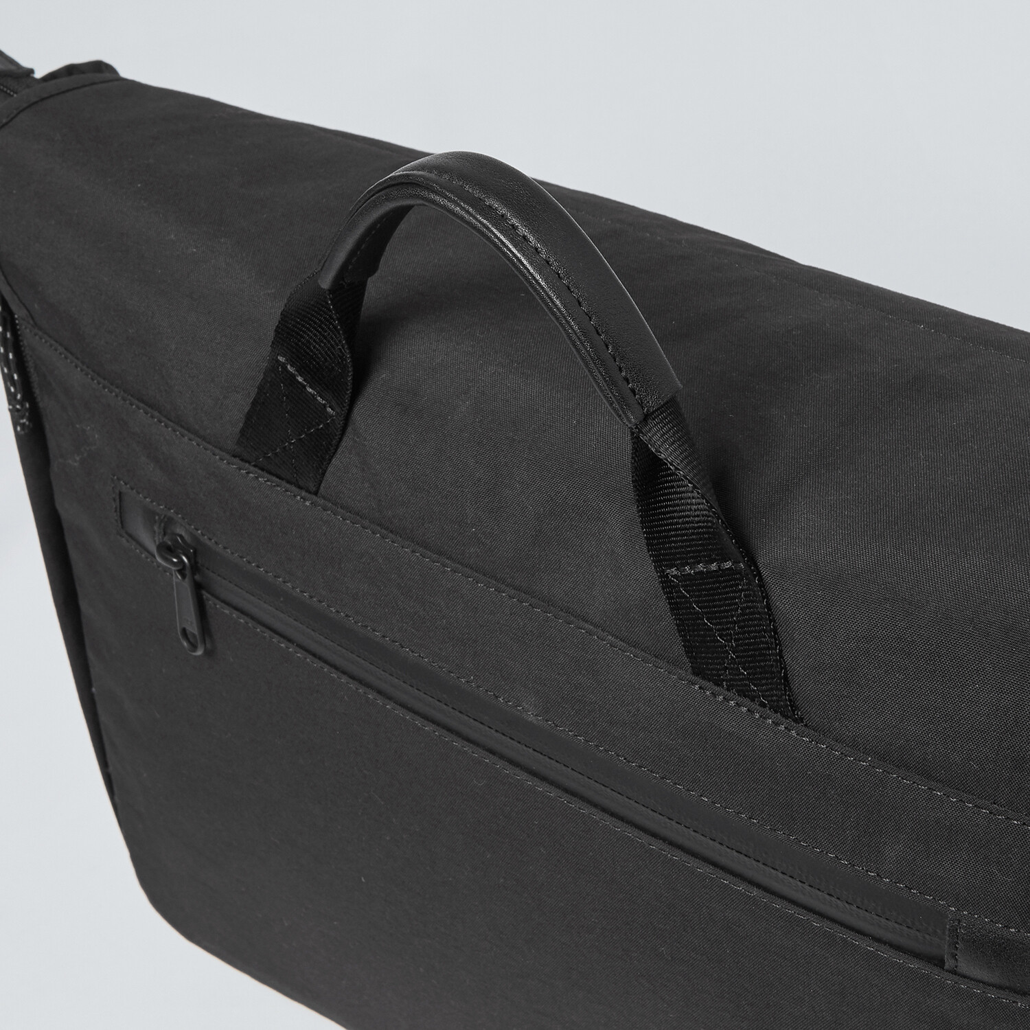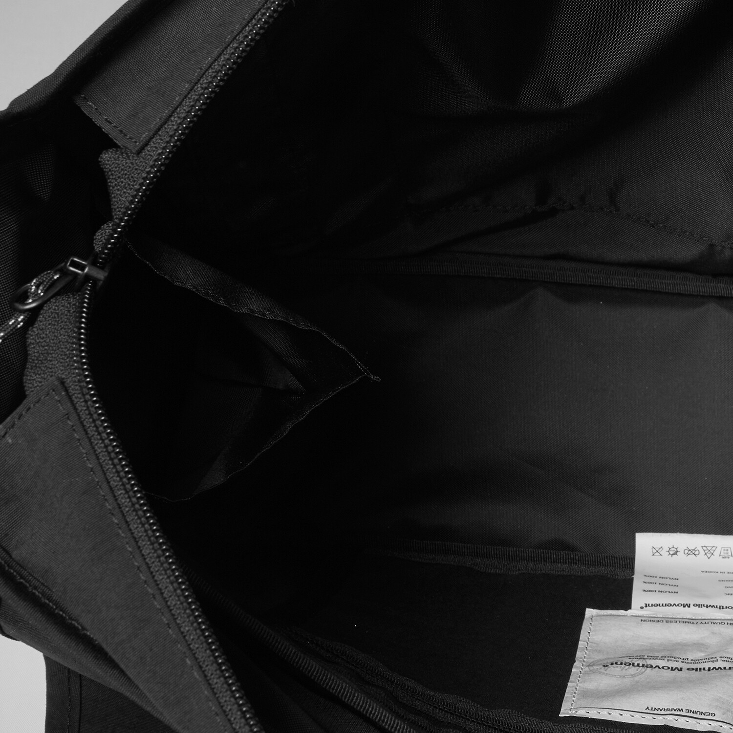 ▶︎ SIZE : 230 x 380 x 100(mm) ▶︎ WEIGHT : 700g ▶︎ CAPACITY : 8.5L ▶︎ STORAGE : 16” LAPTOP ▶︎ TYPE : 2Way (크로스백, 토트백) ▶︎ COLOR : Black ▶︎FABRIC : Nylon 100% & Cow leather ▶︎ LINING : Nylon100% ▶︎ WEBBING : Nylon100% ▶︎ ZIPPER : YKK® ▶︎ PARTS : Fidlock® / Woojin plastic ® ▶︎ STRING : - ▶︎ ORIGIN : Korea