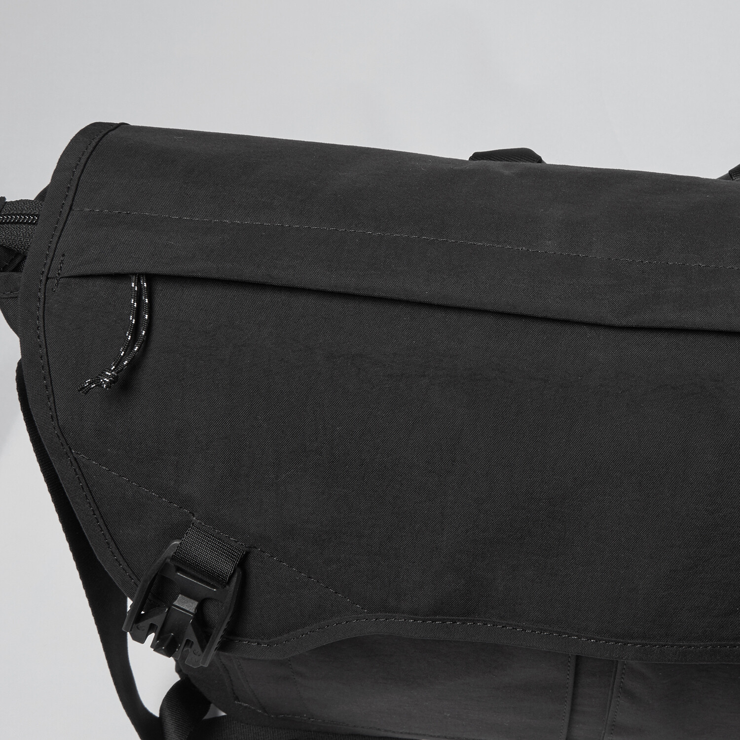 왁스 코팅된 나일론 메모리 패브릭으로 제작한 메신저백입니다. 바스락거리는 투박한 터치감과 우수한 발수력이 매력적입니다. 해당 제품에 사용된 원단은 시간이 지남에 따라 원단의 터치나 분위기에서 경년변화를 느끼실 수 있는 원단입니다. 가방에 특화된 YKK 지퍼와 Fidlock 사의 마그네틱 버클을 사용하여 기능적으로 우수하고, 필요한 부분에 바텍으로 단단히 마감하여 프리미엄 퀄리티로 제작하였습니다. 핸들과 웨빙 그리고 지퍼를 마감할 때 소가죽으로 고급스럽게 마감하여 차분하면서도 성숙한 분위기도 함께 느낄수 있는 제품입니다. 자동차의 보닛의 형태에서 영감을 받아 제작한 전면부 커버가 주요한 디자인 포인트로 각진 부분에는 적당한 보강재를 넣어 형태를 유지합니다. 내,외부에 위치한 13개의 포켓에는 사용자의 다양한 소지품을 효율적으로 나눠서 보관하실 수 있습니다. 상질의 원,부자재와 좋은 봉재 퀄리티로 제작한 유틸리티적인 미감이 느껴지는 메신저백 입니다.