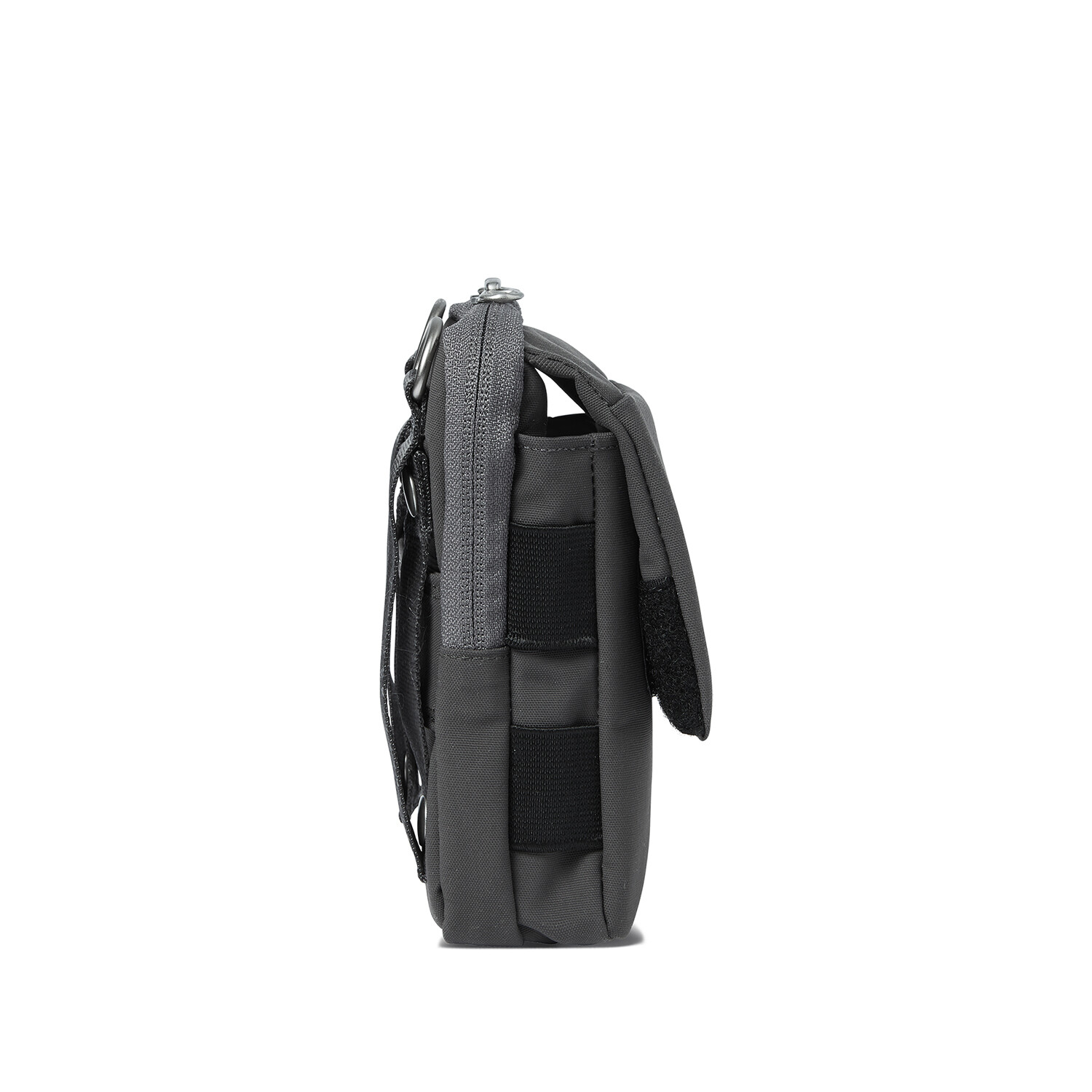 • '피드락 웹 벨트'와 결합할 수 있는 벨트 백 • 크로스 스트랩을 통해 크로스백으로 활용 가능 • 후면부 벨크로와 스냅 시스템을 통해 파우치로 활용 가능 • 코튼 터치감이 느껴지는 ATY 나일론 패브릭 • 내부 면 PVC코팅을 통해 발수력 및 내구성 향상 • 볼펜과 샤프 등을 고정할 수 있는 양 측면 접밴드 디테일 • 덮개 카드 슬롯 • 앞,뒤 2칸의 분리 수납공간 • YKK® RC 체인 지퍼 사용 • 피드락(Fidlock) 마그네틱 버클 사용 • 벨트에는 부드러운 고밀도 나일론과 리얼 카우레더 트림 장식 사용 • 파우치 형태로는 여러 백팩과 이큅먼트백 등과 결합 가능