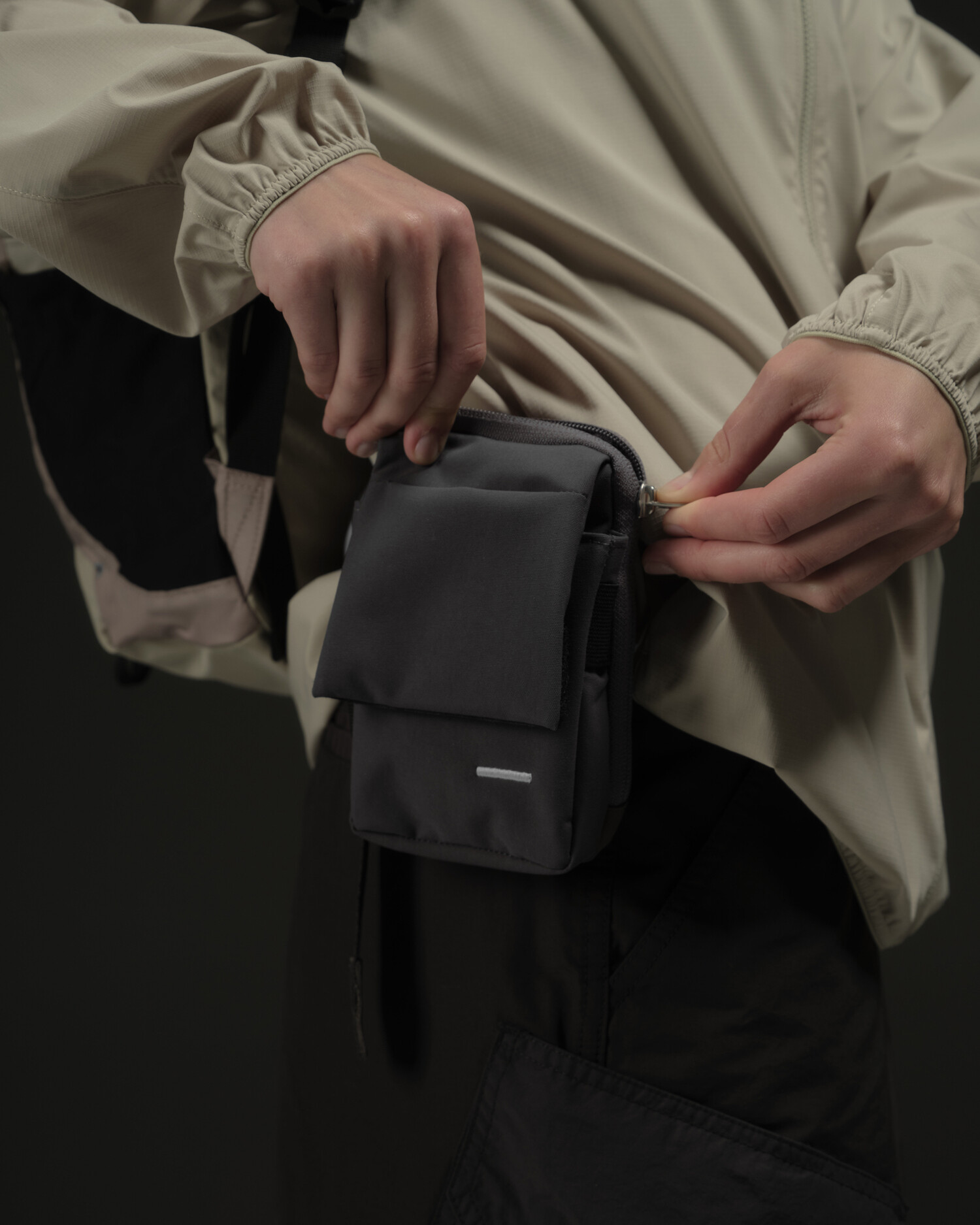 : 벨트 백은 다양한 활용성을 제공하는 3-Way 시스템을 갖춘 기능성 가방입니다. 크로스백, 벨트백, 그리고 파우치 형태로 변형이 가능하여, 사용자의 스타일과 상황에 맞게 유연한 사용이 가능합니다. 이 제품은 ATY 나일론 패브릭을 사용하여 코튼과 같은 느낌의 부드러운 터치감과 높은 내구성을 갖췄습니다. 내부에는 PVC 코팅을 추가하여 발수 기능을 강화하고, 오랜 시간 사용할 수 있도록 내마모성을 높였습니다. 전면에는 카드 슬롯과 두 개의 분리된 수납공간이 배치되어 있어 실용성이 돋보이며, 양 측면의 밴드 디테일을 통해 볼펜이나 소형 도구를 고정할 수 있도록 설계되었습니다. 가방 내부 역시 필수 소지품을 안전하게 보관할 수 있도록 구성되었습니다. 가방의 주요 부자재로는 YKK® RC 체인 지퍼와 YKK® 스냅을 사용하여 부드럽고 안정적인 개폐감을 제공합니다. 또한, 피드락(Fidlock®) 마그네틱 버클이 적용된 벨트 스트랩은 빠르고 편리한 착용감을 선사하며, 내구성이 높은 고밀도 나일론 웨빙과 리얼 카우 레더 트림이 더해져 완성도를 높였습니다. 이 벨트 백은 단독으로 착용할 수 있을 뿐만 아니라, 백팩이나 이큅먼트 백에 부착하여 파우치 형태로도 활용할 수 있어 다양한 스타일과 환경에서 유용하게 사용할 수 있는 아이템입니다.